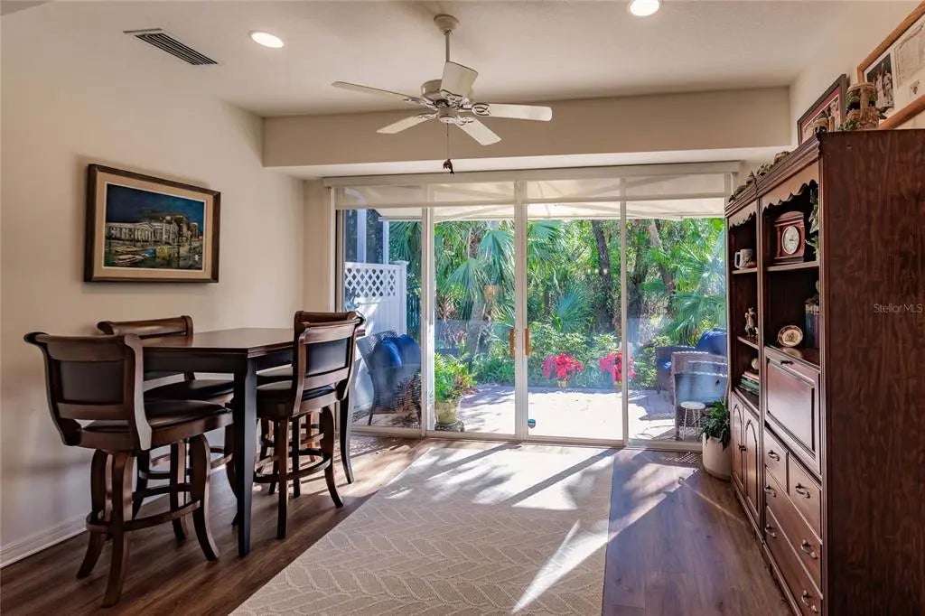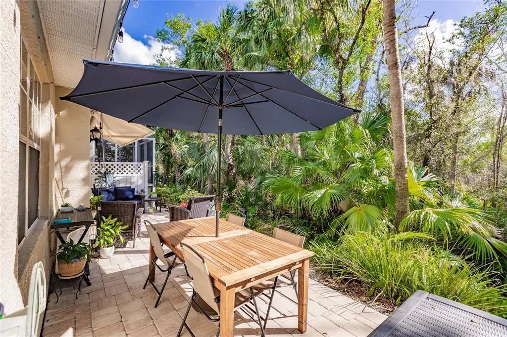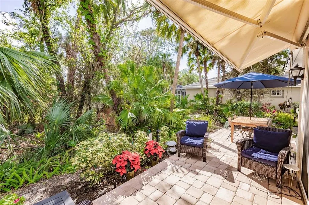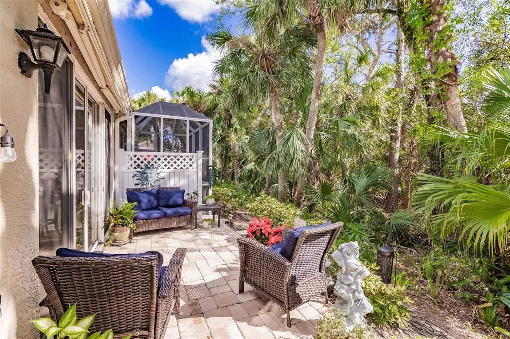 Why have Venice as a destination when you can make it your home? Come experience enticing privacy and maintenance free living within the sought-after Villas of St. Andrews at Plantation Golf and Country Club. Equipped with hurricane shutters this property sustained all storms in 2024 with no damage. It has an open floor plan showcasing three bedrooms and two baths situated on a peaceful dead-end street. Enjoy culinary delights in the oversized eat-in kitchen with new sink/faucet and oven (2024), and a brand-new refrigerator (2025). New flooring throughout the living/dining rooms and all bedrooms (2023), enhances the luxurious feel of this home for you and your guests. Featuring soaring ceilings and a spacious open floor plan.The split floor plan allows for complete privacy for you and your guests. The spacious primary bedroom located in the back of the Villa includes two closets, dual sinks, soaking tub and a separate shower recently remodeled (2024). Plantation shutters frame a tapestry of trees, blue sky and gentle breeze. A small hallway and pocket door toward the front of the Villa truly makes one of the guest quarters an en-suite. In unit laundry complete with a washer and dryer provides a comfortable place to work. Looking to entertain outside? Enjoy a cocktail on the extended paver patio (2023) that features a panoramic Florida preserve view and adjustable awning. It is nothing short of magical. Don’t forget you are just steps away from the tranquil community pool. This home offers amazing value with an HOA that covers all exterior maintenance (new roof in 2023) and landscaping, water/sewer, insurance for the structure, cable TV, and pool. The A/C and water heater are also newer. Various optional memberships to the Country Club are available. Prime location, close to Wellen Park and downtown Venice with its pristine beaches (only 10 minutes away) and outstanding restaurants. Everything you need or want is close by and ready for you to enjoy the Florida lifestyle.