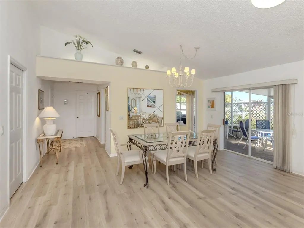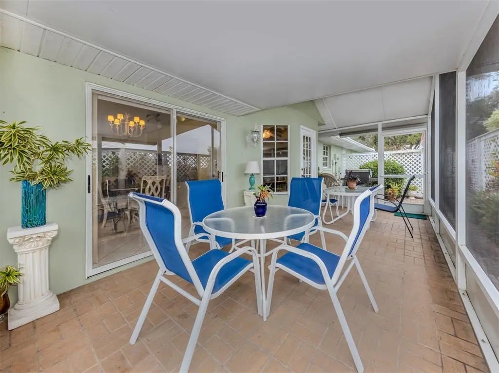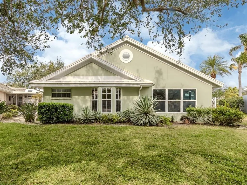 IDEAL LOCATION in CLUBSIDE at the PLANTATION, a GATED, MAINTENANCE FREE community, adjacent to The Plantation Golf and Country Club. This home offers 2 bedrooms and a den or optional 3rd bedroom, PLUS a Florida room with hurricane -proof windows overlooking a peaceful pond view. 2 car attached garage. TURN-KEY furnished including 65" family room TV and TV's in the primary suite, kitchen, and guest bedroom. Beautiful, large pavered driveway. The outside front entrance presents a charming and inviting place to meet and greet. Screened, covered and private side lanai with brick floor is 190 sq. ft. allowing for several seating areas. Two outside patios on either end of the lanai provide more options for gathering and grilling. Lattice privacy fence with mature, low maintenance shrubs. The entire homesite offers maximum privacy and presents many opportunities for you to put your own personal touches in the gardening beds. Tile floors in entrance, kitchen, dining room, and bathrooms; the living areas and bedrooms have carpet. Bright and open kitchen with a welcoming breakfast nook. Spacious dining and living areas connect seamlessly to the Florida room to give you functional and flexible living space. "Green" solar light tunnel in living area. Large primary bedroom suite has a separate walk-in shower, soaking tub, walk-in closet and a double closet with folding doors. The guest bedroom and den are nicely separated from the primary suite and access a guest bath with a tub/shower. The den has a screened solar-lit room with sliding glass doors. ROOF REPLACED 2017. New "TRANE" AC System. New "Weber" barbeque comes with the house. Clubside has its own renovated clubhouse, community pool, and regular events and activities. CLUBSIDE is a well maintained and well managed community that shows genuine pride of ownership. CLOSE PROXIMITY to PLANTATION GOLF & COUNTRY CLUB is a HUGE ADVANTAGE WHEN YOU LIVE IN CLUBSIDE. If you do choose to join the nearby Plantation Golf & Country Club, a variety of memberships are available. You can pick from an extensive selection of events and activities, including 2 golf courses, driving range, pickleball, tennis, bocce, 24 hr. fitness, junior olympic pool, and a full social calendar with lots of options for everyone. Here is your chance to " live the Florida lifestyle"! PERFECT LOCATION with the FLORIDA GULF BEACHES, historic DOWNTOWN VENICE, DOWNTOWN WELLEN PARK, COOL TODAY STADIUM, limitless restaurants, shopping, services, events, and recreation all nearby.