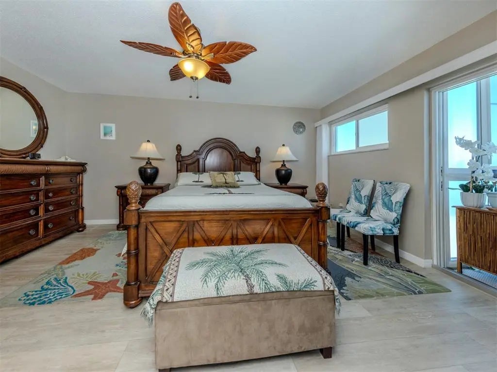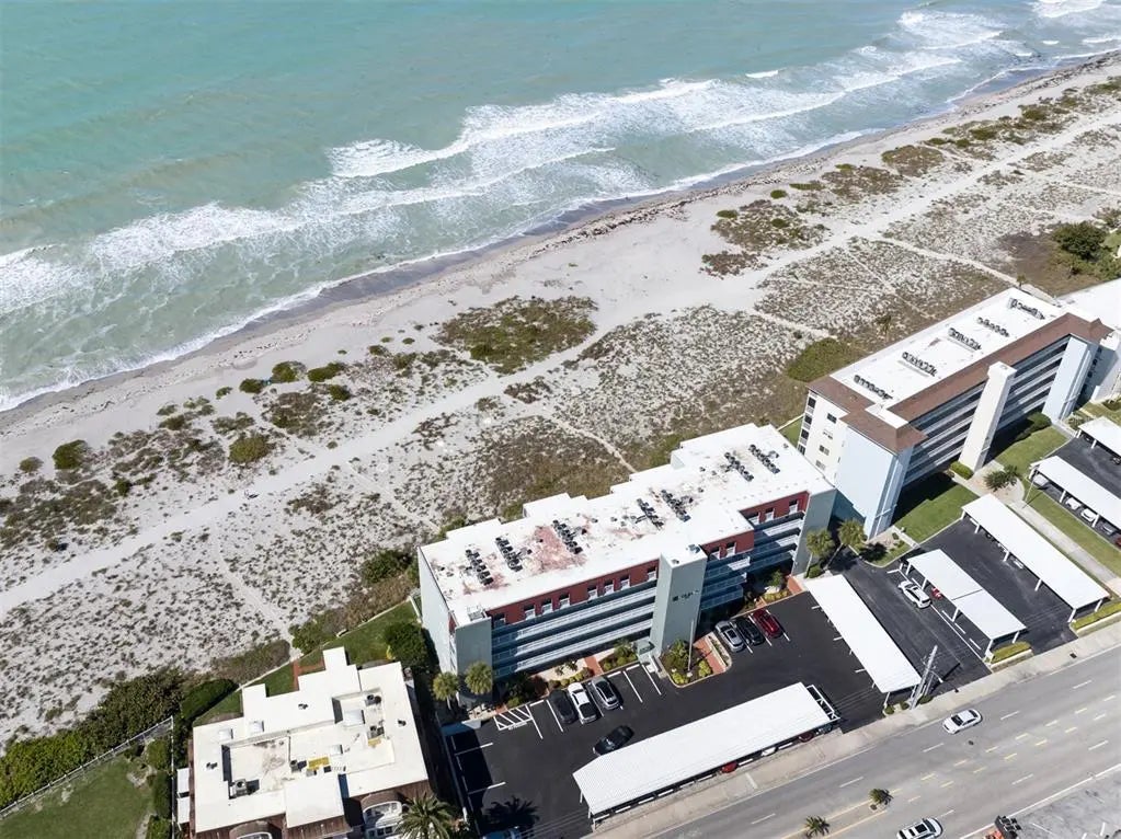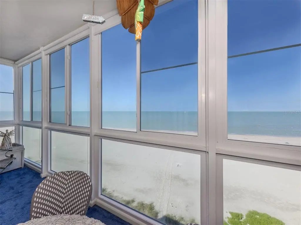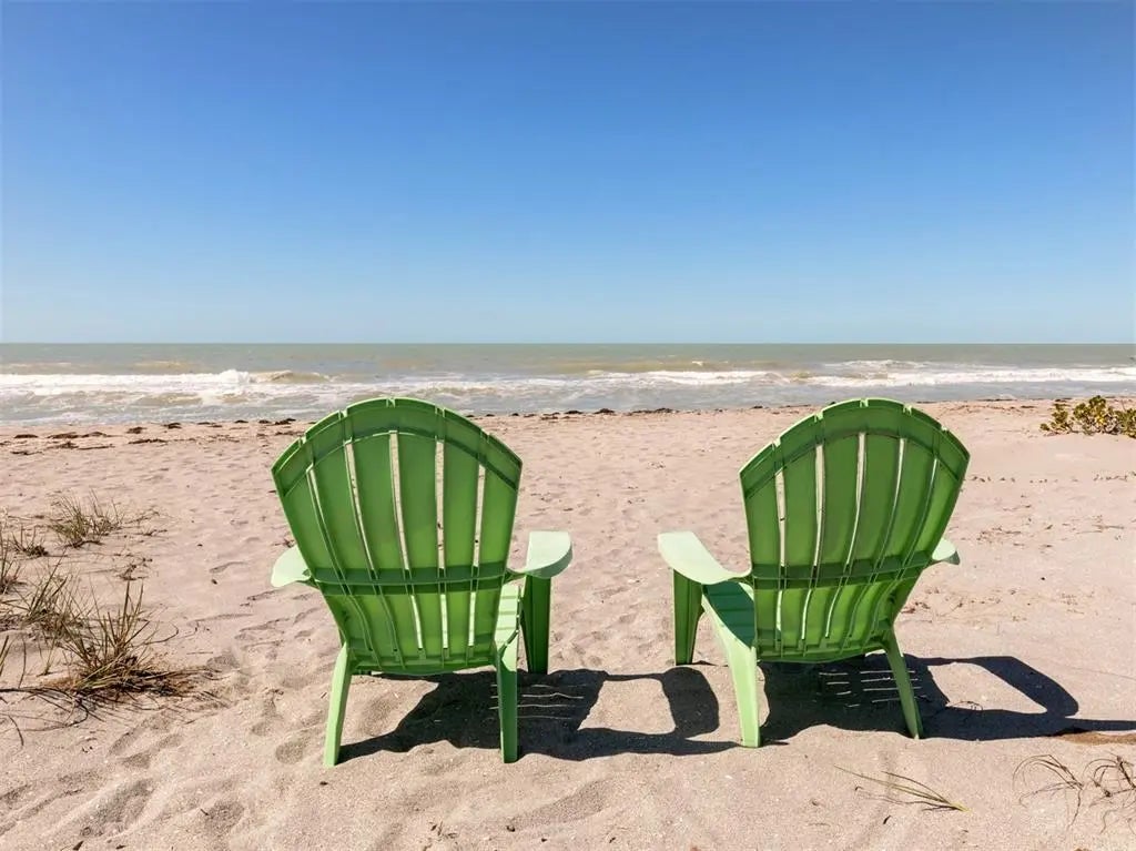 Captivating and breathtaking gulf views from this waterfront condominium present a coastal lifestyle where the water and waves become an integral part of your everyday living. The spacious 19.5-foot balcony, leading from the living room and primary bedroom, maximizes this beachside location. An open-concept layout affords views of the Gulf as well as Roberts Bay from the kitchen with its ample cabinet space, granite countertops accentuated with a subway tile backsplash and stainless-steel appliances. Double French frosted glass doors lead into the spacious primary bedroom with its updated en-suite bath. The custom built-in desk and cabinetry in the second bedroom is a great use of space, adding function and style. Both bedrooms have luxury vinyl flooring while the rest of the unit has tile flooring. You’ll appreciate the stylish upgrades with a neutral tasteful color paint throughout. New owners will appreciate the brand new fully updated electrical panel installed - April 2025. For peace of mind, the condominium has hurricane-impact windows and sliders apart from the balcony, where only the bottom windows are hurricane impact.. Being sold furnished, everything stays minus some personal items, so it’s ready for your immediate enjoyment. When not spending time in awe of the beautiful sunrises and sunsets, you’ll savor this precious location. Close to the Venice Yacht Club, South Jetty Park and the Crow’s Nest restaurant, and the quaint downtown Venice with its array of shops, cafes, parks and cultural activities is nearby as well. Look no further.