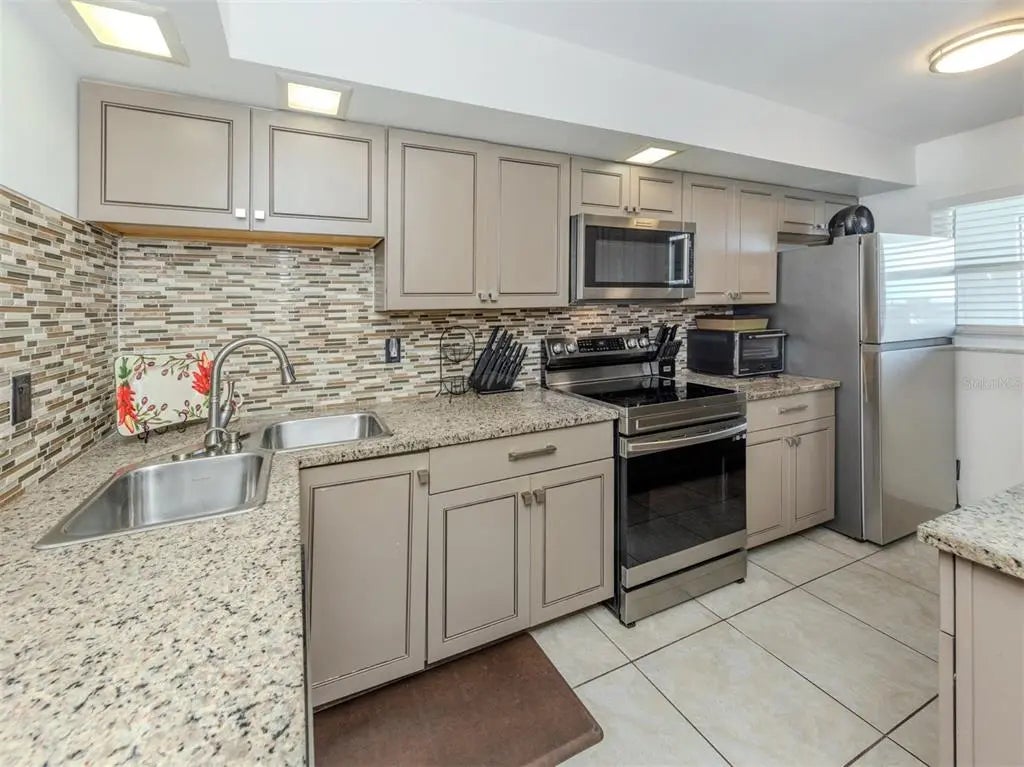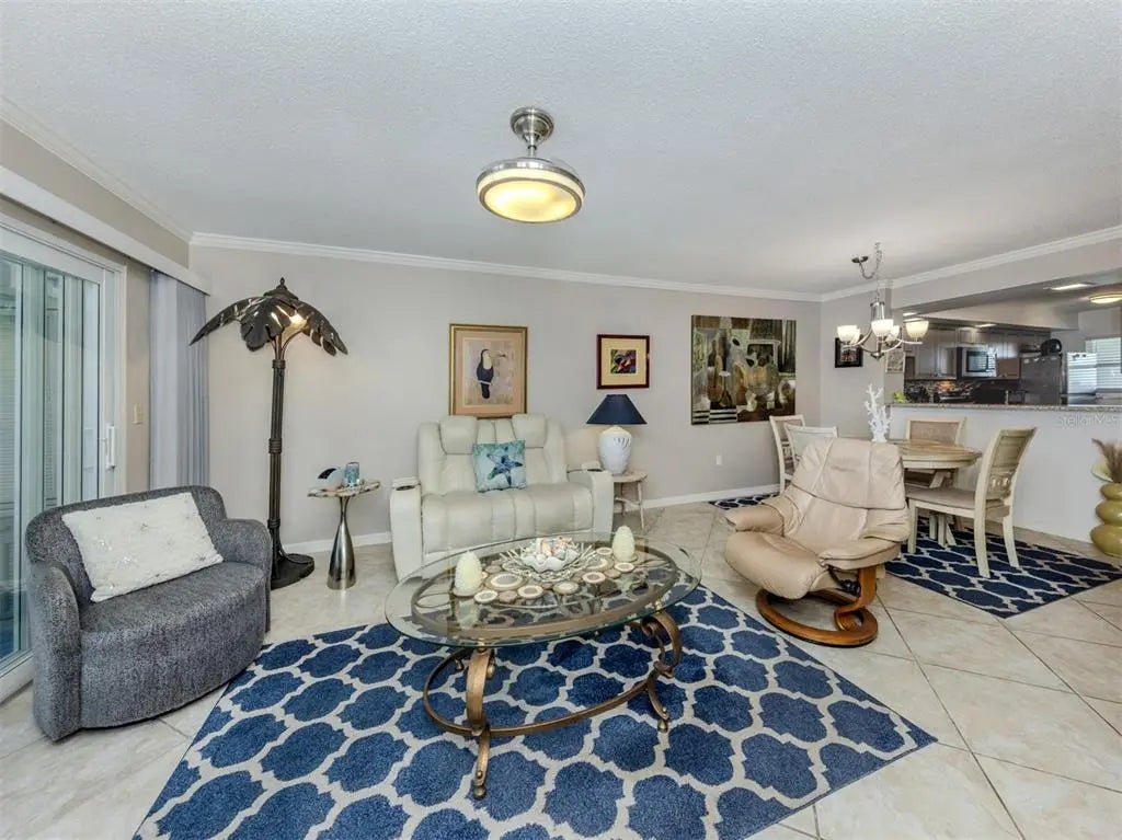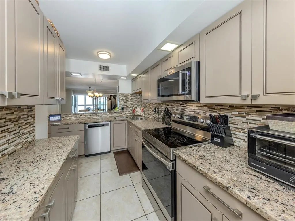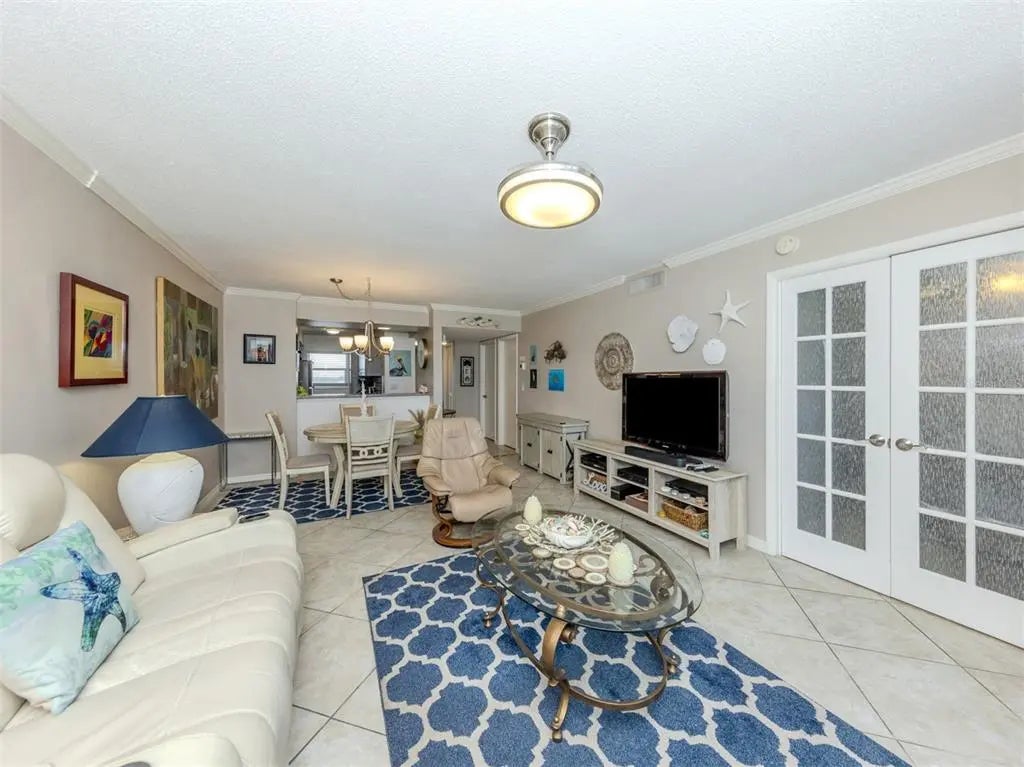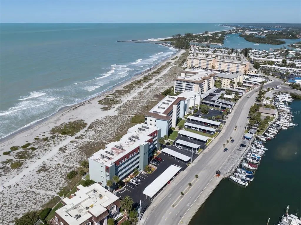 Captivating and breathtaking gulf views from this waterfront condominium present a coastal lifestyle where the water and waves become an integral part of your everyday living. The spacious 19.5-foot balcony, leading from the living room and primary bedroom, maximizes this beachside location. An open-concept layout affords views of the Gulf as well as Roberts Bay from the kitchen with its ample cabinet space, granite countertops accentuated with a subway tile backsplash and stainless-steel appliances. Double French frosted glass doors lead into the spacious primary bedroom with its updated en-suite bath. The custom built-in desk and cabinetry in the second bedroom is a great use of space, adding function and style. Both bedrooms have luxury vinyl flooring while the rest of the unit has tile flooring. You’ll appreciate the stylish upgrades with a neutral tasteful color paint throughout. New owners will appreciate the brand new fully updated electrical panel installed - April 2025. For peace of mind, the condominium has hurricane-impact windows and sliders apart from the balcony, where only the bottom windows are hurricane impact.. Being sold furnished, everything stays minus some personal items, so it’s ready for your immediate enjoyment. When not spending time in awe of the beautiful sunrises and sunsets, you’ll savor this precious location. Close to the Venice Yacht Club, South Jetty Park and the Crow’s Nest restaurant, and the quaint downtown Venice with its array of shops, cafes, parks and cultural activities is nearby as well. Look no further.
