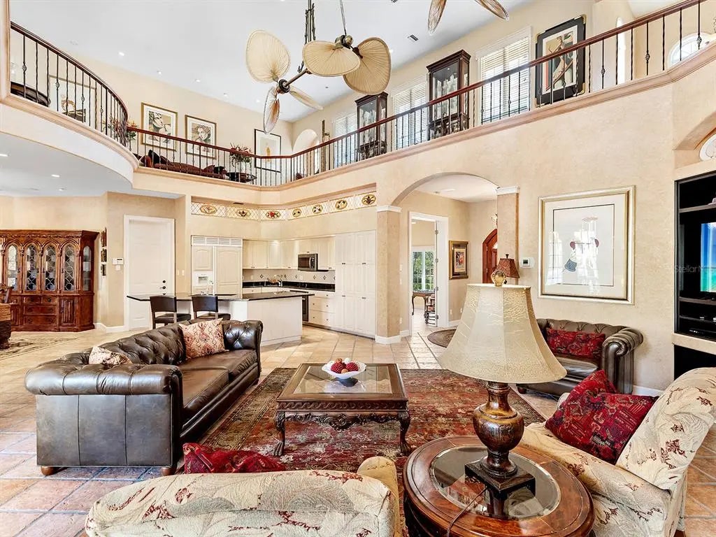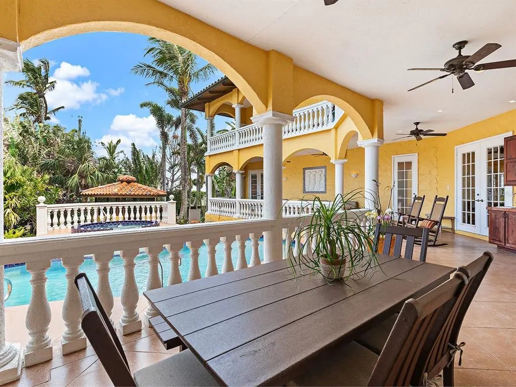 Step into an architectural masterpiece on Venice Island. This custom-built estate is a testament to craftsmanship and global elegance. Spanning over 5,000 square feet, this extraordinary residence blends fine materials from across the world. From the moment you arrive, the grand circular governor’s driveway crafted with brick pavers sets the tone for the sophistication within. The stunning custom Honduran red mahogany double front doors open to reveal a breathtaking interior, where Italian floor tiles and Spanish marble create a seamless fusion of opulence. Custom iron railings, masterfully crafted in Berlin, accentuate the architectural beauty, while exquisite stained glass windows cast a mesmerizing glow throughout the home. The luxurious dual primary suites, one on each level, offer the ultimate in comfort, with the upstairs retreat accessible via a private custom spiral staircase. Both levels feature double-decker balconies spanning the width of the home, providing sweeping views of the resort-style heated and saltwater pool, spa and gazebo. Peek-a-boo views of Robert's Bay greet you from the second-story balcony. Additional highlights include a library with a wet bar and gas fireplace, private gym with an en-suite bath, bath with direct access to the pool, an oversized three-car garage, filtered drinking water throughout the entire home, new roof, two water heaters, three air-conditioning units, 500-gallon underground propane tank, whole-house sound system, Lutron system and security system. Impact glass windows and doors, and a whole-house generator, give you peace of mind during storm season. The home is set on .31 acres and has never experienced flooding, due to its high elevation, according to the owner, making it stand as a testament to superior construction and prime location. This residence is as versatile as it is luxurious, the original owner used the home as an entertainer's paradise, catering political and social events galore. View this architectural marvel today.