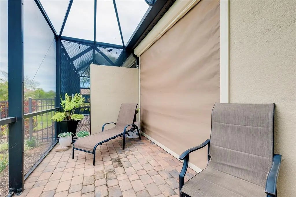 - Exterior FeaturesAwning(s), Dog Run, Hurricane Shutters, Irrigation System, Lighting, Rain Gutters, Shade Shutter(s), Sidewalk, Sliding Doors, Storage