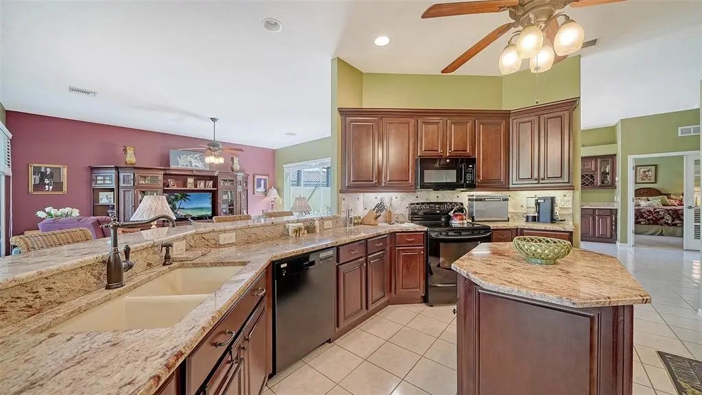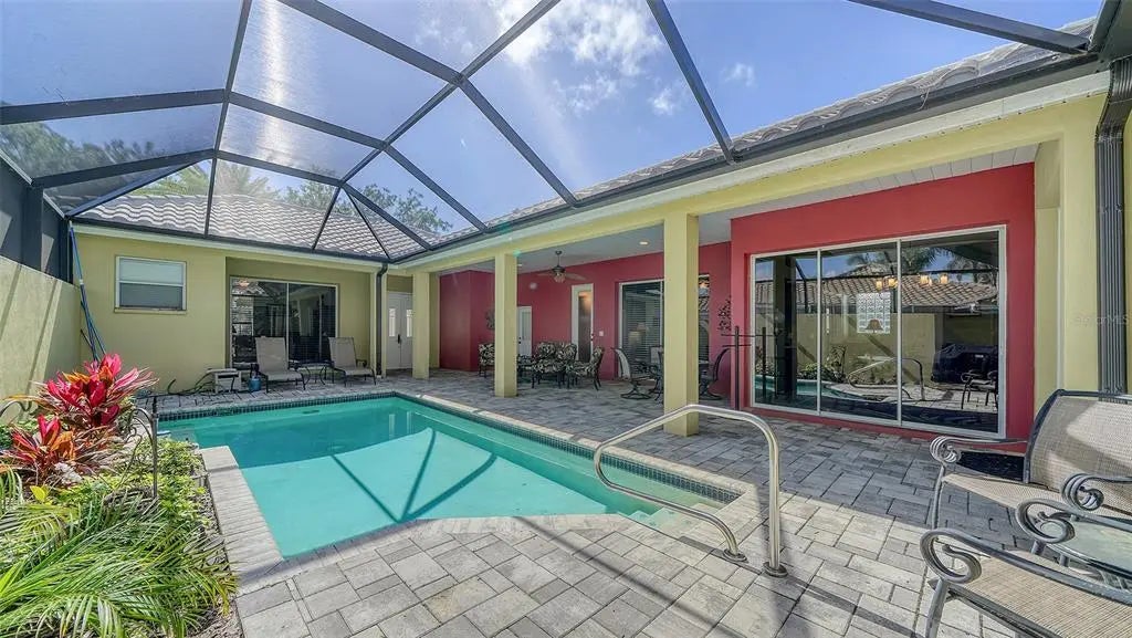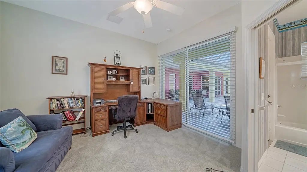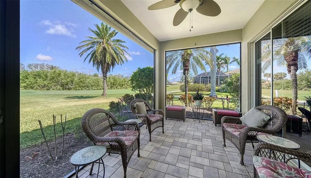 Don’t miss this fantastic opportunity in The Venice Golf and Country Club! This spacious 3 bedroom, 3 ½ bath courtyard home has 2218 square feet of living space, a heated pool and golf cart garage. As a bonus for a golfer, it comes with the OPPORTUNITY TO JOIN IMMEDIATELY AS A GOLF MEMBER and avoid the waitlist. Enter from the courtyard into the spacious living and dining room. The large kitchen with granite countertops, breakfast bar, pantry and center island is the heart of the home. The sunny dinette and adjacent lanai have a fabulous view of the 11th green. The private master bedroom has a large walk-in closet and en-suite bath with dual vanities, and walk-in shower. The 2nd bedroom has sliding doors to the courtyard and a private bath which could also be used as a Den. The private casita is the 3rd bedroom (or Den) and bath is perfect when entertaing out-of-town guests. There is a very large laundry room providing additional storage space. Among the many improvements are roof replacement (2017), solar panels added to heat the pool (2017), pool cage (2020), and the A/C was replaced in 2020. VGCC is a welcoming community of 587 homes. Enjoy both casual and formal dining in the newly renovated Clubhouse. Meet and make new friends in the bar with a large outdoor terrace, or on cooler evenings enjoy a beverage by the fire pit. There are a wide variety of activities in addition to golf including tennis, bocce, bridge, mah-jongg, the “U” with cultural presentations, wine club, special club events, and more. Take a class or work out in the Wellness Center with state-of-the-art equipment or take one of a variety of fitness classes. VGCC, with its 26 ponds and 13 natural preserves, is an Audubon Geo-Certified community. This is immediately apparent when you enter through the main gate with its canopy of oak trees and drive down the tree lined and curved streets. VGCC is just 5 miles from the quaint town of Venice and just 20 miles south of Sarasota. MEMBERSHIP IS MANDATORY. Choose between Golf Membership or Club Membership.