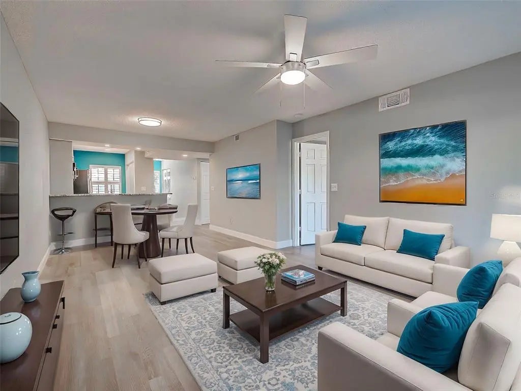 One or more photo(s) has been virtually staged. PRICE REDUCED. STUNNING, COMPLETELY REMODELED CONDO WITH GOLF & WATER VIEWS IN THE PLANTATION GOLF & COUNTRY CLUB MAINTENANCE FREE! WORRY FREE! Your Association fee includes maintenance on the building (from the drywall out), exterior insurance including wind, maintenance on the grounds, a maintained community pool with clubhouse, pest control, reserves for capital expenditures, sewer, trash, water. ******************************************************************************************************************** Step into luxury with this beautifully remodeled condo, featuring top-to-bottom updates and modern design. Every detail has been carefully selected to create a stylish and functional living space. Plus, enjoy peace of mind knowing that the roof, all kitchen appliaces, A/C, water heater and washer/dryer were replaced in 2024/2025. The brand-new kitchen is a chef’s dream, with stainless steel appliances, granite countertops, custom cabinetry, and a unique coffee bar with elegant glass shelving—perfect for your morning routine. Waterproof luxury vinyl flooring flows throughout the home, providing both durability and contemporary style. Both bathrooms have been completely renovated, featuring granite countertops, contemporary fixtures, and designer finishes that add a spa-like feel. The primary suite offers a one-of-a-kind walk-through closet, outfitted with custom shelving and a built-in shoe rack, as well as an ensuite bathroom and direct access to the Florida room, creating a private retreat. The second bedroom features sliding glass doors leading to a charming garden patio, perfect for enjoying a quiet moment outdoors. For those who love indoor-outdoor living, this condo also offers a spacious Florida room and a private patio, where you can relax and take in the breathtaking golf course and water views. Whether you're enjoying your morning coffee or unwinding in the evening, this space is perfect for soaking in the beauty of your surroundings. Move-in ready and designed for comfort, this exceptional condo is a must-see. Schedule a private showing today and experience modern elegance at its best!