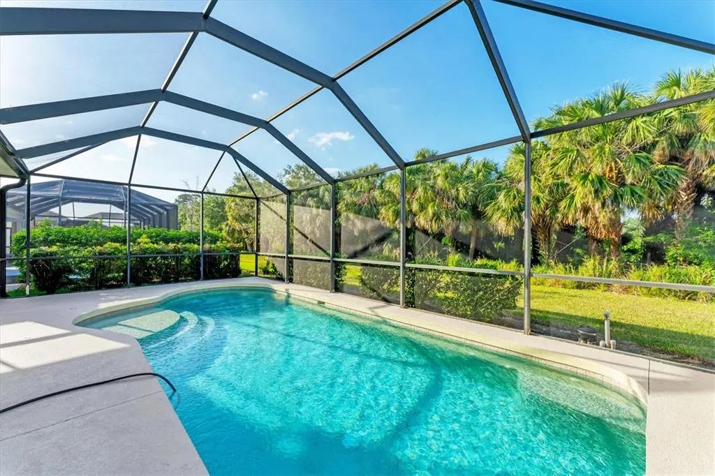 Welcome to amenity-rich, guard-gated Stoneybrook at Venice! This freshly painted pool home offers a spacious and flexible layout, featuring both a formal living and dining room, as well as an open-concept kitchen and family room—perfect for entertaining or relaxing with loved ones. Tile flooring flows through the main living areas, with soft carpet in the bedrooms. The split-bedroom design ensures privacy, and the primary suite includes a versatile bonus room, ideal for a home office, nursery, or personal retreat. Step outside to a private screened lanai and sparkling pool, backing to a peaceful, park-like setting. Additional features include an inside laundry room and a 2-car garage. Enjoy peace of mind with a guard-gated entrance along with resort-style amenities: a clubhouse, fitness center, basketball and tennis courts, ball field, and an inviting community pool. Don’t miss your opportunity to own a slice of paradise in this highly sought-after Venice community!
