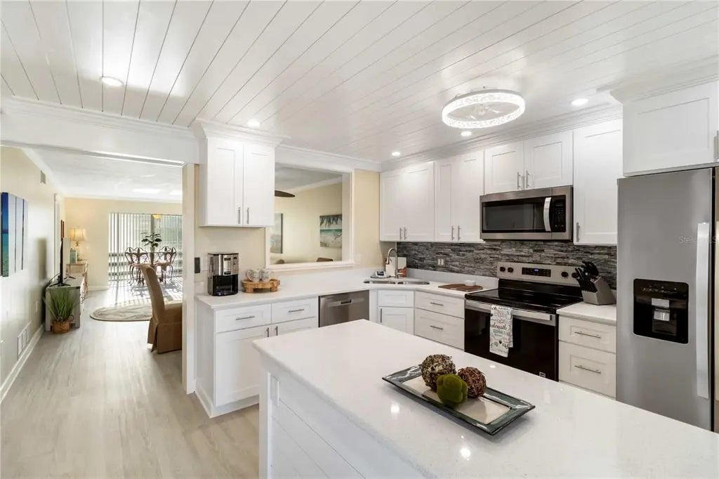 Step into your slice of paradise with this beautifully renovated 2 bedroom, 2 bath condo located on the coveted Island of f Venice. Just minutes from the charming historic downtown, you'll enjoy easy access to boutique shopping, delightful restaurants, live theater, pristine beaches and all the coastal lifestyle has to offer. This unit has been COMPLETELY UPDATED from top to bottom-everything is new. Enjoy BRAND NEW STAINLESS STEEL APPLIANCES, CUSTOM CABINETRY, QUARTZ COUNTERTOPS, STYLISH FLOORING, FRESH PAINT, MODERN DOORS AND FULL REMODELED BATHS AND KITCHEN. THIS HOME FEATURES HURRICANE RATED WINDOWS, A NEW WASHER AND DRYER, A BRAND NEW AIR CONDITIONING SYSTEM AND IS BEING SOLD TURNKEY-simply bring your suitcase and start living the Florida dream. Whether you're looking for a full time residence, seasonal getaway or investment property this move in ready gem offers low maintenance living in one of Venice's most desirable locations.