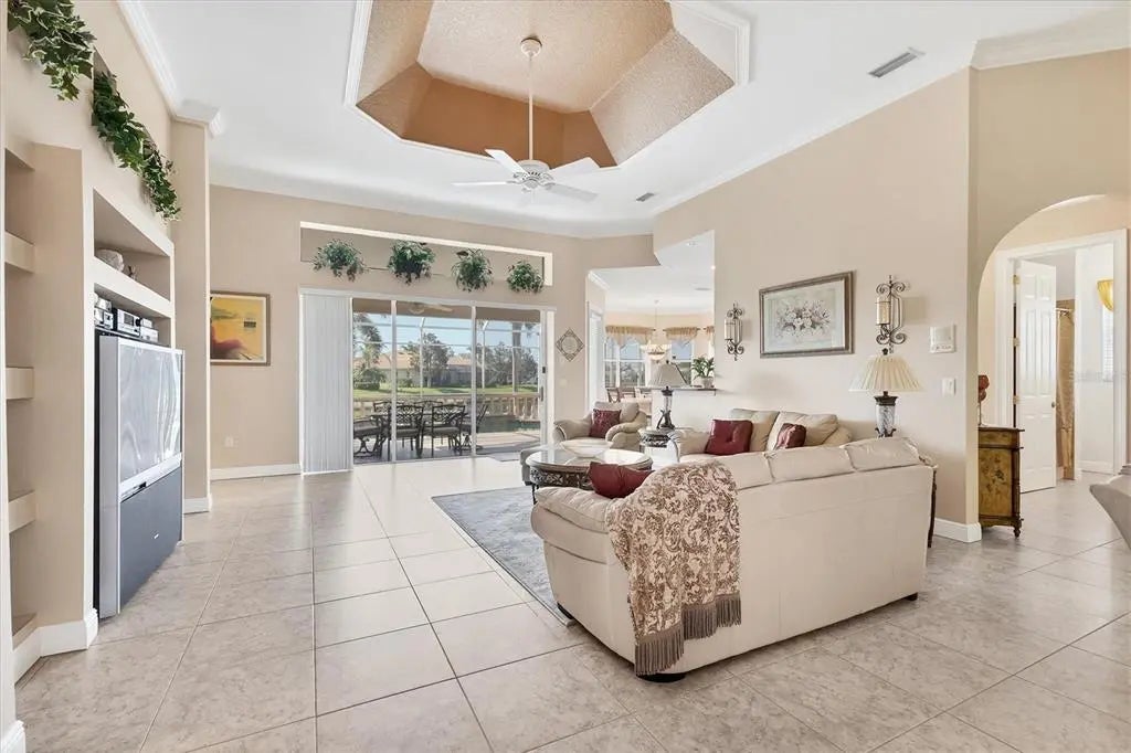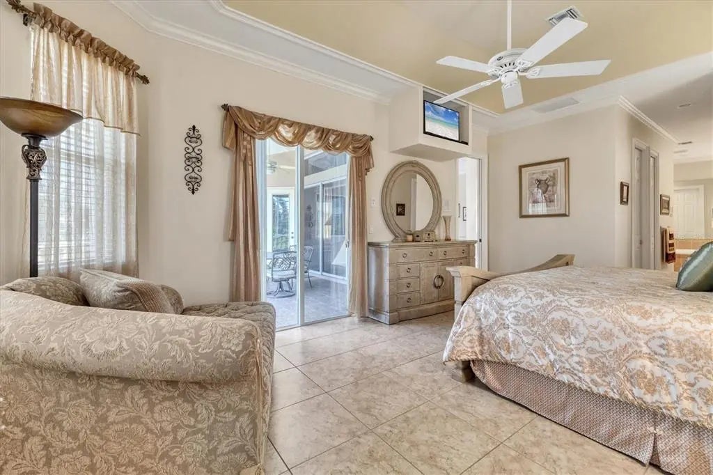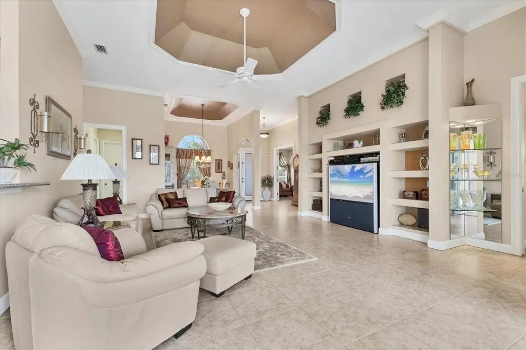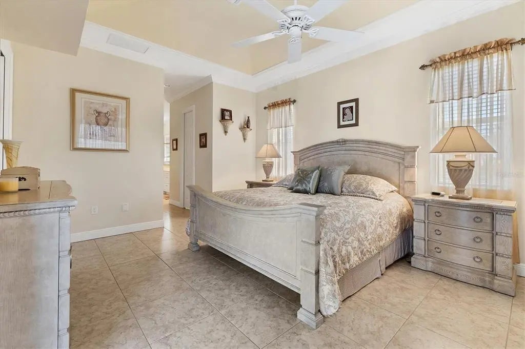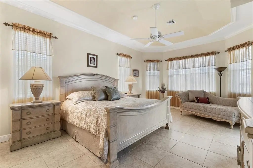 - Interior FeaturesCeiling Fan(s), Central Vacuum, Crown Molding, High Ceilings, Thermostat, Tray Ceiling(s), Walk-In Closet(s)