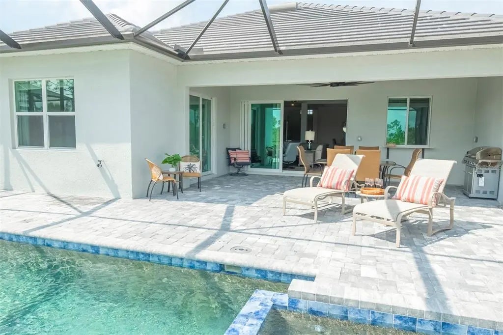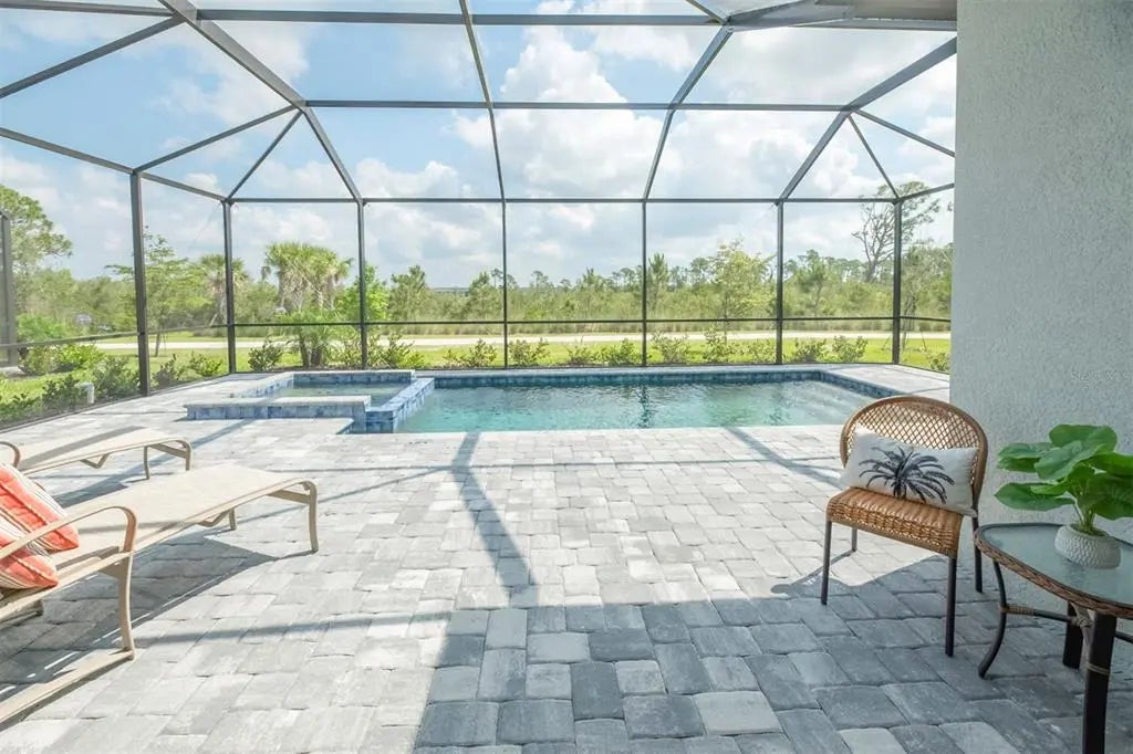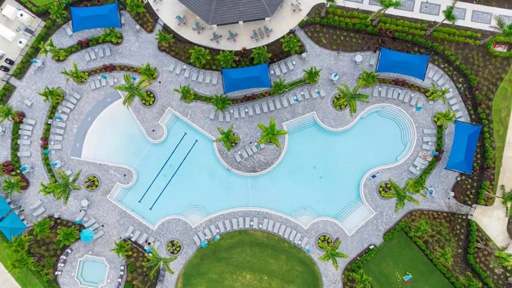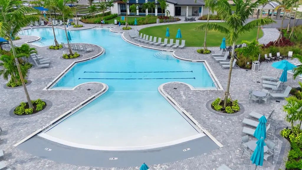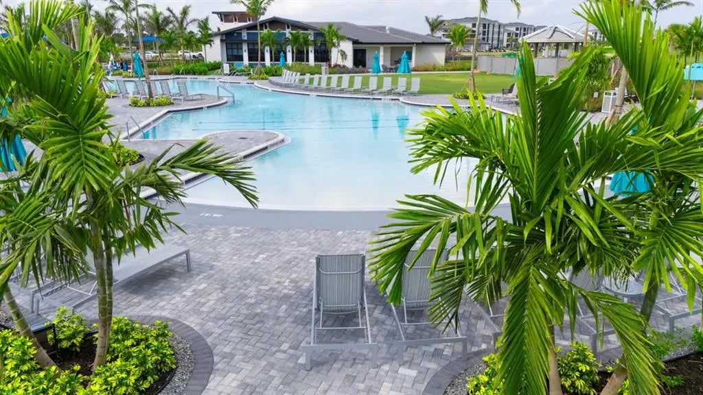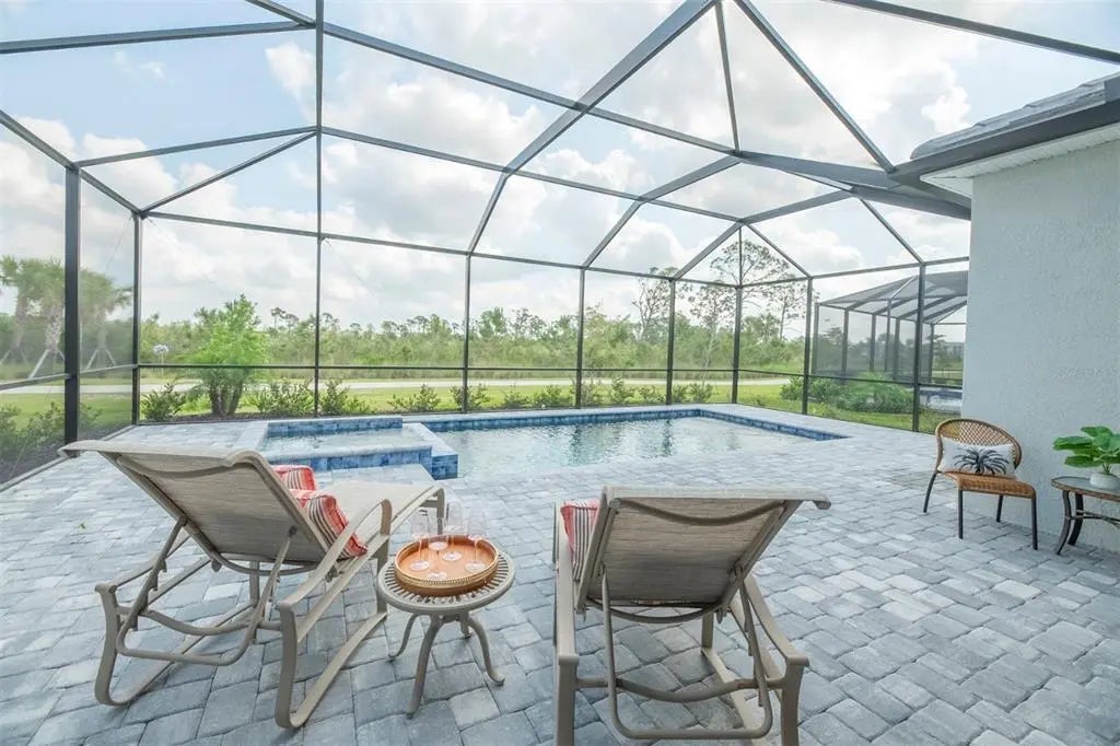 ***INCLUDES TWO DEEDED GOLF MEMBERSHIPS*** Welcome to Wellen Park Golf and Country Club — Wellen Park’s only golf neighborhood, where you’ll find this beautifully appointed Angelina model home. This spacious 3-bedroom, 2-bathroom pool home is located just a short walk or golf cart ride to the plentiful amenities, including a thoughtfully designed 18-hole golf course, where you can take advantage of TWO deeded GOLF MEMBERSHIPS. Inside, you’ll find full IMPACT WINDOWS and doors for ultimate peace of mind. The home features an open floor plan that seamlessly connects the living room, dining space, and kitchen, creating a perfect flow for entertaining and daily living. The kitchen is complete with an electric stove, large counter space, plenty of upper and lower cabinets for extra storage, a pantry and coffee nook. Three sliding glass doors bathe the space in natural light and open directly onto the expansive outdoor deck — perfect for al fresco dining, lounging in the sun, or relaxing by the large pool and luxurious spa. Turn on some music, grab your cocktail through the service window and enjoy the tropical scenery from inside the pool. Absolute Florida PERFECTION! The right wing of the home holds all three bedrooms. The luxurious primary suite includes an ensuite bathroom with both a shower and tub, his-and-her closets, and a private exit to the pool deck. The second bedroom is generously sized and well-lit with three long windows. It shares a bathroom with the third bedroom room (currently staged as a den) which easily fits a desk or home office setup alongside a Murphy bed or pullout couch, but can also be fully converted into a traditional bedroom, thanks to its closet. Residents enjoy access to world-class amenities: a resort-style pool, a tiki bar style restaurant, a state-of-the-art fitness center with classes, day spa, bocce ball, pickleball, tennis courts, dog park, playground, event lawn, golf pro shop, tennis shop, and an 18-hole championship golf course designed by Gordon Lewis. This is a golf cart-friendly community where you can explore with ease. The location is unbeatable — just minutes from the Atlanta Braves’ spring training camp, the vibrant new Downtown Wellen Park with its lakeside restaurants, events, shopping, and water activities, and close to three beautiful Gulf Coast beaches. This is more than a home — it’s a lifestyle. Don’t miss your chance to own one of the most in-demand golf properties in the region!