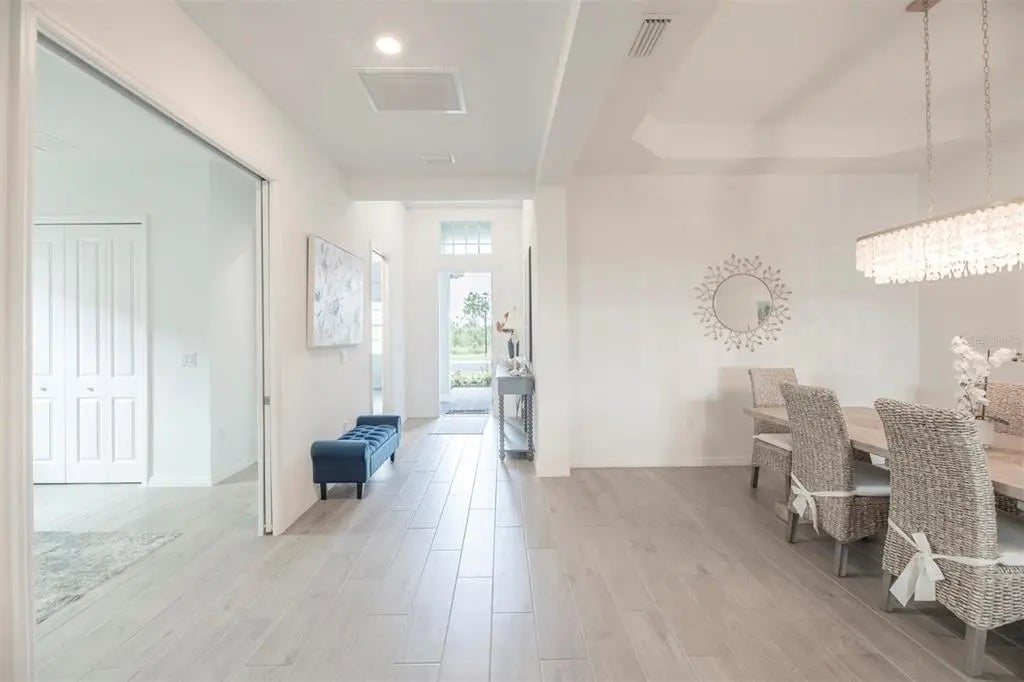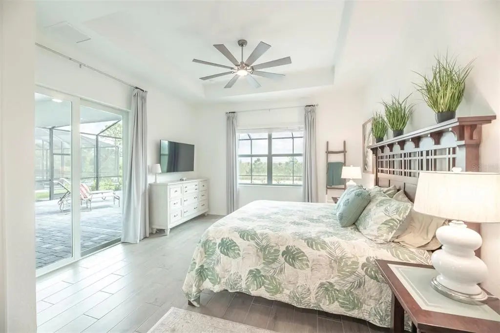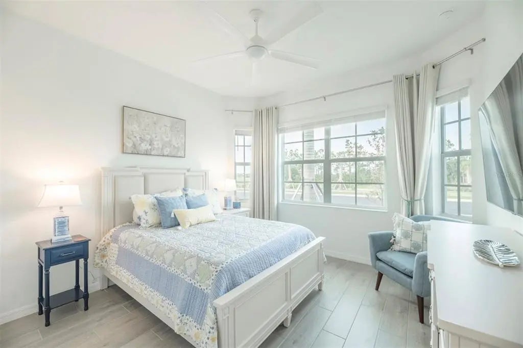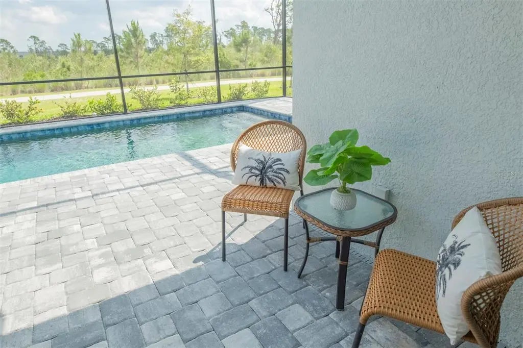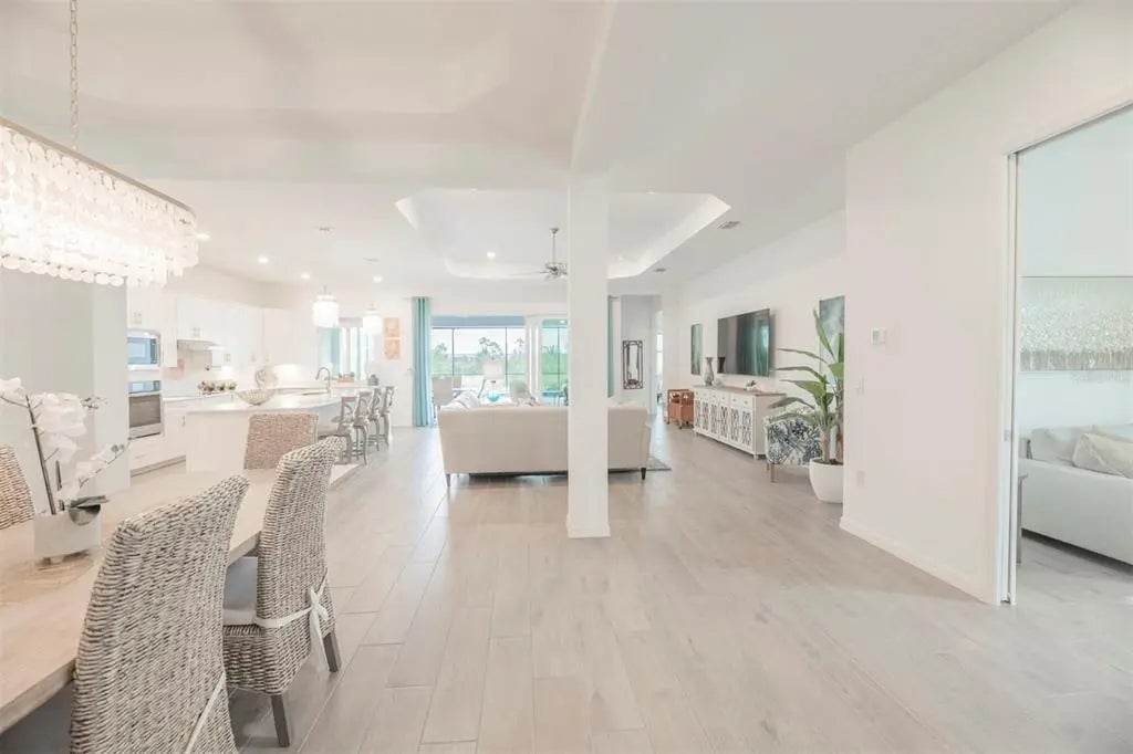 ***INCLUDES TWO DEEDED GOLF MEMBERSHIPS*** Welcome to Wellen Park Golf and Country Club — Wellen Park’s only golf neighborhood, where you’ll find this beautifully appointed Angelina model home. This spacious 3-bedroom, 2-bathroom pool home is located just a short walk or golf cart ride to the plentiful amenities, including a thoughtfully designed 18-hole golf course, where you can take advantage of TWO deeded GOLF MEMBERSHIPS. Inside, you’ll find full IMPACT WINDOWS and doors for ultimate peace of mind. The home features an open floor plan that seamlessly connects the living room, dining space, and kitchen, creating a perfect flow for entertaining and daily living. The kitchen is complete with an electric stove, large counter space, plenty of upper and lower cabinets for extra storage, a pantry and coffee nook. Three sliding glass doors bathe the space in natural light and open directly onto the expansive outdoor deck — perfect for al fresco dining, lounging in the sun, or relaxing by the large pool and luxurious spa. Turn on some music, grab your cocktail through the service window and enjoy the tropical scenery from inside the pool. Absolute Florida PERFECTION! The right wing of the home holds all three bedrooms. The luxurious primary suite includes an ensuite bathroom with both a shower and tub, his-and-her closets, and a private exit to the pool deck. The second bedroom is generously sized and well-lit with three long windows. It shares a bathroom with the third bedroom room (currently staged as a den) which easily fits a desk or home office setup alongside a Murphy bed or pullout couch, but can also be fully converted into a traditional bedroom, thanks to its closet. Residents enjoy access to world-class amenities: a resort-style pool, a tiki bar style restaurant, a state-of-the-art fitness center with classes, day spa, bocce ball, pickleball, tennis courts, dog park, playground, event lawn, golf pro shop, tennis shop, and an 18-hole championship golf course designed by Gordon Lewis. This is a golf cart-friendly community where you can explore with ease. The location is unbeatable — just minutes from the Atlanta Braves’ spring training camp, the vibrant new Downtown Wellen Park with its lakeside restaurants, events, shopping, and water activities, and close to three beautiful Gulf Coast beaches. This is more than a home — it’s a lifestyle. Don’t miss your chance to own one of the most in-demand golf properties in the region!