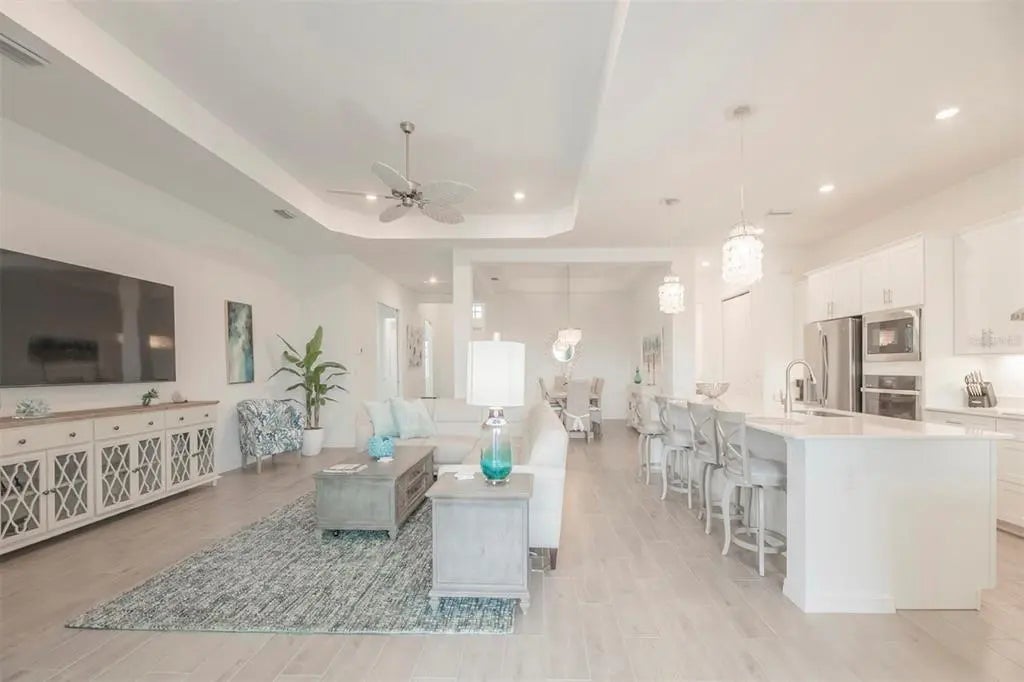 - Interior FeaturesCeiling Fan(s), Kitchen/Family Room Combo, Tray Ceiling(s), Walk-In Closet(s)