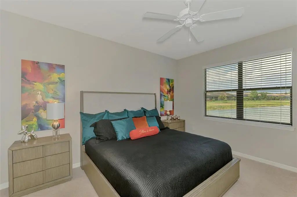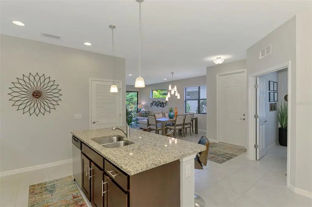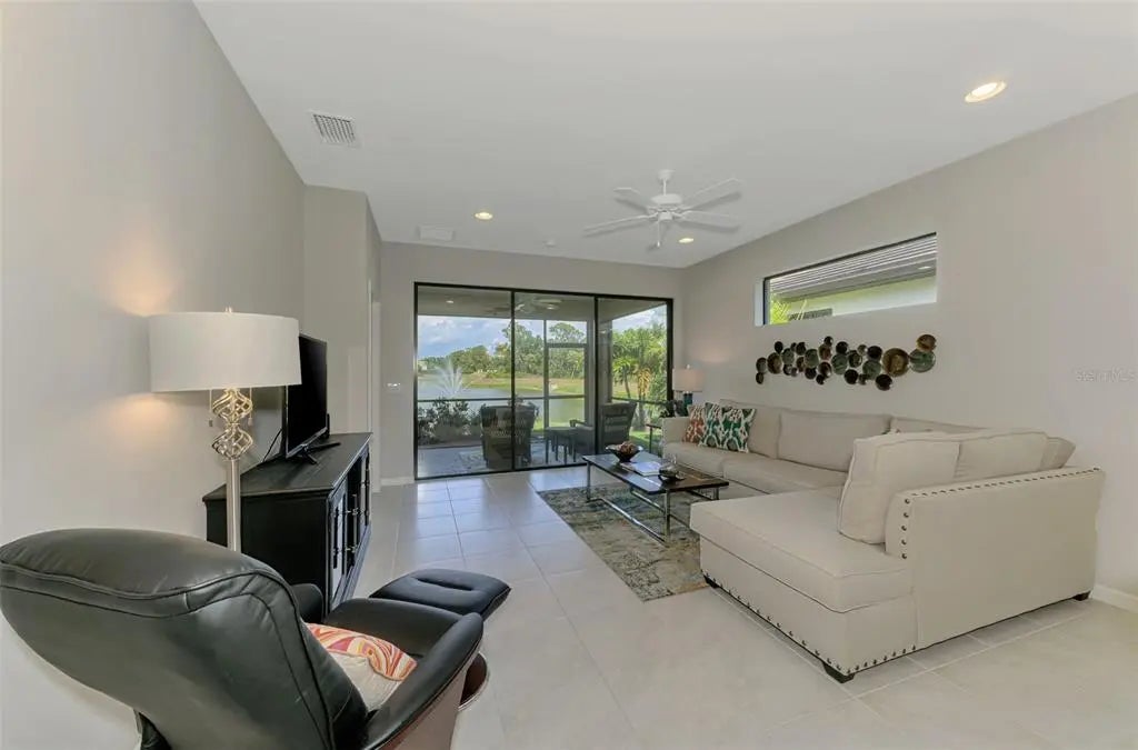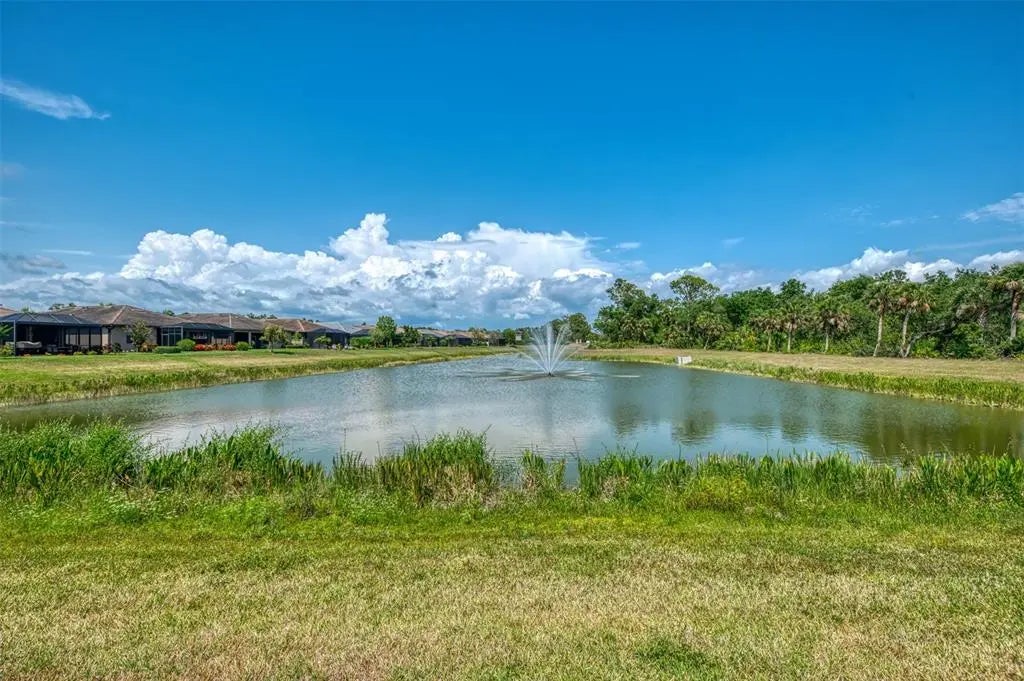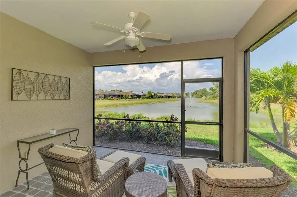 Gorgeous Lakefront Villa is complete with "Designer Turnkey Furnishings Are Available" in The Preserve of Wellen Park. Elegant kitchen has 42-inch Expresso wood cabinetry, Island has granite counters, closet pantry, and stainless-steel appliances. Dining room seats six with modern lighting. Spacious Living room with large tile and triple sliders that open to the covered lanai, which has stunning views of the lake and fountain to enjoy watching the wildlife. Master bedroom accommodates a King Size bed, a sitting area with a lake view and two walk-in closets; bath has dual sinks, vanity and glass shower. Perfect split bedroom plan for privacy plus a den or third bedroom. The entire home is freshly painted in neutral colors, hurricane shutters for peace of mind. Maintenance free, close to the community pool, fitness center, clubhouse, Bocci and pickleball. Wellen Park offers Live entertainment, farmers market, restaurants, shops and Atlanta Braves Ballpark. Make this beautiful home in paradise yours today!