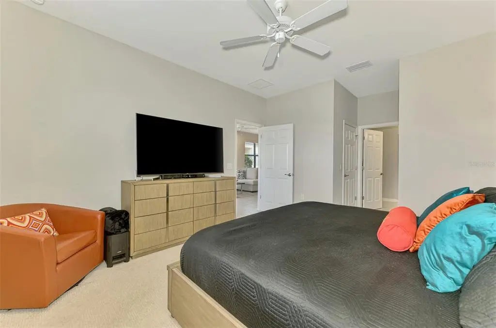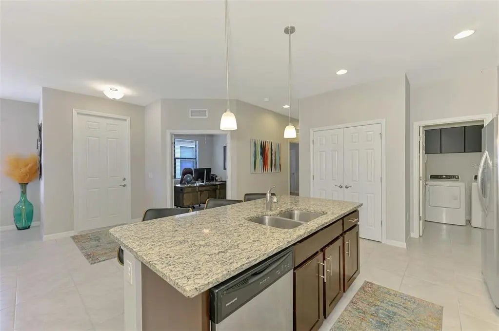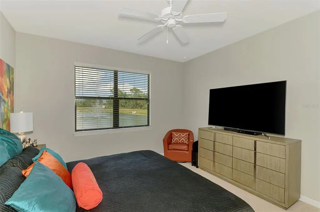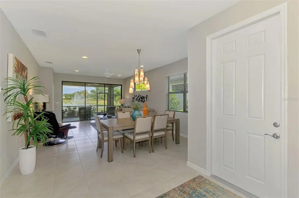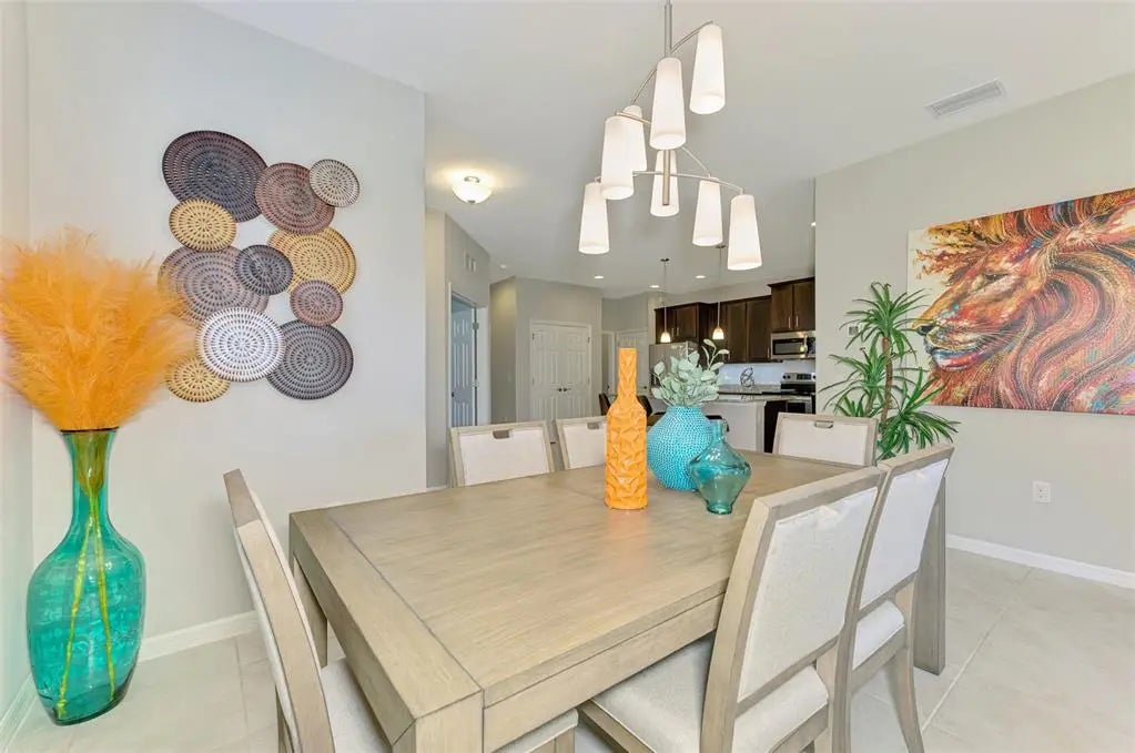 Gorgeous Lakefront Villa is complete with "Designer Turnkey Furnishings Are Available" in The Preserve of Wellen Park. Elegant kitchen has 42-inch Expresso wood cabinetry, Island has granite counters, closet pantry, and stainless-steel appliances. Dining room seats six with modern lighting. Spacious Living room with large tile and triple sliders that open to the covered lanai, which has stunning views of the lake and fountain to enjoy watching the wildlife. Master bedroom accommodates a King Size bed, a sitting area with a lake view and two walk-in closets; bath has dual sinks, vanity and glass shower. Perfect split bedroom plan for privacy plus a den or third bedroom. The entire home is freshly painted in neutral colors, hurricane shutters for peace of mind. Maintenance free, close to the community pool, fitness center, clubhouse, Bocci and pickleball. Wellen Park offers Live entertainment, farmers market, restaurants, shops and Atlanta Braves Ballpark. Make this beautiful home in paradise yours today!