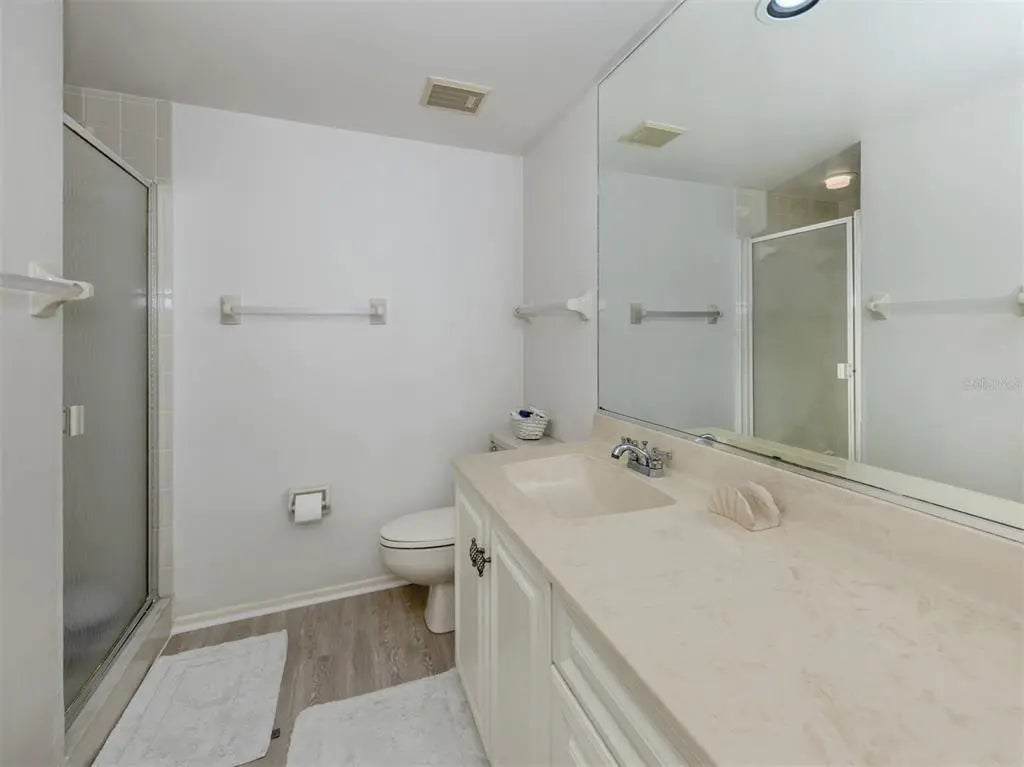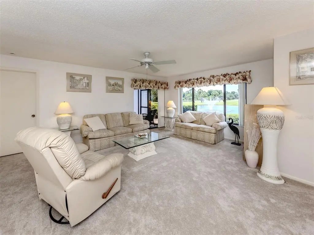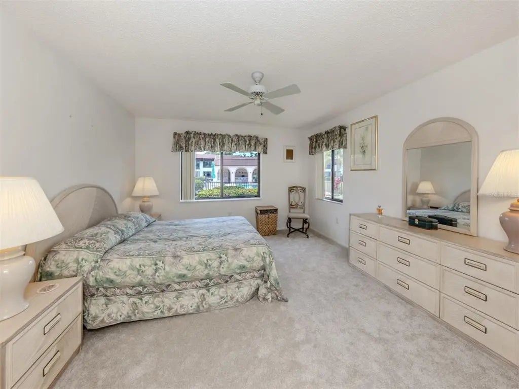 You will be very pleased with this well cared for, one-owner condo in the unique community of Summer Green, just 3.5 miles from downtown Venice Island. All condo buildings have only 5 individual units (2 on the first floor and 3 on the second floor) clustered throughout the scenic grounds bordered by the Capri Isles Golf Club, and highlighted with several ponds, oak & palm trees galore, wooden bridges, 2 pools, and golf course views over much of the property. This particular condo was built during the final phase of construction, and has some features that earlier built units do not have. A popular item would be the separation or split private bedrooms, both of which are suites, with walk-in closets and attached bathrooms on either end of the unit. Also, there is full size washer & dryer at the end of the 15' kitchen, which also has solid surface counters with plenty of work space overall, including over the W&D for a convenient folding area. The lanai has an inspiring view of the pond and golf course you can enjoy all 12 months since it is both screened and glassed in with sliding doors. Other features include new carpeting throughout, water resistant luxury vinyl plank flooring in both bathrooms, and freshly painted walls. Your 1 car garage is huge with extra storage space. There are many condos in the Venice area which you may have seen, but if you want a clean and conveniently located unit,very reasonably priced, you would be wise to check this one out. The original and only owners have only occupied this home for 6 mo out of the year - it's waiting for you to grab the keys!