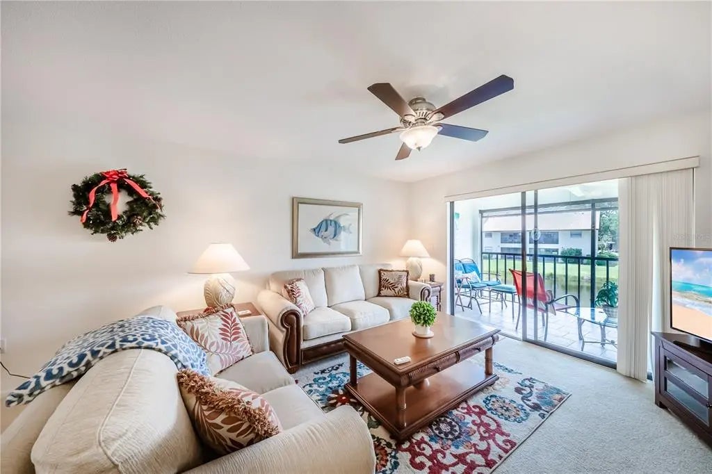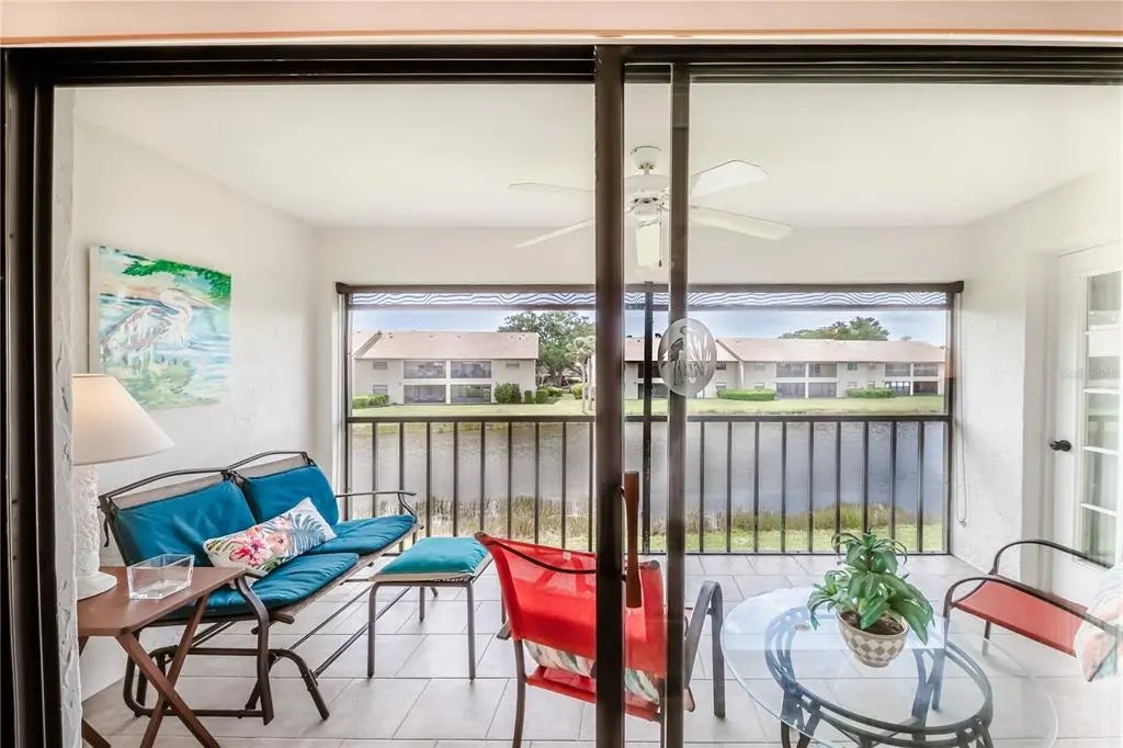 Florida paradise living awaits you in this 2 bedroom 2 bath turnkey furnished condo in the lovely, quiet community of Mission Lakes. This LAKE VIEW private second floor end unit offers plenty of natural light and is a close distance to the nearest pool. The condo has a dining and living room combo that offers a wet bar for entertaining. Split bedroom floor plan, and the primary has ensuite walk in shower as well as a walk-in closet, the second bath offers a tub with shower. The tiled screened in lanai with sunshades offers tranquil lake views. The water heater is 2022, and a full size stackable washer and dryer is conveniently located inside the unit. Tray ceiling with ceiling fan and built in window box in the kitchen gives plenty of light and room for your culinary skills. Covered parking that has room for 2 cars parked tandem with a storage room for your bikes and beach chairs. Mission Lakes is conveniently located to all the area beaches, historic downtown Venice, golf courses, the YMCA, and plenty of shopping and dining. Whether you're looking for a seasonal retreat, income producing rental, or your year round residence this condo checks all the boxes!