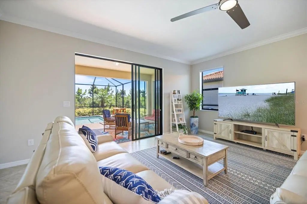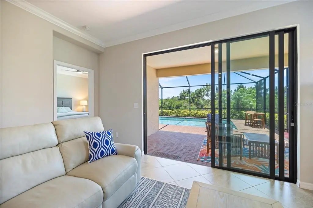 Stunning Sarasota National POOL home in "The Lake Village Community" - A Must See! This lovely 2 bedroom, 2 bathroom home with BONUS FAMILY AREA is "like-new" and nestled on a large corner lot with preserve nature views. This open concept Milan floor plan offers 1,900 sqft with a gorgeous granite kitchen island overlooking the main living room and pool deck area, perfect for entertaining! Enjoy tranquil pool time in this HEATED pool ALL YEAR ROUND - plus, a brand new heater was install in June 2025! The pool decking showcases timeless pavers with plenty of room for dining, lounging and barbequing! The master suit bedroom has a large, modern en-suit glass shower bathroom, closet commode and two walk-in closets. Your guests will have the opposite side of the home and use of the second bathroom, complete with a soaker tub. This has BEEN A SEASONAL HOME to ORIGINAL OWNERS and MAY BE PURCHASED FURNISHED, with a separate sale. Sarasota National offers some of the most unique amenities in the Venice area! This is a LIFESTYLE COMMUNITY with a highly regarded prestigious Gordon Lewis-designed GOLF COURSE, BUT there’s so much more than golf to this community! Being in the "The Lake Village Community", also known as the non-golf membership side, residents can enjoy golf on a "pay to play" basis, but GOLF MEMBERSHIP IS NOT REQUIRED. There's definitely premier golfing is this community, but you'll soon discover there are many more amenities and activities to keep you busy! A favorite among residents is The Palm Club Restaurant & Bar. This is their signature POOL SIDE TIKI BAR with delicious drinks, yummy food, gas fire pits and gorgous pool views! There’s also a charming Coffee lounge, complete with Wi-Fi and tables for working or group fun! Bring your family and friends to the beautiful resort-style community pool for lounging, swim laps (dedicated lap section), hot tub fun, or go play PICKEBALL, Har-tru tennis, bocce ball, or visit the dog park. There's even a 7,300 sqft fitness center with exercise classes and a day spa! This HOA offers so many activities, plus lawncare, irrigation, and basic cable are part of the HOA. Cyclists and walkers also enjoy the breathtaking preserve and wetlands views within this massive 2,400 acre community, all with protected land, designed with input from the National Audubon Society. This Venice community is an ideal location, only 9 minutes from Wellen Park, with it’s new restaurants, weekly Farmers' Market, baseball, and Free Friday night concerts. Plus, our historic downtown Venice is just 15-20 minutes away, along with several nearby beautiful beaches!