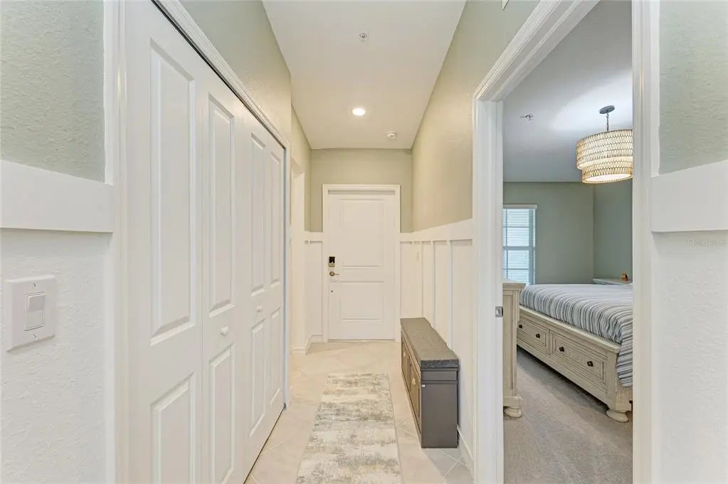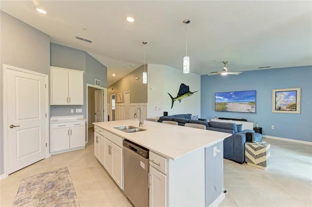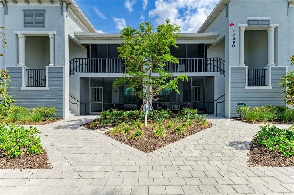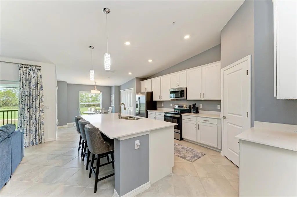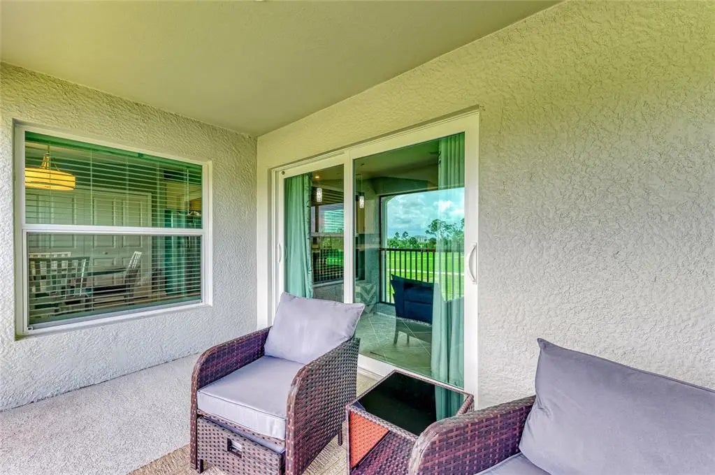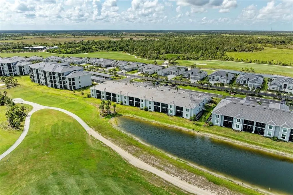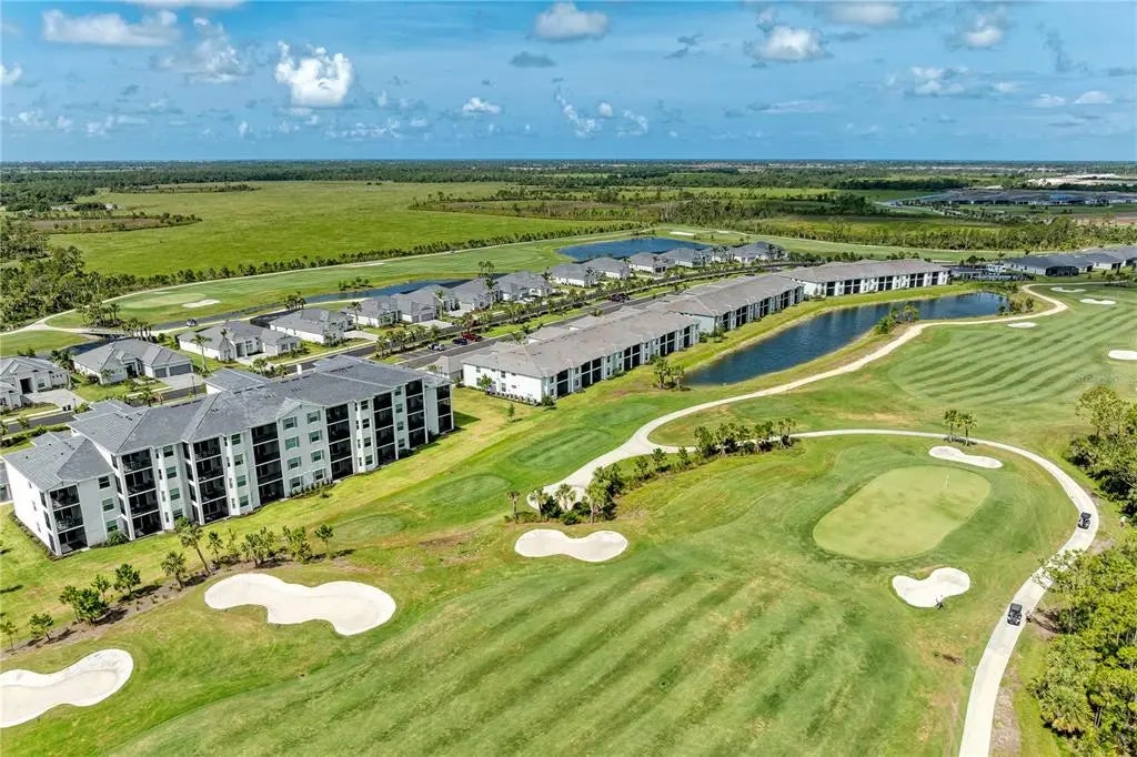 Looking for tropical carefree living or just a get-away retreat? This Diangelo II veranda condo in Wellen Park Golf & Country Club (WPGCC) is for you! This gated community is luxury living at its finest. The 2-bedroom and den condo on the 2nd floor is constructed with high ceilings which adds to the spaciousness of the home. A Golf Membership is included with this condo and the lanai actually looks out at the 11th hole and a small pond--you can enjoy watching the golfers and the wildlife. The golf course is designed by Gordon B. Lewis, an area resident since 1978. He has designed over 80 courses from Marco Island to Tampa! This 1355 sq ft open concept condo allows you to engage with your family and friends from the kitchen to the dining and living rooms. The screened lanai off the living room overlooks the golf course. The luxury kitchen with quartz countertops offers stainless steel appliances and double sink. The large island is fantastic as a breakfast bar or as an hors d'oeuvre bar for entertaining. The kitchen cabinets, closet pantry and closet on the side of the dining room provide ample storage space. Just off the kitchen and living room is the den which can be used as a 3rd bedroom. Current owners use it as an office. The primary bedroom has a window looking out onto the front lanai and an en suite bathroom. There are 2 walk-in closets off the hallway from the bedroom to the bathroom which has 2 sinks and quartz countertops. There is a roomy shower stall with a glass door. The 2nd bedroom is across the hall from the primary and has a window with view to the front lanai too. Both bedrooms are carpeted. You will appreciate your 1-car garage that comes with this condo so you can store your bikes, clubs, or beach chairs. You will love your sanctuary after having played 18 holes of golf, pickle ball, tennis or bocce ball which are just a few of the amenities in WPGCC. There is a state-of-the-art Fitness Center which houses a Spa for massages and other personal treatments. Relax your muscles in the Sauna provided in both the Men and Women's Locker Rooms! The bocce ball courts are just outside the Fitness Center. Enjoy food and drinks at the TIKI Bar located conveniently between the pool and the tennis/pickle ball courts. A Clubhouse with a Grille Room and Formal Dining Room will be built between the Golf Pro Shop and the Fitness Center. There is more to WPGCC than what's within its community, it is close to Cool Today Park which is the home of the Atlanta Braves Spring Training stadium. In addition to spring training, there are concerts, car shows and other venues throughout the year. Downtown Wellen Park is minutes away offering shops, restaurants, canoeing, biking and a 2.8 mile walking trail around its beautiful Grand Lake. Your about 20-30 minutes away from the Gulf Shore beaches and about an hour from the world-famous Siesta Key Beach. Stroll down the streets of Historic Downtown Venice about 30 minutes away. Heading north to Sarasota you can enjoy the night life on Main Street or shows at Florida Studio Theaters, the Opera House, Van Wezel Performing Arts and, of course, take in the views of the gorgeous Sarasota Bay. It's all here and near at Wellen Park Golf and Country Club so please plan your visit to see this lovely condo and start your paradise living.