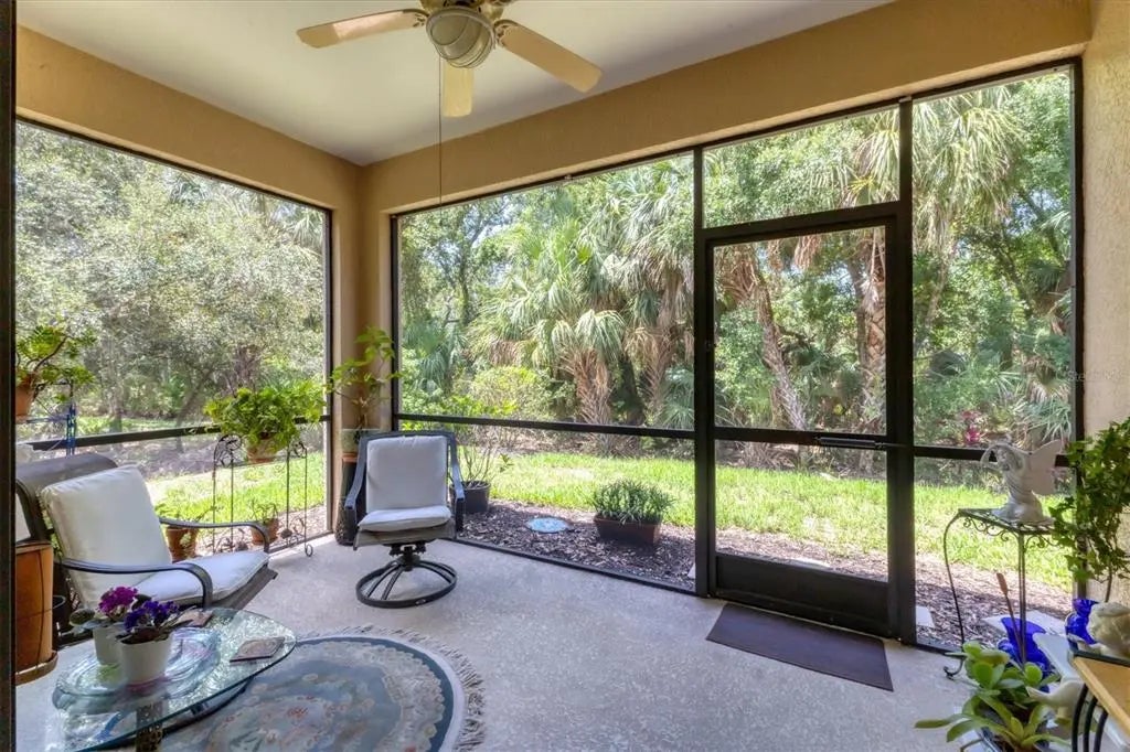 Rarely available end-unit villa on a premium lot with no rear neighbors and tranquil preserve views! Located in the gated, maintenance-free 55+ community of Venetian Falls. This home is a must see on your list of Villas to tour. Built in 2006, this 2 bed / 2 bath + bonus room with a 2-car garage is one of the largest villas in Venetian Falls at 1,600 sq ft. The open-concept dining and living area, combined with high ceilings and a view of the preserve, creates an expansive and airy space. The spacious primary suite sits towards the back of the home and features a large walk-in closet with a secondary built-in closet for the extra storage space. The primary bathroom is equipped with double sinks and a walk-in shower. The eat-in kitchen features solid wood cabinets, pull-out shelves, breakfast bar, kitchen nook, and pantry. Updates include water heater, under-sink plumbing, faucets,and microwave. Hurricane (accordion style) shutters installed. Here in Venetian Falls, you will find resort-style amenities: heated pool, fitness center, clubhouse, game room, bocce, library & full calendar of social events. Located within minutes to historic downtown Venice and Venice Beach. Enjoy the best of Florida living!