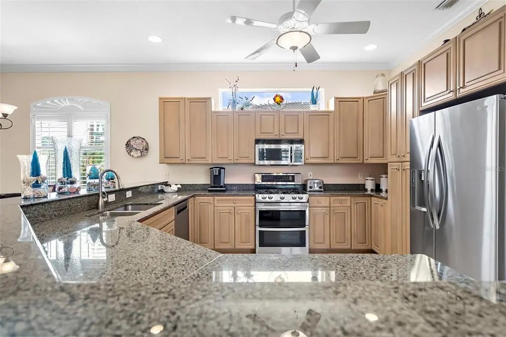 New Roof! Seize the chance to own a home on one of the higher elevations on Venice Island! You’ll be greeted with lush bright tropical landscaping as you walk through the front door of the screened entryway. Step inside to find an incredible courtyard featuring a waterfall pool with spa and an outdoor kitchen with a backdrop of a custom coastal-designed tiled wall. Within this fabulous outdoor paradise, you will discover a unique separate Casita, perfect for guests or use as a private office or studio, complete with its own bathroom and dual closets. Continue through the courtyard to the main entrance, leading you into an open floorplan living area with high tray ceilings. What an amazingly well-taken care of home! Here, the Living and Dining Rooms, Kitchen, and Dinette flow together seamlessly, ideal for entertaining and everyday living. The very spacious upgraded Kitchen will surprise you with a wine fridge, gas range, and beautiful granite countertops. The solid wood cabinetry has pullout drawers and spice rack. This split bedroom design will find the spacious Primary Suite to the left, while the Guest Bedroom, Bath, and Laundry are conveniently located to your right. This one-owner home is filled with special extras at every turn. Tile and new luxury plank flooring will be seen throughout. Stylish crown molding at the ceilings and plantation shutters on the windows. A home that is truly special and unique, offering a blend of luxury and comfort in every detail. Water heater Fall 2024, Pool heater Summer 2025. Bellagio is a gated community of 144 single-family, maintenance-free Mediterranean-style homes located at one of the highest points on the island and set within mature, beautiful tropical landscapes. Desirable amenities include a clubhouse, pool, and tennis courts. You will feel like you’re living a life of ease and luxury. Enjoy direct access to the Venetian Waterway Park, which runs along the Intracoastal Waterway. Here on Historic Venice Island, you’ll find Publix, Walgreens, and a hardware store, along with a multitude of small independent retail businesses, art, theatre, restaurants, and nightlife. Attend one of the many events at the Venice Airport Festival Grounds, visit Brohard Dog Paw Park for your four-legged friends, hunt for shark teeth at Casperson Beach, or explore the Venice Fishing Pier after dining at Sharky’s or Fins on the Gulf of Mexico.