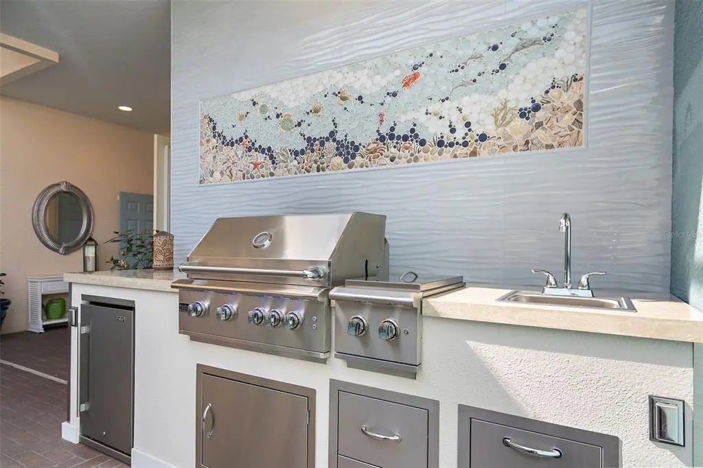 - Exterior FeaturesCourtyard, French Doors, Hurricane Shutters, Irrigation System, Lighting, Outdoor Grill, Outdoor Kitchen, Outdoor Shower, Rain Gutters, Sliding Doors