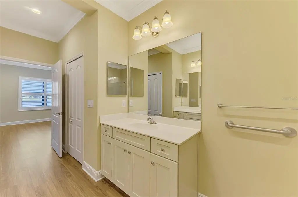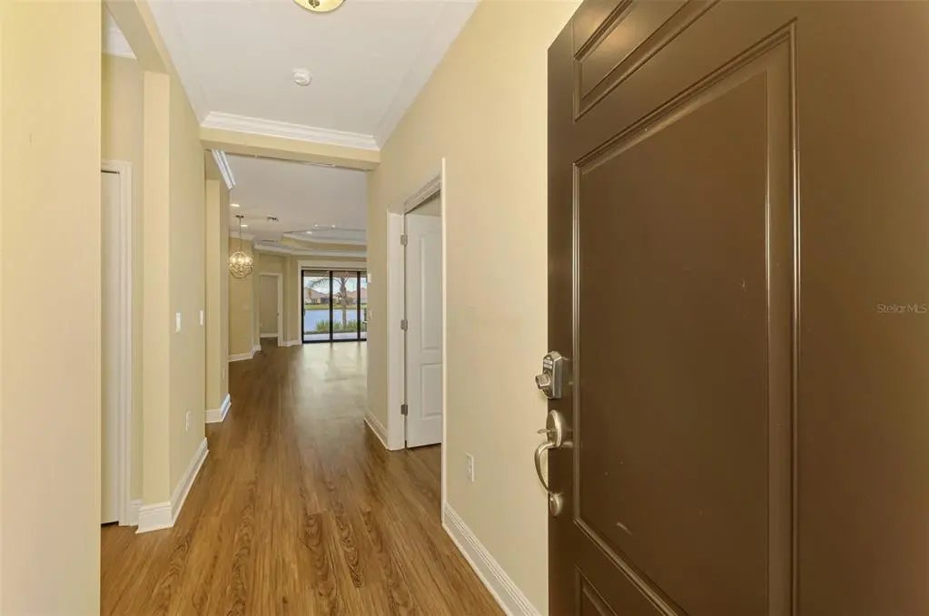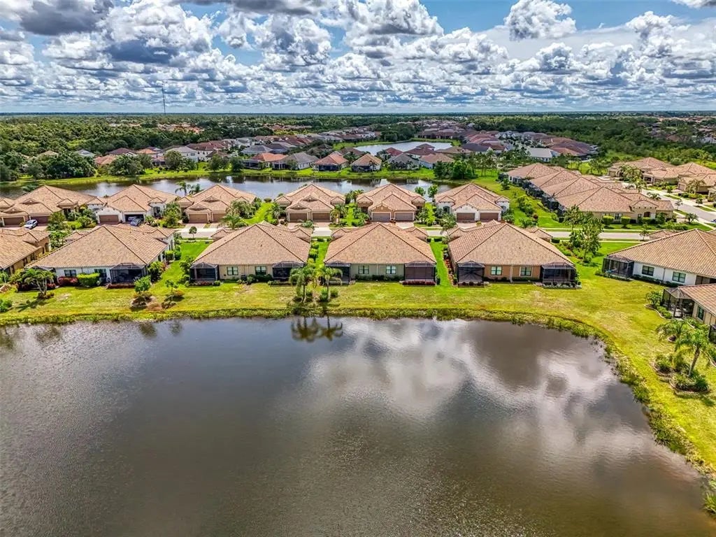 Welcome to the Gated Grand Palm Community, which is immersed in nature and a family-friendly environment. This Tidewinds Villa model includes two bedrooms, two bathrooms, a den, a two-car garage, and a spacious indoor laundry room with extra storage. Upon entering, you are welcomed by a bright, open-concept layout that has been thoughtfully enhanced with numerous custom upgrades: plantation shutters, crown molding, tray ceiling, luxury vinyl plank flooring, and fluted wood panels in the dining room and around the kitchen island. Please take a look at the attachment for all upgrades. The kitchen, the heart of the home, features solid wood cabinets, pull-out drawers, a walk-in pantry, a large island with pendant lights, double sinks, reverse osmosis, and stainless-steel appliances that are perfect for seamless entertaining. Pocket sliding doors in the great room lead to an extended lanai overlooking a serene pond, complemented by a transparent screen enclosure that maximizes the picturesque views and creates a seamless indoor-outdoor experience. The lanai includes a built-in gas grill hook-up and a remote shade screen with dimmer lighting. For peace of mind, the home features impact-rated hurricane windows and a full-house gas-powered Generac generator, ensuring safety and continuous electricity for owners who travel frequently. The design is ideal for providing guests with privacy, as each includes its own bathroom. The master suite boasts a walk-in closet and a private en-suite bathroom, with a spacious walk-in shower and dual vanities. The home also has a whole-house water filtration system and water softener. Okaloosa villas will enjoy access to a private pool area with a spa, bathrooms, and a covered gathering space with a gas grill, making it perfect for hosting family and friends while enjoying a swim. The Grand Palm Community offers an impressive array of amenities, including the Social Club, which features a full kitchen, library, and a spacious social room, in addition to the master HOA offices of KWPMT and a dedicated social director to coordinate community events. It also boasts a resort-style pool, spa, lounge chairs, a beach-style pool entry, bathrooms, and ample parking. The pickleball courts are adjacent to the Social Club. The Palm House is the hub for fitness and recreation, showcasing a pool with a slide, a separate lap pool, and outdoor areas featuring tennis and volleyball court, basketball court, a dog park, a playground, and a splash park, a covered pavilion with picnic tables, miles of picturesque nature trails, and a kayak launch. The N1 office is at the Palm House. Grand Palm is just a few miles from the beautiful beaches of Venice, Manasota Keys, and historic downtown Venice. It is conveniently close to Wellen Park, which hosts the Atlanta Braves' spring training facility (CoolToday Park), waterfront dining, boutique shopping, and weekly events.