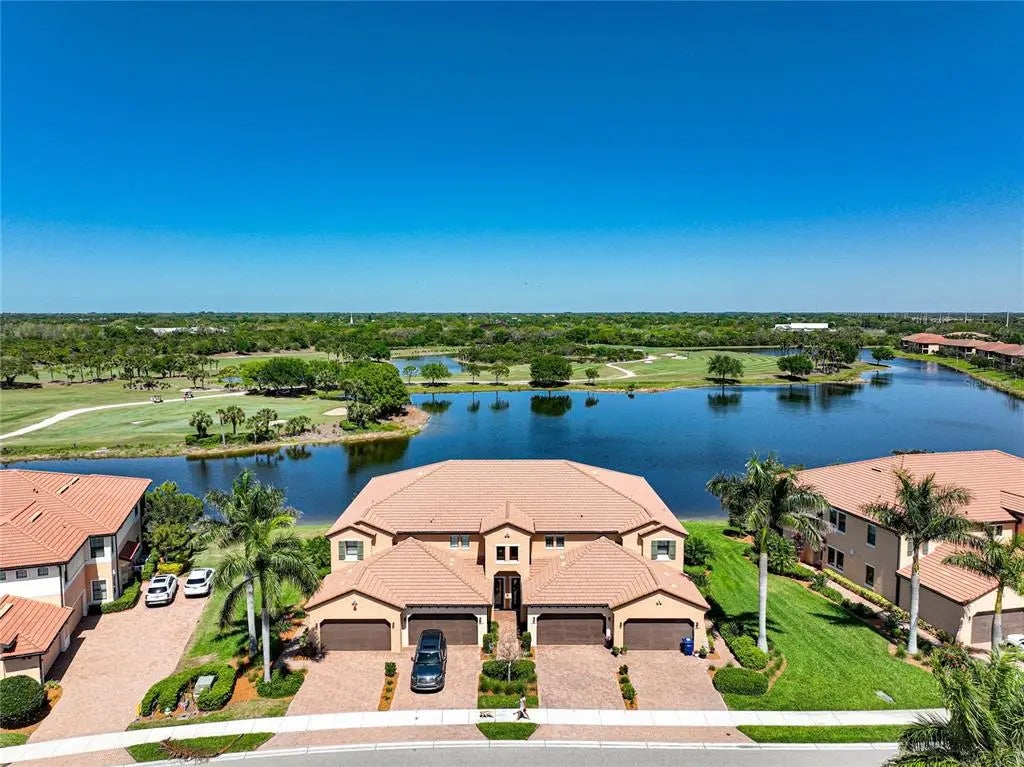 WCI Build and known for luxury quality homes. Sarasota National Turn-key Condo ready for new owners! Is that you? This condo features a Water AND Golf course view, and the view means a Golf Membership IS included. Inside you will find 2 full bedrooms with a den for your additional guests or home office/entertainment with custom French doors AND a sitting room aside from your open living and kitchen area. California Closets in the owners suite along with sleep number bed conveying. Wood flooring on stairway offers a clean entry. Lanai floor just freshly painted. Storage space added in the garage and additional fridge creates any extra storage you may need. Schedule your showing today!