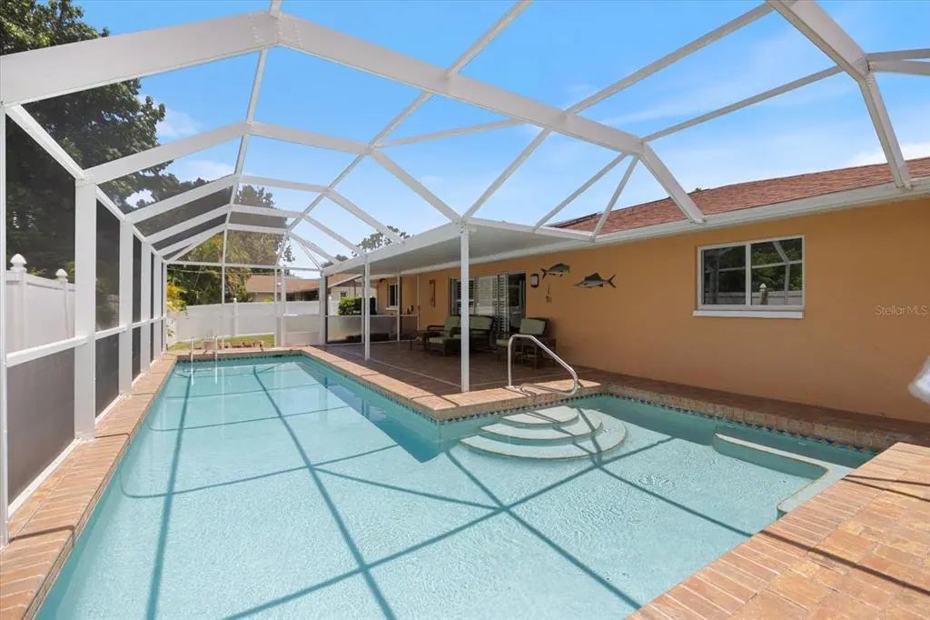POOL HOME BACK ON MARKET WITH A NEW ROOF & PRICE REDUCTION!!! This beautifully maintained 3-bedroom, 2-bath pool home is tucked away on a spacious lot in the heart of South Venice, just 4.5 miles from Venice Beach. Step inside to find a light and airy interior with ceramic tile throughout the main living area, plantation shutters, hurricane-impact windows and sliding glass doors that invite natural light into every room. The open layout flows seamlessly from the upgraded kitchen—featuring rich wood cabinetry, granite countertops, and dovetail construction—to the expansive living area and out to your private backyard oasis. Out back, a large heated pool surrounded by elegant paver decking offers the perfect space for year-round relaxation and entertaining. An outdoor shower adds a touch of convenience for those sun-soaked days. Recent upgrades include a NEW ROOF 2025, 2023 HVAC system, 2024 WATER HEATER, 2024 SOLAR offering a $43/month energy bill, and a stylish vinyl and wrought iron fence that enhances both privacy and curb appeal. The garage is equipped with a screen system for breezy evenings and added versatility. Enjoy the freedom of no HOA or CDD restrictions in a location that places you just minutes from Venice Beach, Sharky’s on the Pier, the historic downtown Venice, shopping, dining, medical facilities, and top-rated schools. This home offers the perfect balance of comfort, style, and Florida lifestyle—schedule your private tour today before it's gone.
