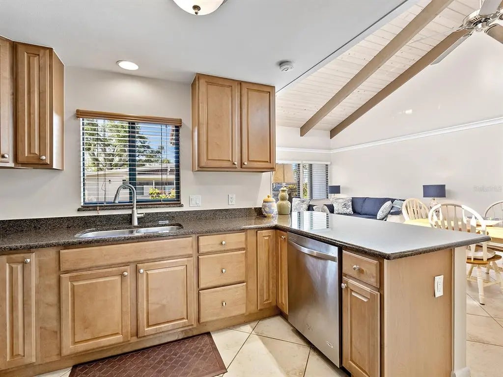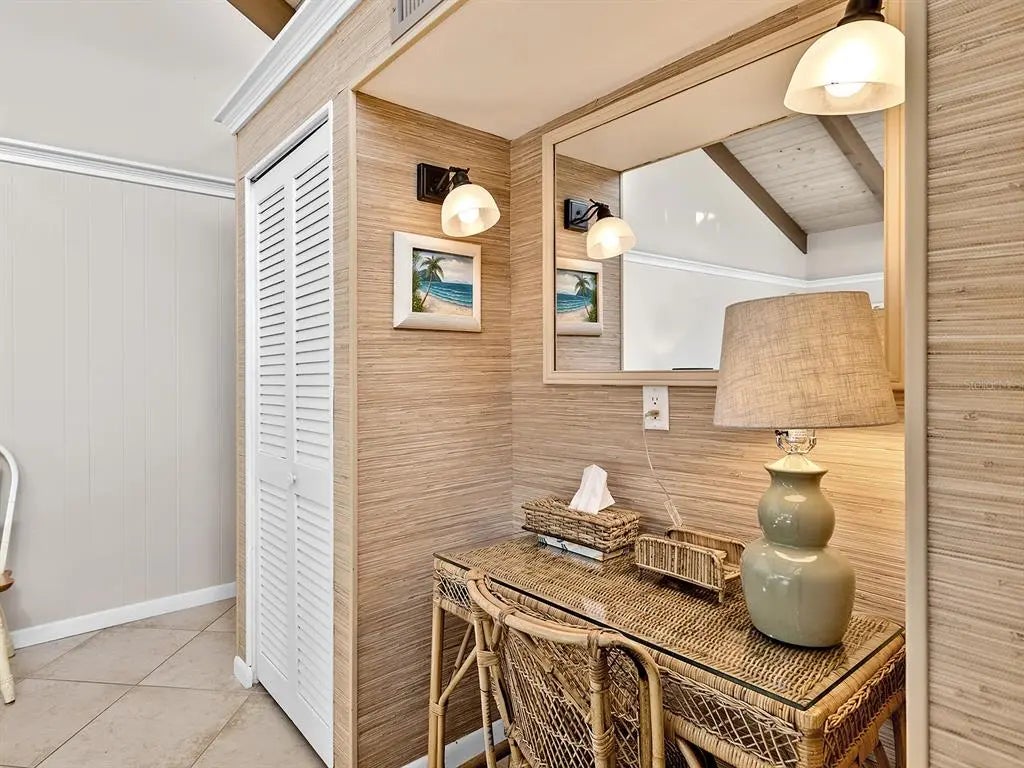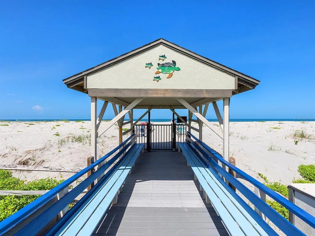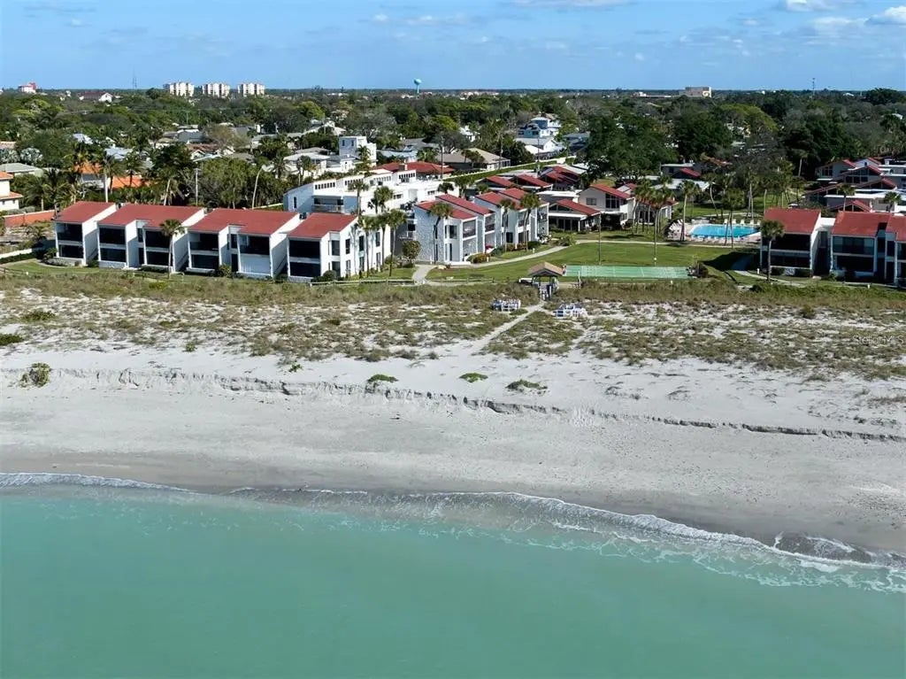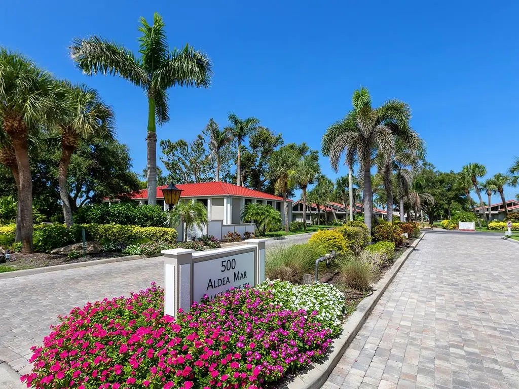 Welcome to The Village by the Sea, Aldea Mar, a charming condo community featuring one of the the largest coastal frontage in Venice, with over 500 feet of private deeded beach access. This is a rare opportunity to own a fully turnkey two bedroom, one and a half bathroom villa. The bright and spacious interior lives like a private residence, with vaulted ceilings and an exposed natural wood look ceiling that brings warmth and character to the space. Aldea Mar offers a relaxing coastal lifestyle, including a large heated swimming pool, a putting green, shuffleboard courts, and a welcoming clubhouse for residents and guests. Conveniently located just one mile from the vibrant Venice Historic District, Lake Venice Golf Club, and several scenic island parks, this villa combines comfort with an unbeatable location. Whether you are seeking a full time residence, a seasonal retreat, or an investment opportunity, this home is your chance to join one of the most desirable communities on the Gulf Coast.