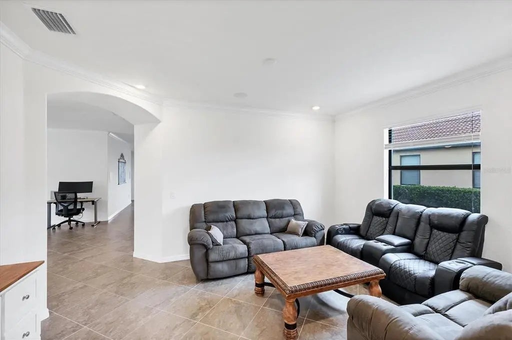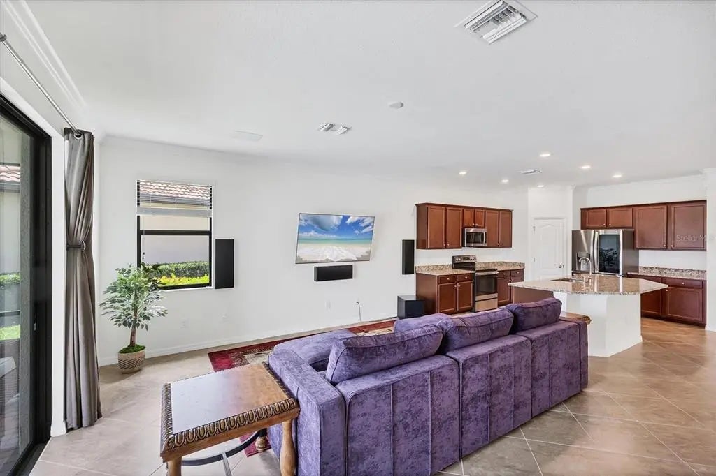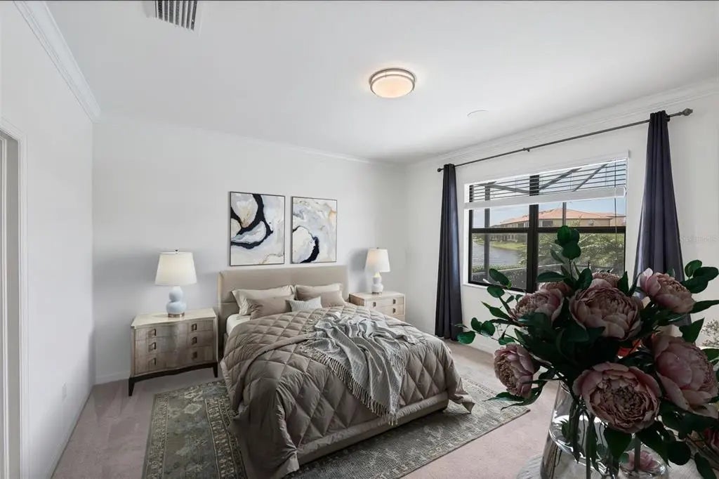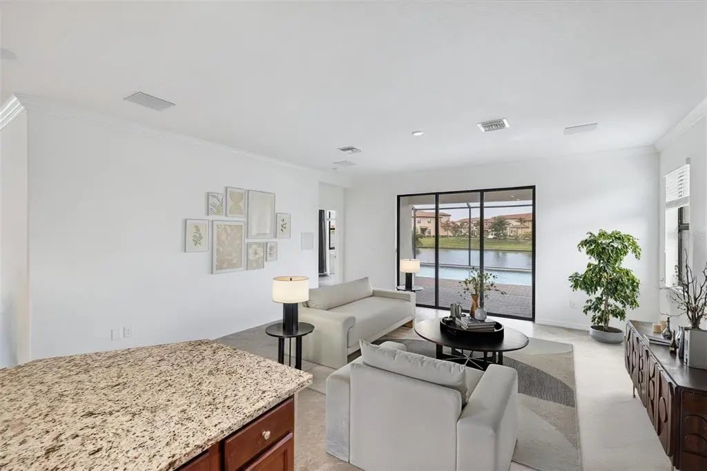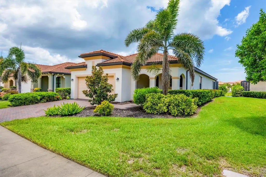 TRULY SPECTACULAR VIEWS!! Private pool and lanai overlooking lake views in all directions. SOUTHWEST EXPOSURE for sun all day long. PAVERED LANAI SURROUNDS SOLAR HEATED POOL. Looking for a little relaxation in the shade- sit on your front porch- a great place for reading a book and watching or engaging with the neighbors walking by. This Milan floor plan has 2BR/2BA and a SEPARATE FLEX ROOM that has multiple uses and can be whatever you prefer. Often used as an office space or den with a pull out sofa for extra guests. The large open great room is the heart of the home, combining living room, kitchen, and dining room areas together for cozy gathering or all out entertaining space. The whole home is enhanced with a Neutral, Warm decor, high ceilings, crown molding, and 8 foot doors. Gourmet kitchen offers GRANITE counters, STAINLESS STEEL appliances/upgraded refrigerator, extra recessed lighting, and Island perfect for eating breakfast or setting out hors d'oeuvres and wine. Tile flooring throughout the main rooms with carpets in the 2 bedrooms only. Spacious en suite master bedroom with 2 WALK IN CUSTOM BUILT closets. Master bath has dual sinks and walk in shower. Large Guest bedroom at other end of home for privacy. Separate laundry room with wash sink. HURRICANE SHUTTERS. Not in Florida to see it in person? Go to the 3D Walkthrough at : https://my.matterport.com/show/?m=heBGDXv4DTf Sarasota National is Venice’s premier community, offering over 1,300 acres of preservation, conservation, lakes, and open spaces with breathtaking views. As an Audubon International Certified Sanctuary, it provides the perfect backdrop for the community’s 18-hole championship golf course. Enjoy resort-style amenities, including a huge pool and spa, Tiki Bar, tennis courts, pickle ball, bocce courts, a 7000 sq. ft. fitness center, a 30,000 sq. ft. clubhouse with dining and incredible views, and a coffee lounge/library/card room/meeting place. Plus, there’s a day spa for relaxation. The community is just minutes from the new Wellen Park shopping area and Atlanta Braves stadium, with Venice Beach and downtown Venice only a short drive away. Whether you enjoy dining, shopping, or outdoor activities, this location has it all. Live the Florida lifestyle and make every day feel like a vacation! Schedule your tour today! BE AWARE, hitting the "contact agent"button on Zillow or 3rd party websites will NOT take you to the person who has the house on the market. SEE THIS GREAT HOME TODAY and FIND YOUR FLORIDA LIFESTYLE!