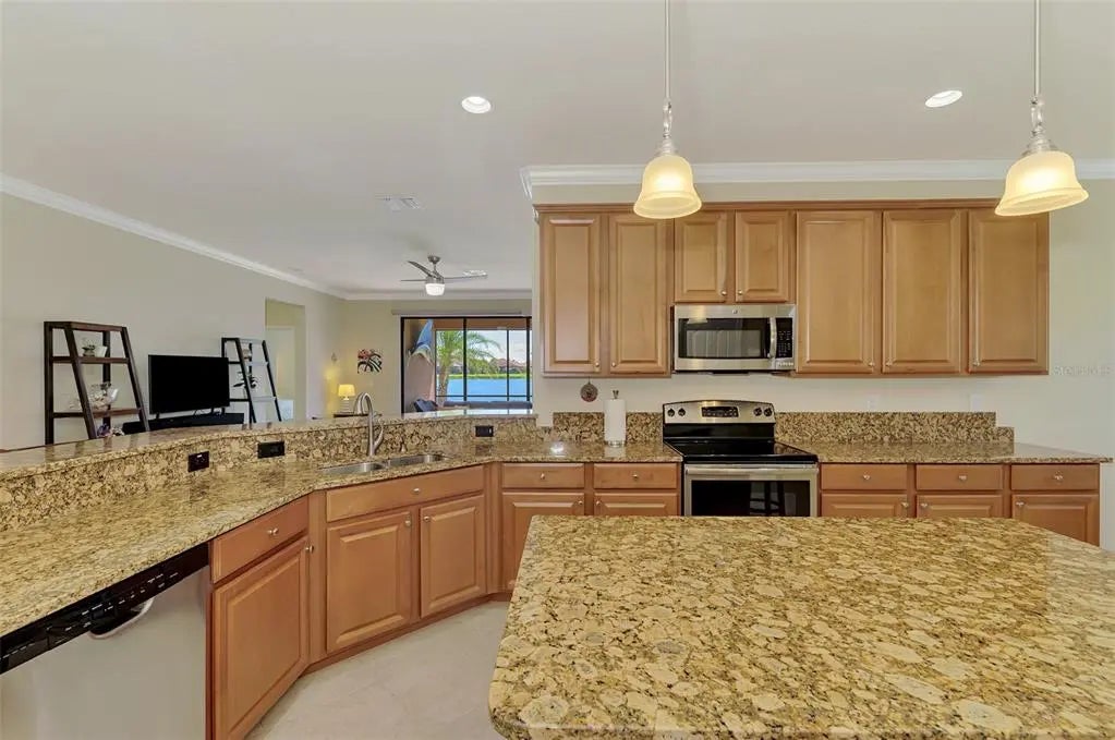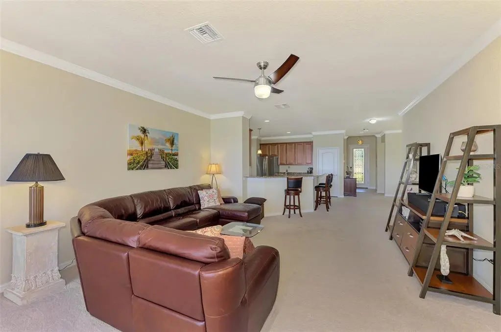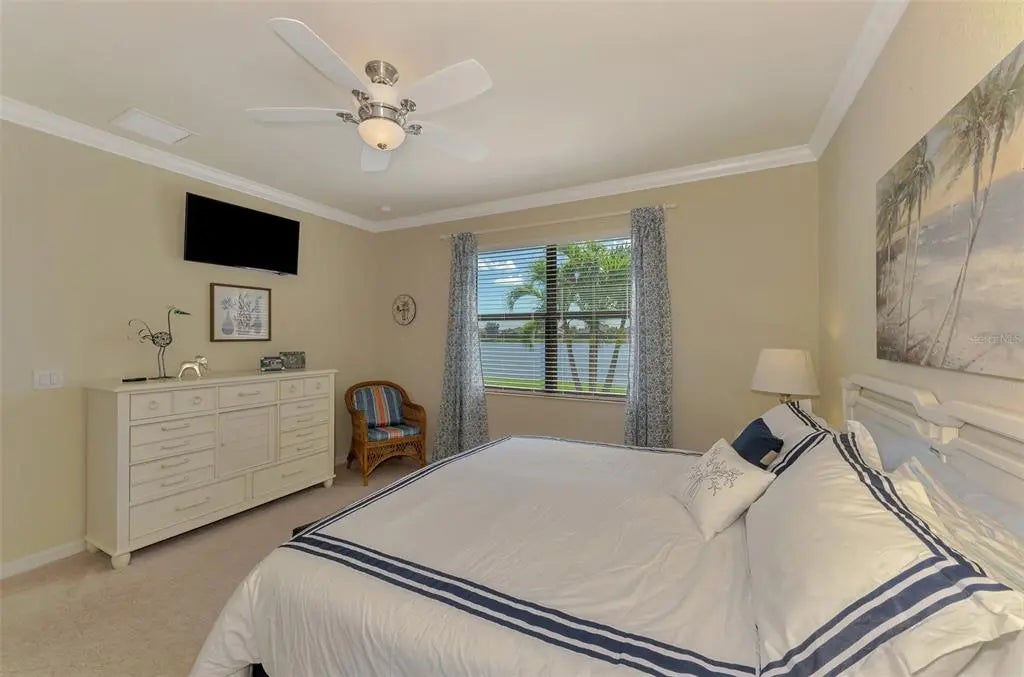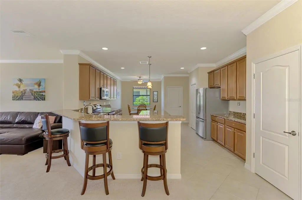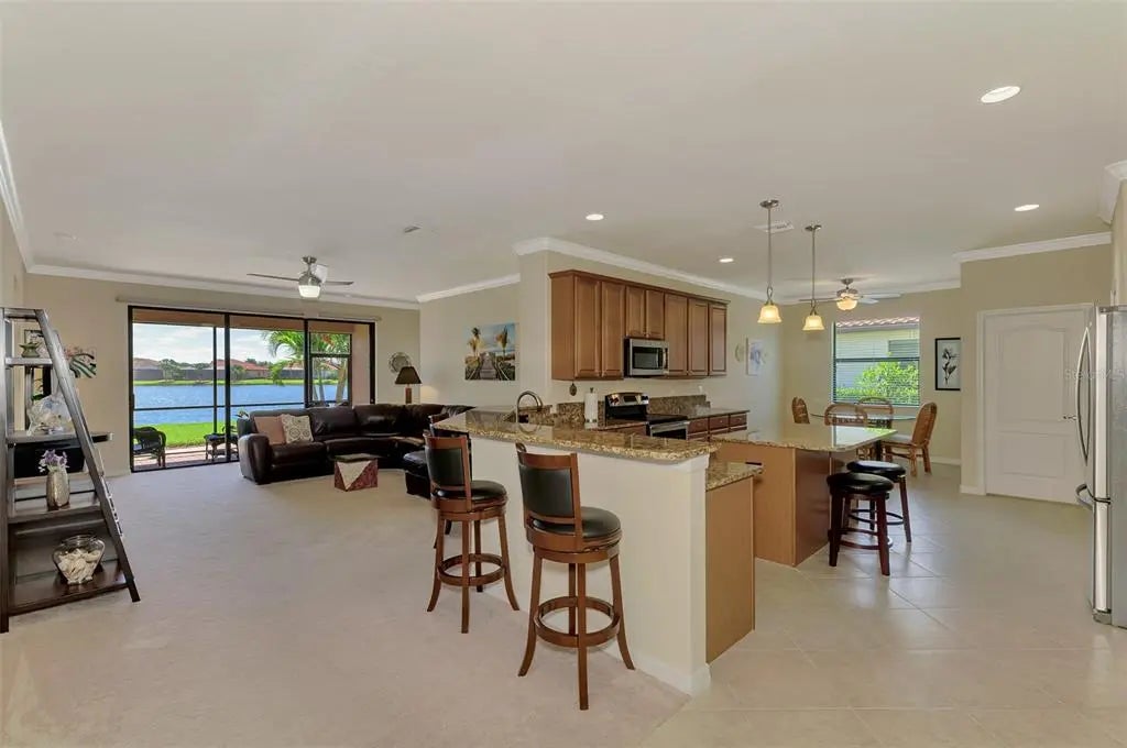 Priced to sell! Are you searching for incredible value? You’ll find it in this pristine 4-bedroom, 3-bath home located in the sought-after gated community of Gran Paradiso. Boasting 2,254 square feet of thoughtfully designed living space, a serene water view, and a spacious 3-car garage, this home has it all. From the moment you step inside, you’ll notice the meticulous care and attention to detail throughout. Neutral tones and an open floor plan create a welcoming, airy feel. The layout includes a private guest suite with a full bath, perfect for visitors. Two additional bedrooms share a second full bath featuring dual sinks, offering comfort and convenience. The primary suite is a true retreat, with double windows that showcase the lake view and fill the space with natural light. The ensuite bath includes a double vanity, soaking tub, walk-in shower, linen closet, and spacious walk-in closet—you’ll feel like royalty here. At the heart of the home is an immense kitchen, complete with granite countertops, center island, ample cabinetry, and a cozy dining nook. Additional features include a closet pantry, breakfast bar, and a separate laundry room for ultimate functionality. Across from the kitchen, the formal dining room is ideal for hosting family dinners or entertaining guests. The great room offers plenty of space for large furniture and gatherings, and triple sliding doors lead to the covered lanai—a perfect place to relax with a book or beverage while enjoying long views of the community’s largest lake. This one-owner, non-smoking, pet-free home includes recent updates such as a new HVAC system (within the last 6 months), fresh exterior paint, and a screened front entry—all adding to the move-in-ready appeal. Gran Paradiso offers resort-style living, with amenities that include a full-time activity director, zero-entry pool, tennis and pickleball courts, basketball, sauna, hot tub, playground, clubhouse, miles of walking trails, and countless social events to connect with neighbors. Located just minutes from Wellen Park, the Atlanta Braves Stadium, Downtown Wellen, Gulf beaches, shopping, and fine dining, this home is the ideal combination of comfort, luxury, and lifestyle. Don’t miss your chance to own a slice of paradise—schedule your private showing today!