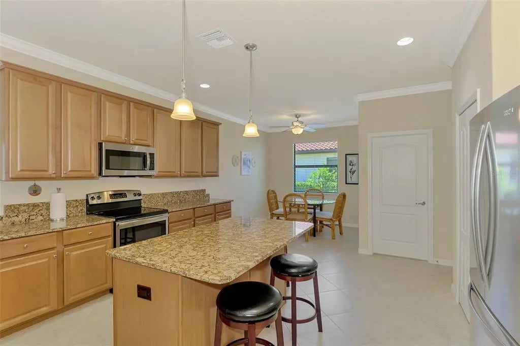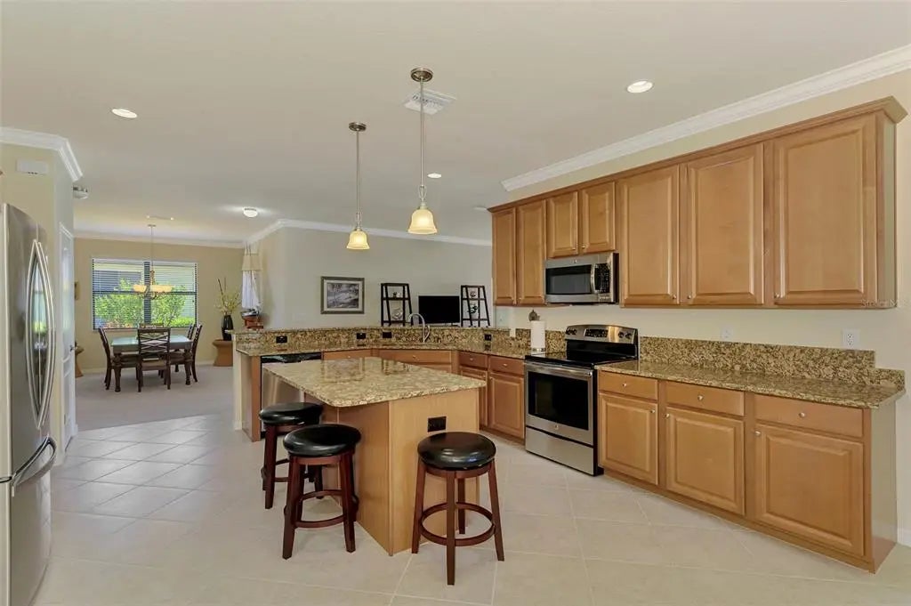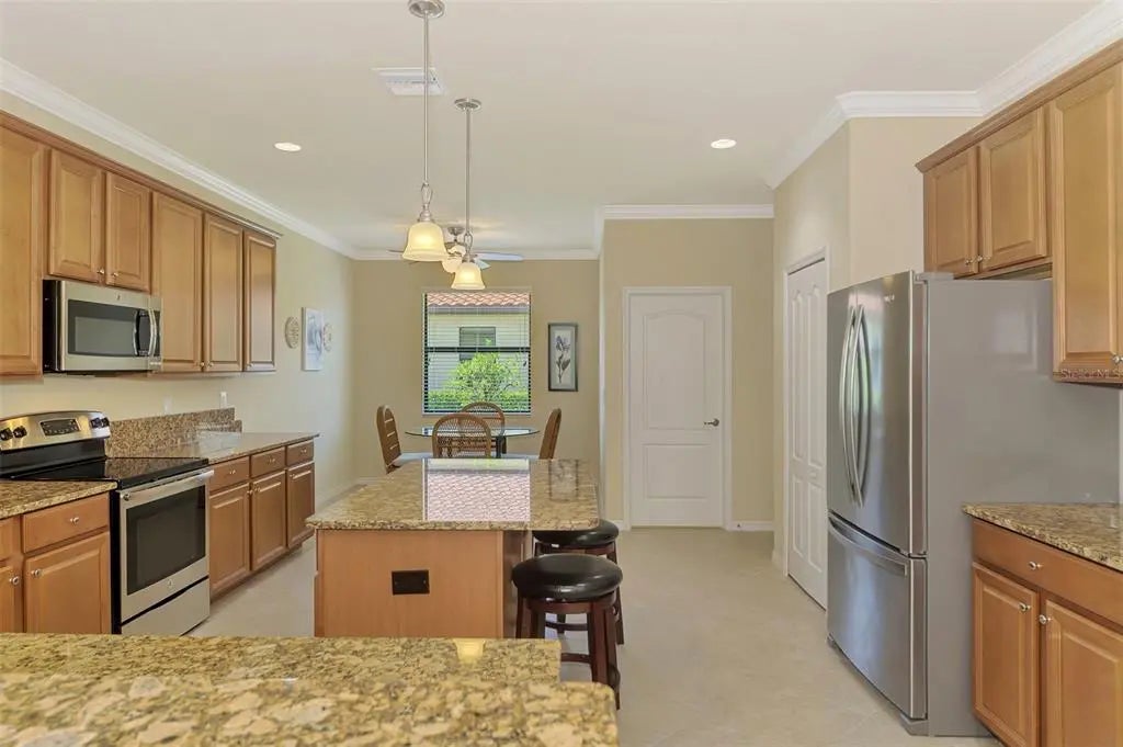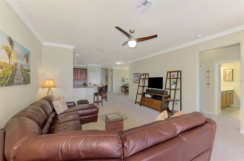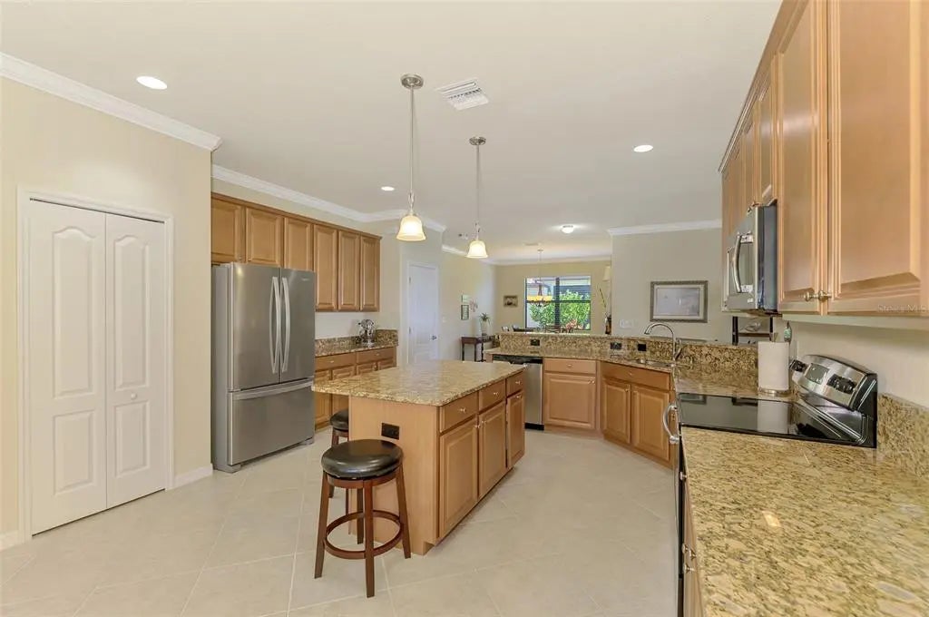 Priced to sell! Are you searching for incredible value? You’ll find it in this pristine 4-bedroom, 3-bath home located in the sought-after gated community of Gran Paradiso. Boasting 2,254 square feet of thoughtfully designed living space, a serene water view, and a spacious 3-car garage, this home has it all. From the moment you step inside, you’ll notice the meticulous care and attention to detail throughout. Neutral tones and an open floor plan create a welcoming, airy feel. The layout includes a private guest suite with a full bath, perfect for visitors. Two additional bedrooms share a second full bath featuring dual sinks, offering comfort and convenience. The primary suite is a true retreat, with double windows that showcase the lake view and fill the space with natural light. The ensuite bath includes a double vanity, soaking tub, walk-in shower, linen closet, and spacious walk-in closet—you’ll feel like royalty here. At the heart of the home is an immense kitchen, complete with granite countertops, center island, ample cabinetry, and a cozy dining nook. Additional features include a closet pantry, breakfast bar, and a separate laundry room for ultimate functionality. Across from the kitchen, the formal dining room is ideal for hosting family dinners or entertaining guests. The great room offers plenty of space for large furniture and gatherings, and triple sliding doors lead to the covered lanai—a perfect place to relax with a book or beverage while enjoying long views of the community’s largest lake. This one-owner, non-smoking, pet-free home includes recent updates such as a new HVAC system (within the last 6 months), fresh exterior paint, and a screened front entry—all adding to the move-in-ready appeal. Gran Paradiso offers resort-style living, with amenities that include a full-time activity director, zero-entry pool, tennis and pickleball courts, basketball, sauna, hot tub, playground, clubhouse, miles of walking trails, and countless social events to connect with neighbors. Located just minutes from Wellen Park, the Atlanta Braves Stadium, Downtown Wellen, Gulf beaches, shopping, and fine dining, this home is the ideal combination of comfort, luxury, and lifestyle. Don’t miss your chance to own a slice of paradise—schedule your private showing today!