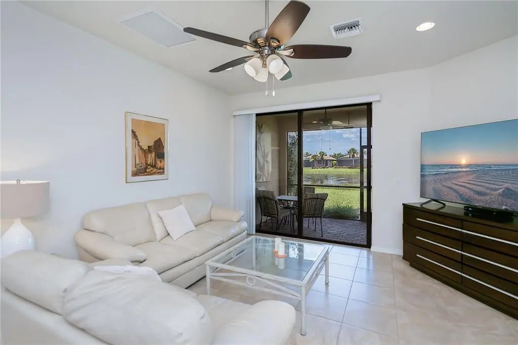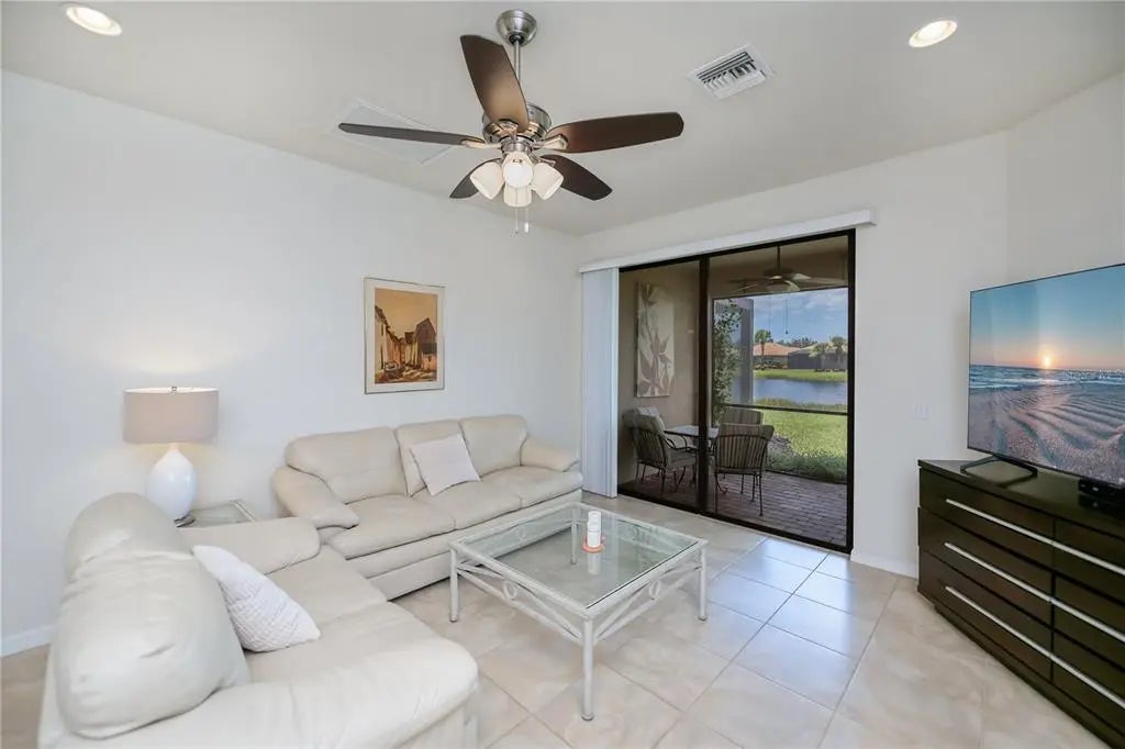 MOTIVATED SELLERS!!!! Bring All Offers!!! THIS BEAUTIFUL VILLA COMES WITH A FREE GOLF CART!!!!! Welcome to your dream retreat in the heart of IslandWalk! This beautifully maintained 2-bedroom, 2-bathroom villa with a versatile flex room offers the perfect blend of comfort, style, and convenience. Just steps away from the vibrant activity center and sparkling community pools, this home is ideally situated for enjoying all the amenities IslandWalk has to offer. Inside, you'll find elegant tile flooring throughout and light cabinetry that enhances the bright, airy feel of the space. The open-concept layout is perfect for entertaining or relaxing, and the flex room provides endless possibilities—home office, den, or guest space. Step outside to your private lanai and take in the serene water view, a perfect backdrop for morning coffee or evening sunsets. Whether you're looking for a full-time residence or a seasonal escape, this villa offers the best of Florida living in a resort-style community.Fantastic/Great /AMENITIES. 12 Lighted Pickelball Courts, 8 Har-Tru Lighted Tennis Courts, 3 Swimming Pools including separate Lap pool. State of the Atr Fitness Centers, 4 Lighted Bocce Courts, 2 Billiards Pool Tables, Table Tennis and more!!!