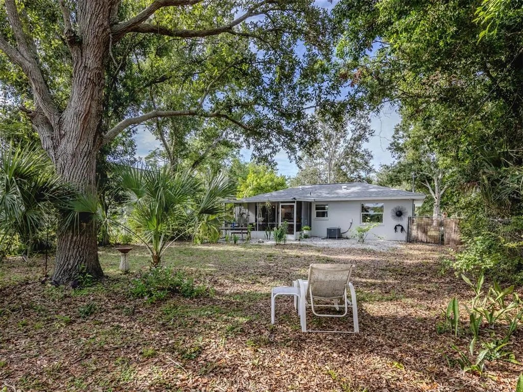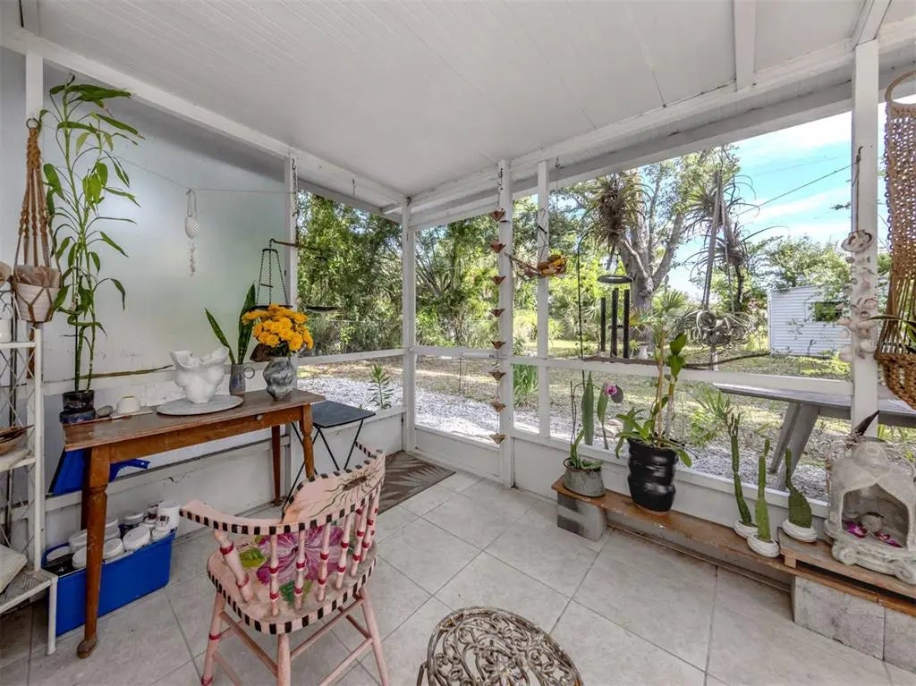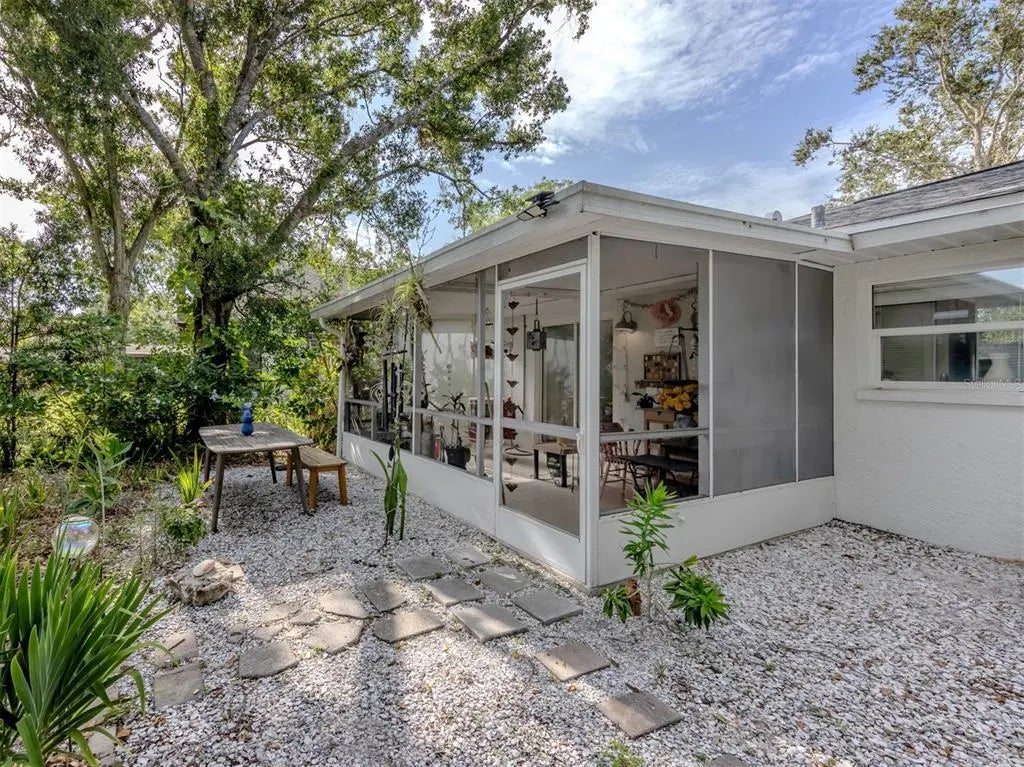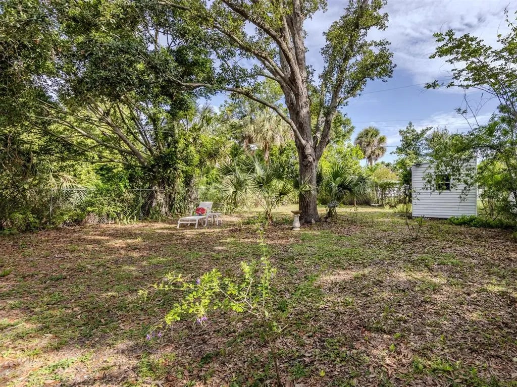 Welcome to this beautifully renovated cottage in the heart of the Edgewood Historic District of Venice. This charming home offers a blend of character, comfort and modern updates, including a new roof (2024), an updated kitchen and bath and a spacious, fully fenced backyard with a large storage shed. Surrounded by mature trees and lush landscaping, this property offers a peaceful retreat just one mile from historic downtown Venice Island and two miles from Venice Beach. A lovely park sits directly across the street, enhancing the serene atmosphere of this quaint neighborhood. Inside, the home features two well-sized bedrooms, one full bath and a versatile screened lanai that offers additional living space, ideal for a studio, home office or relaxing sunroom. The large light-colored tile flooring, large windows and minimalistic décor create a bright, airy and calming environment. The updated kitchen is equipped with stainless steel appliances and offers a delightful view of the backyard garden, filled with blooming flowers and mature greenery. Whether enjoying morning coffee in the lanai or hosting friends in the private backyard, this home invites you to unwind and enjoy the Florida lifestyle. Ideal for a small family, an artist or anyone seeking a peaceful, well-located home, this residence offers timeless charm and modern convenience. See why this inspiring property feels like a hidden gem, you may just fall in love.