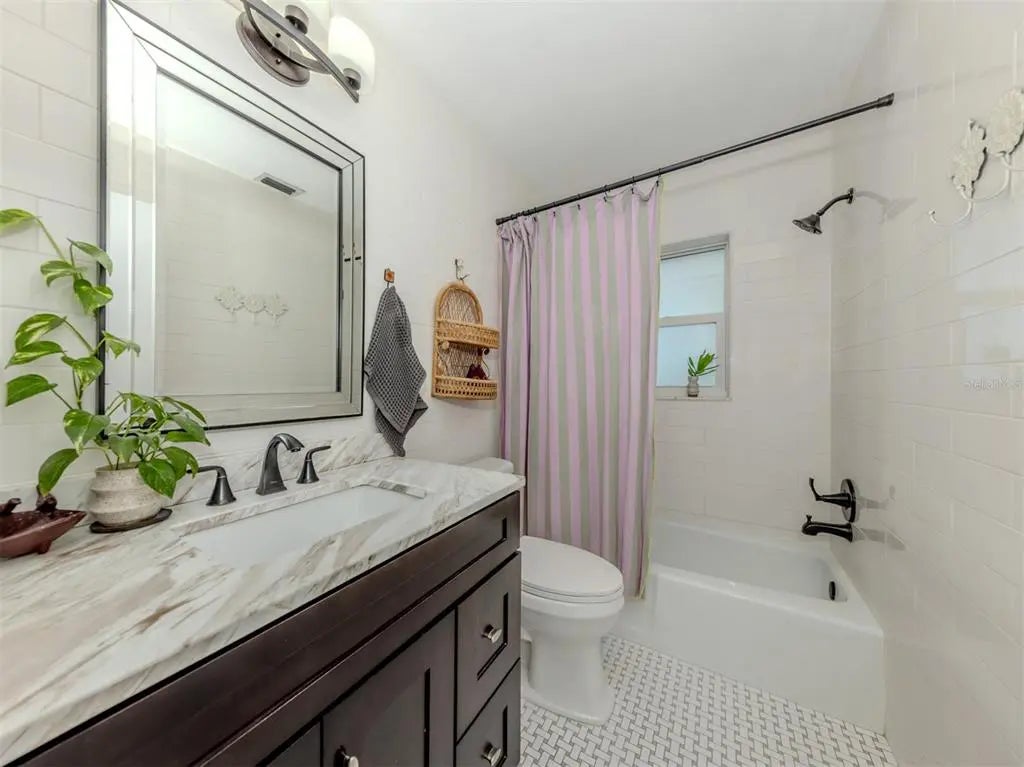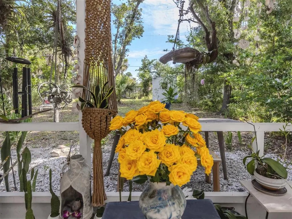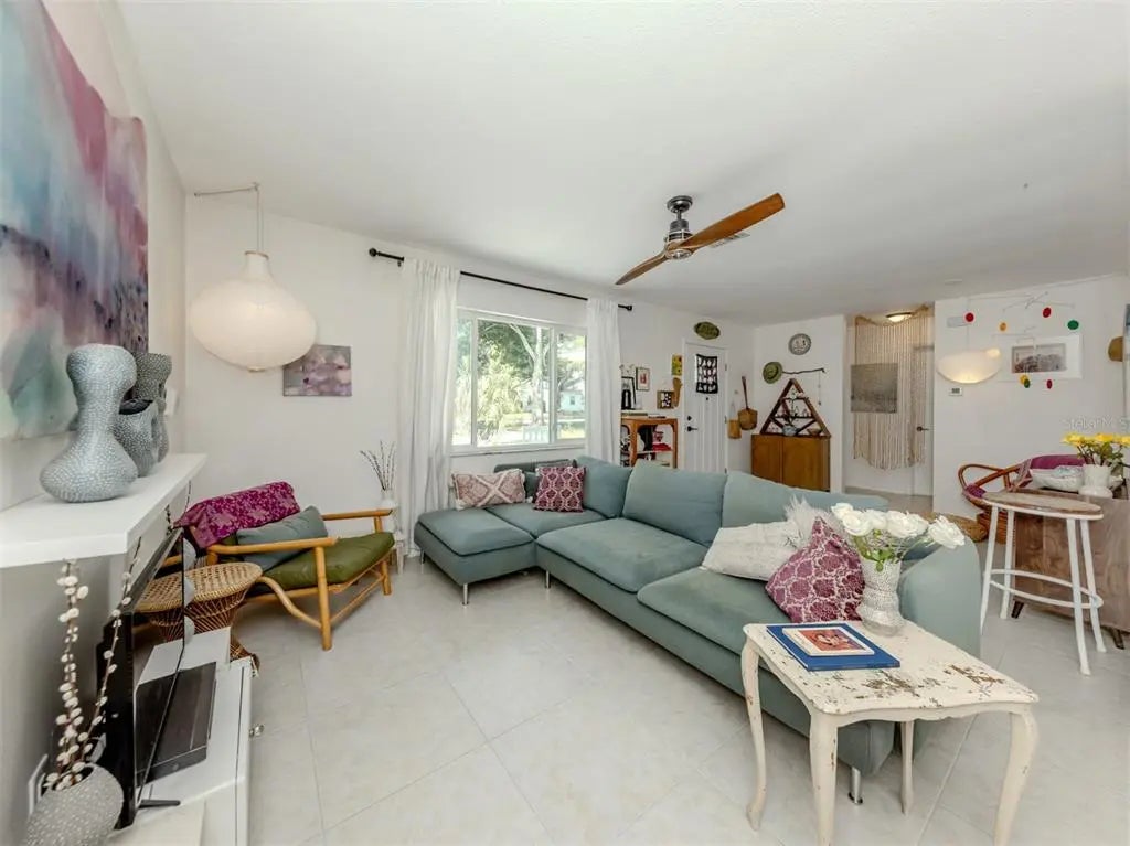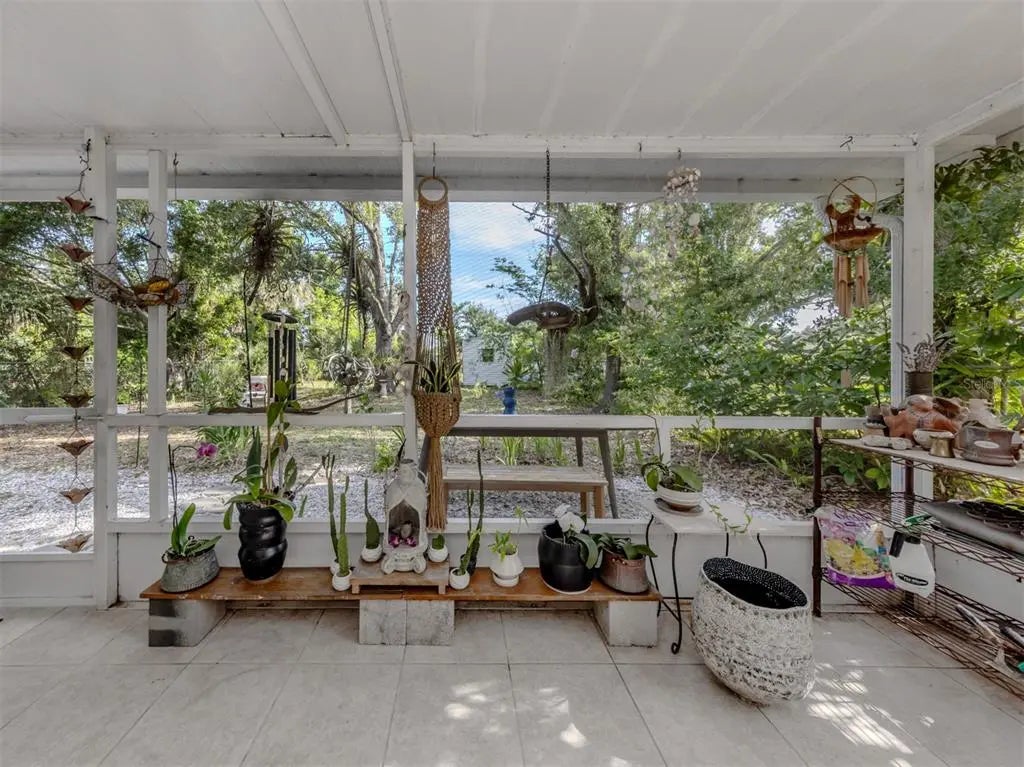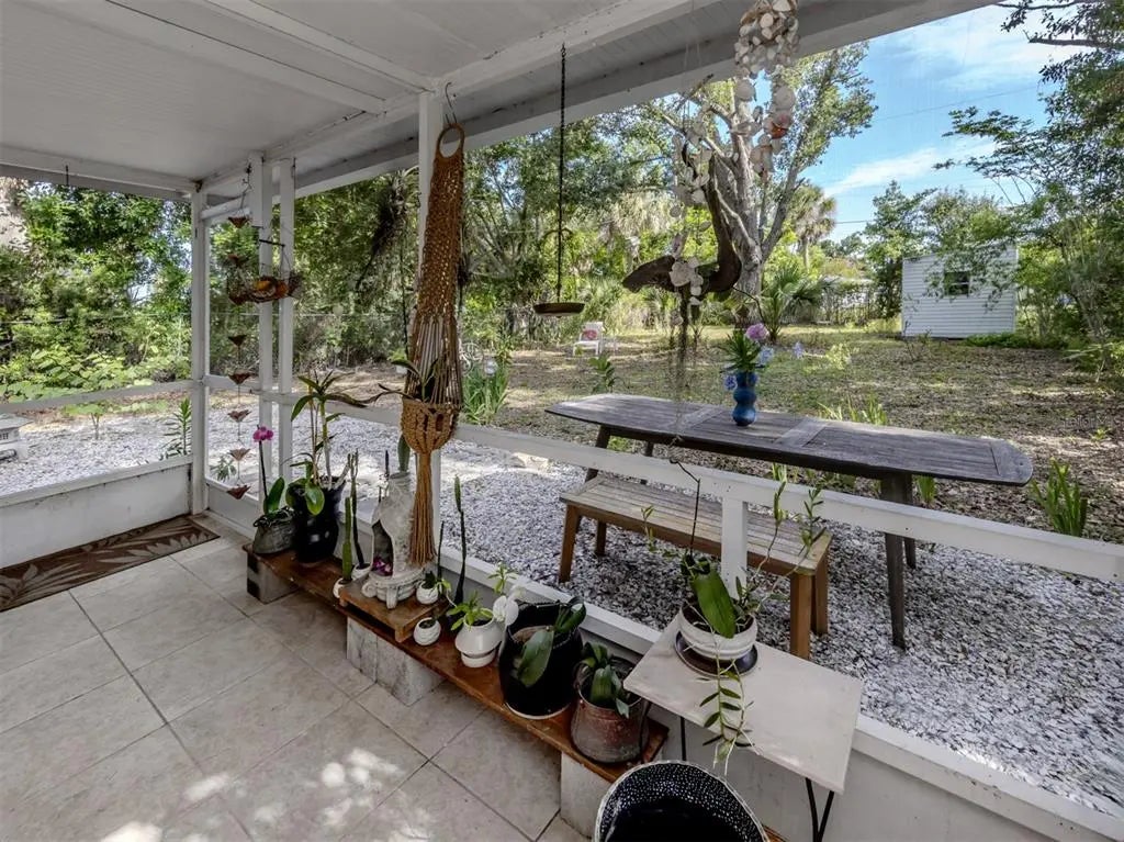 Welcome to this beautifully renovated cottage in the heart of the Edgewood Historic District of Venice. This charming home offers a blend of character, comfort and modern updates, including a new roof (2024), an updated kitchen and bath and a spacious, fully fenced backyard with a large storage shed. Surrounded by mature trees and lush landscaping, this property offers a peaceful retreat just one mile from historic downtown Venice Island and two miles from Venice Beach. A lovely park sits directly across the street, enhancing the serene atmosphere of this quaint neighborhood. Inside, the home features two well-sized bedrooms, one full bath and a versatile screened lanai that offers additional living space, ideal for a studio, home office or relaxing sunroom. The large light-colored tile flooring, large windows and minimalistic décor create a bright, airy and calming environment. The updated kitchen is equipped with stainless steel appliances and offers a delightful view of the backyard garden, filled with blooming flowers and mature greenery. Whether enjoying morning coffee in the lanai or hosting friends in the private backyard, this home invites you to unwind and enjoy the Florida lifestyle. Ideal for a small family, an artist or anyone seeking a peaceful, well-located home, this residence offers timeless charm and modern convenience. See why this inspiring property feels like a hidden gem, you may just fall in love.