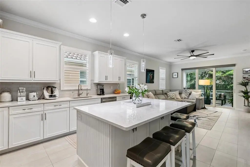 Welcome to your dream villa in the desirable Cassata Place community—just 3 miles from charming Downtown Venice and the beautiful shores of Venice Beach! This 3-years-new home offers modern comfort, quality construction and elegant design. Featuring full impact doors and windows, a tile roof, and gutters, it’s built with durability and peace of mind in mind. The open floor plan flows effortlessly from room to room, with sliding doors leading out to a covered and screened lanai—perfect for relaxing or entertaining. The spacious kitchen includes a pantry and features stainless steel appliances, stone countertops and white cabinets. The primary suite features two walk-in closets and a private bath retreat. A bonus room provides the flexibility for a home office, den or hobby space. Additional highlights include a laundry room with closet space, ceiling fans in all bedrooms and the living room and plantation shutters. Finally, the 2-car garage features epoxy flooring as well as a utility sink and the driveway is complete with pavers. Cassata Place residents enjoy access to a heated community pool that’s 5 feet deep—ideal for a refreshing dip year-round. Don’t miss this opportunity to live just minutes from world-class beaches, shopping, dining and everything Venice has to offer!