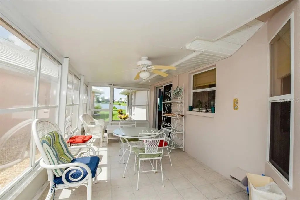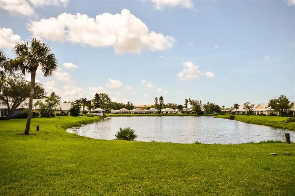 Relax and enjoy the beautiful southern lake views from this freshly painted 2 Bedroom plus an under air Sunroom Maintenance free Villa located in Harrington Lake At The Plantation Golf and Country Club. A Perfect Winter Retreat or year round Home. Features include a Pavered Driveway, sidewalk and courtyard; beautiful Kitchen complete with Custom Wood White Raised Panel Cabinets, Granite Counters and SS Appliances; 2 Bathrooms with walk in Showers; no carpet: luxury Vinyl, porcelain tile and new flooring in main bedroom; plus a screened side porch off the Kitchen and Dining Room. New Roof 2023. Harrington Lake Residents enjoy a Clubhouse and Community Pool very Active with Social Gatherings. If Golf, Tennis, Pickleball or Fitness are your passions then membership is available at The Plantation Golf and Country Club as well. Now is your chance to say Goodbye to Cold Winters and live the Good Life in beautiful Venice FL!