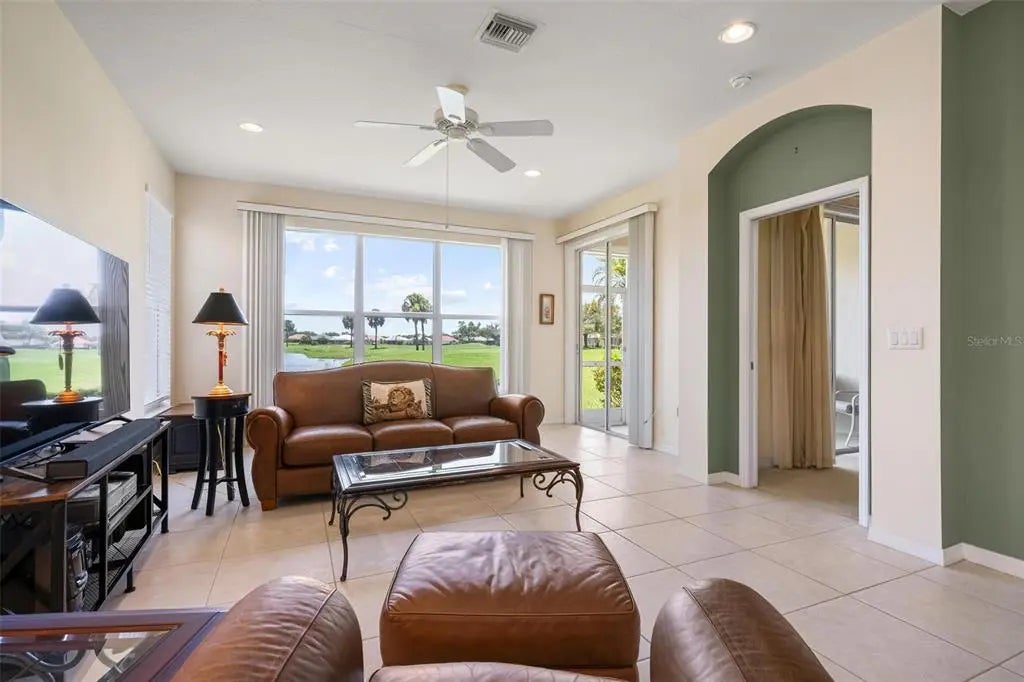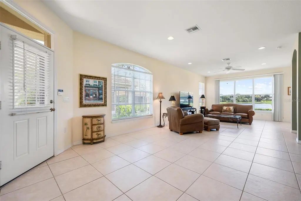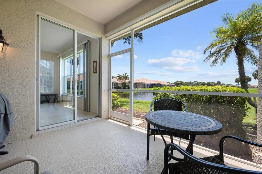New September 19, 2025 HVAC system. Enjoy breathtaking sunsets, sparkling lake vistas, and golf course views from this beautifully maintained 3-bedroom, 2-bath paired villa with 2-car garage and 1,660 square feet of comfortable living space. Tile floors flow through the main living areas, complemented by hardwood cabinetry, granite countertops, and volume/tray ceilings. Buttressed by hurricane shutters. Furniture and all furnishings are available. Just steps away, residents enjoy the private heated pool exclusive to the Villas community. This home is offered fully furnished, just bring your toothbrush! Pelican Pointe offers exceptional value with low HOA fees that include exterior maintenance, a spacious clubhouse with dining room, grill room, banquet facilities, fitness center, heated resort-style pool, tennis and pickleball courts, and an active women's association featuring over 45 social groups and clubs. Additional perks include a 24/7 staffed guard gate, high-speed internet, and expanded cable TV. Golfers can choose to join the 27-hole semi-private course or play on a pay-as-you-go basis. Ideally located just minutes from Historic Venice Island, the vibrant new Wellen Park, and greater Sarasota County, you'll have easy access to beaches, boutique shopping, fine and casual dining, bike trails, fishing, live theater, performing arts, and top-rated medical facilities.