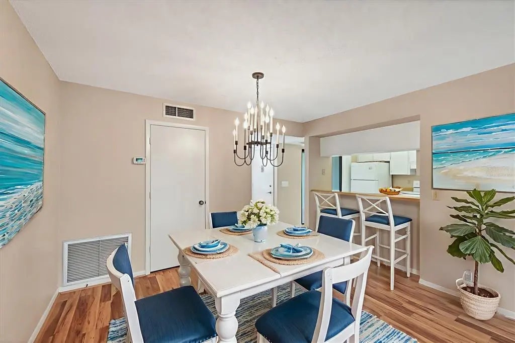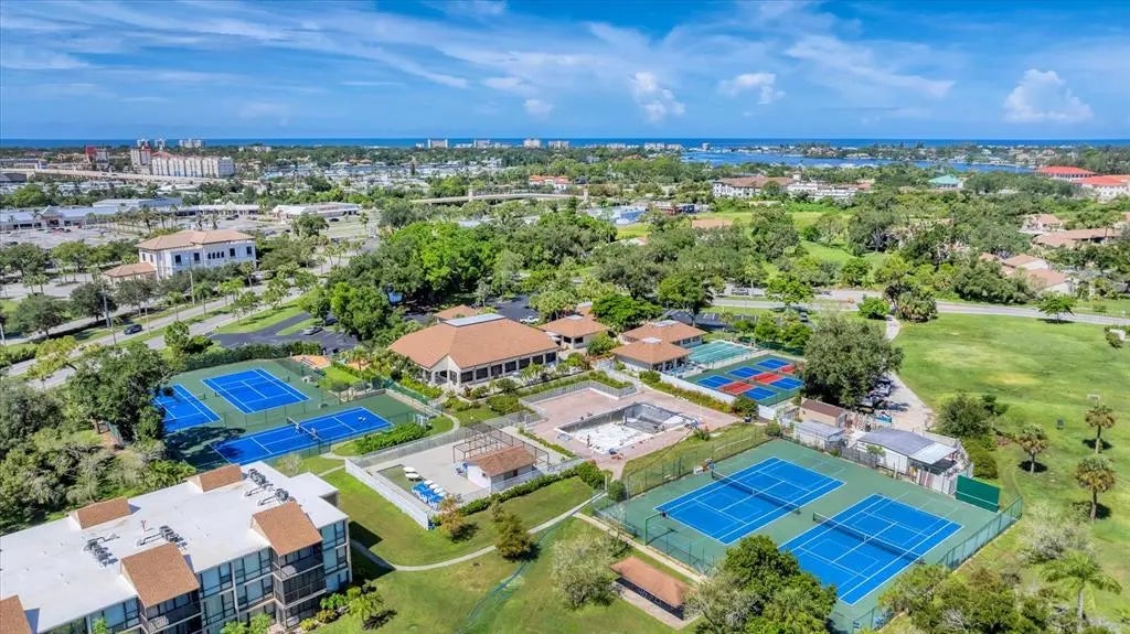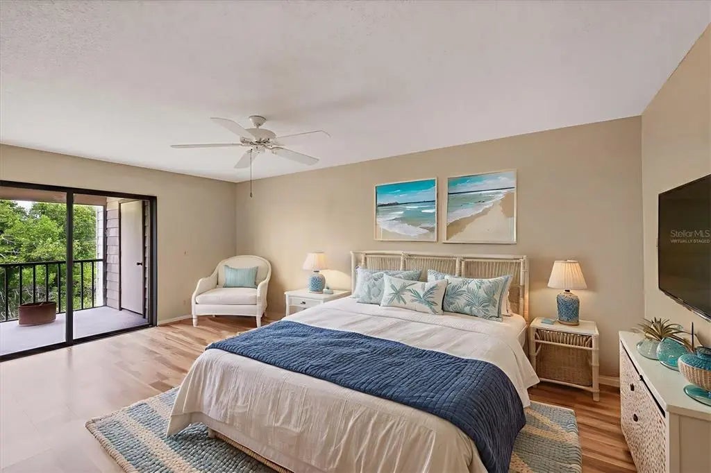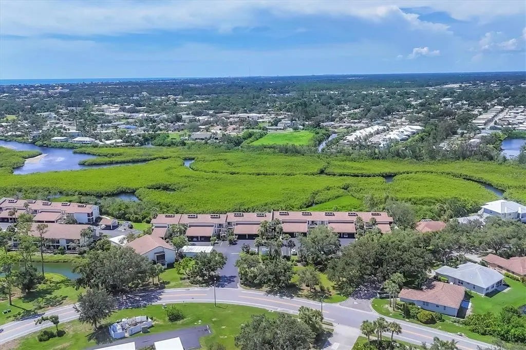 One or more photo(s) has been virtually staged. Rarely available and highly sought-after resort-style condo in the heart of Venice at Bird Bay Village! Welcome to your private retreat in this spacious first-floor split-floor plan condo offering over 1500 sqft of comfortable living space including the expansive screened lanai and private front patio. This 2-bedroom, 2-bath haven provides privacy and function with beautifully remodeled bathrooms and stunning wood-look laminate floors throughout with tile in the kitchen and bathrooms. Enjoy breathtaking sunsets and tranquil views of Roberts Bay with mature trees and mangroves from your expansive lanai. Both bedrooms and living room feature glass sliders that lead to the lanai that looks and feels like you're in a tree house! The back and front sliding doors all have built-in hurricane shutters for your peace of mind. The spacious and bright kitchen opens to a charming patio through sliding glass doors—perfect for morning coffee or evening relaxation. Nestled in the peaceful community of Bird Bay Village, you'll enjoy access to 3 community pools, a clubhouse, tennis and pickle ball courts, fitness center, a library, shuffleboard and bocce courts, and your private carport and storage shed. Close to downtown Venice full of wonderful restaurants and unique shops, boutiques, galleries, our beloved Venice theater for the performing arts, endless entertainment possibilities, and our world-famous Gulf Coast Beaches. Whether you're looking for a peaceful primary residence, a snowbird escape, or an investor-friendly property with strong rental potential, this is your opportunity to own a move-in ready gem in a premier location with access to the Legacy Trail, Venetian Waterway Park bike trail and Sarasota Memorial Hospital. The HOA fee covers Grounds Maintenance, Exterior Maintenance, Manager, Pest Control, Cable TV, Water, Trash, Sewer, Common Area Taxes, Community Pool, Pool Maintenance, Escrow Reserves Fund, and Recreational Facilities. This move-in ready gem offers the perfect blend of serenity, convenience, and Florida lifestyle. It's truly a haven that you'll never want to leave!