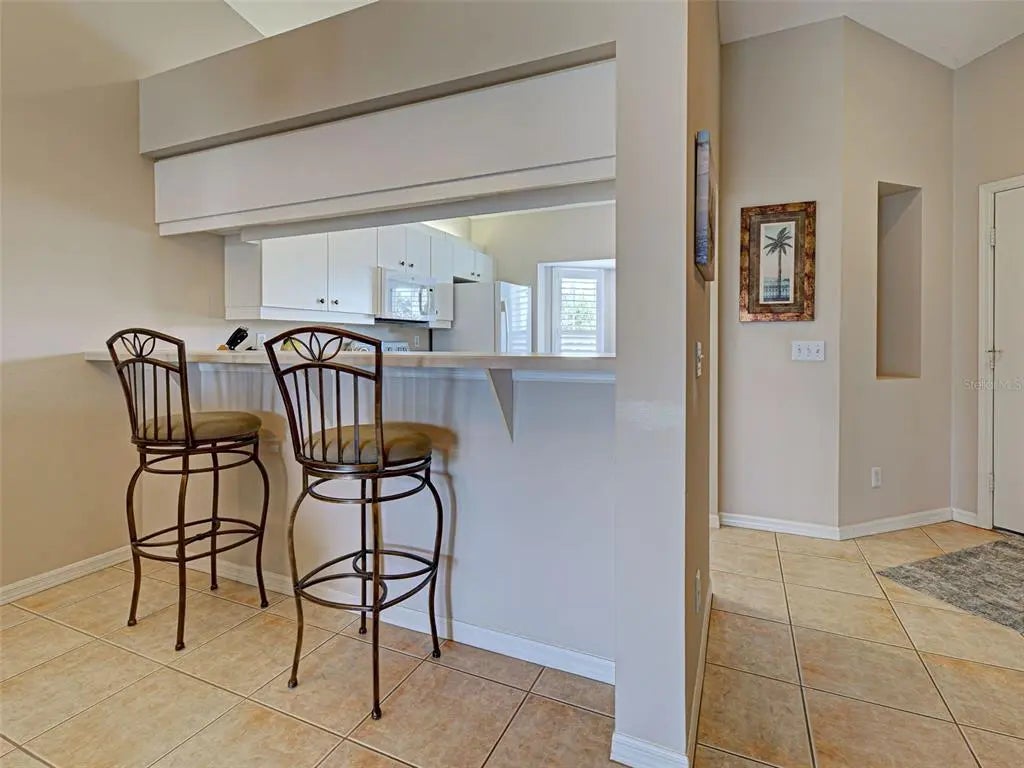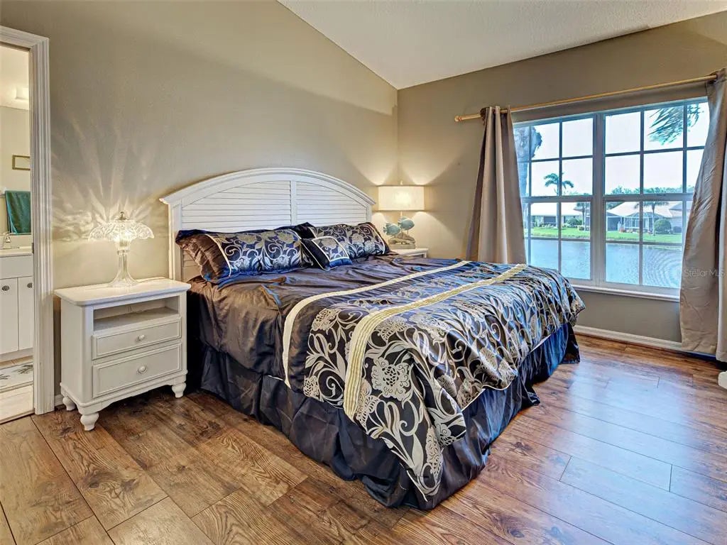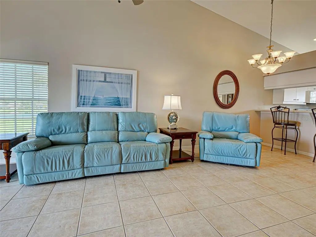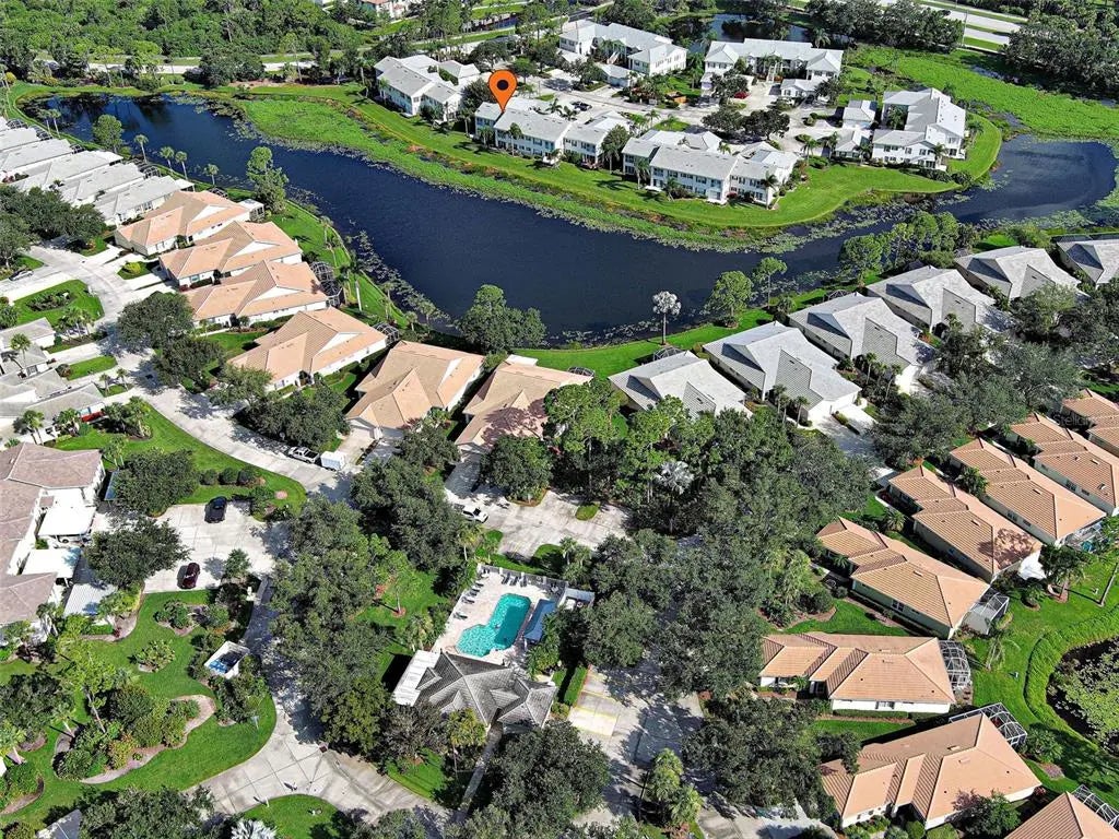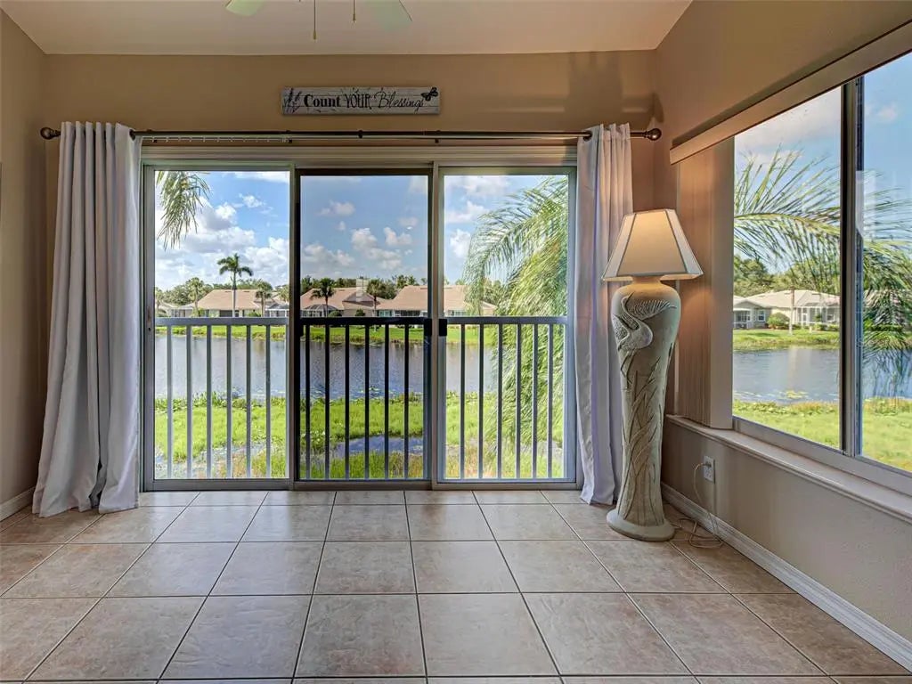 GORGEOUS LAKEFRONT, FURNISHED 2 BEDROOM CONDO AWAITS YOU! This beautiful home is in the sought-after Gated & Deed Restricted Community of St. Andrews Park in Plantation Golf and Country Club. Perfect location, great shopping & restaurants in historic downtown Venice on the Gulf, absolutely incredible. You enter the condo through the screened entrance that opens into the foyer area. Open views of the living room, kitchen and dining area, with cathedral ceilings. A great open space for relaxing or entertaining. The kitchen has a breakfast bar and spacious counter for the chef in the family. The large master bedroom with walk-in closets, new laminate flooring with ensuite master bathroom, double vanity sinks & spacious shower. The split, second bedroom and bath located in the front of the home perfect for privacy & guests. The living room is attached to the Florida Room that has screened sliders and large windows giving that wide open relaxing view of the lake. There is indoor laundry/ utility room with nice storage area. Adding to this perfect package is the 1 car garage, as well as an outside parking space. ROOF IS 3 YEARS OLD !! New air conditioner 2024. The landscaping is gorgeous & well maintained. Enjoy the heated pool walking distance away. There is access to three pools within the community. Community is pet friendly. Venice is a quaint coastal town filled with unique adventures, beaches, Venice Little Theater, a new Library, Venice Performing Arts await your enjoyment, not to mention just a few minutes' drive up north to the cultural Sarasota with Ringling Art Museum, Shelby Botanical Gardens and Mote Marine Aquarium. Great access to I-75 and three major airports. Outdoor recreation, golfing, boating, fishing, some of the best in the world. 10 minutes to gorgeous Gulf Beaches. Check out the optional memberships that are available at Plantation Golf & Country Club. The Atlanta Braves Stadium has year-round events and activities located at Wellen Park, a short drive, awesome restaurants, shopping and music in the square, for your enjoyment. There is something for everyone. Whether you seek a permanent residence, a vacation getaway, or a lucrative investment opportunity, this home embodies the essence of Florida living, promising a life filled with sun, leisure and serenity. Don’t miss your chance to own a piece of paradise. Come on down. Don’t wait …this condo will not be on the market long.