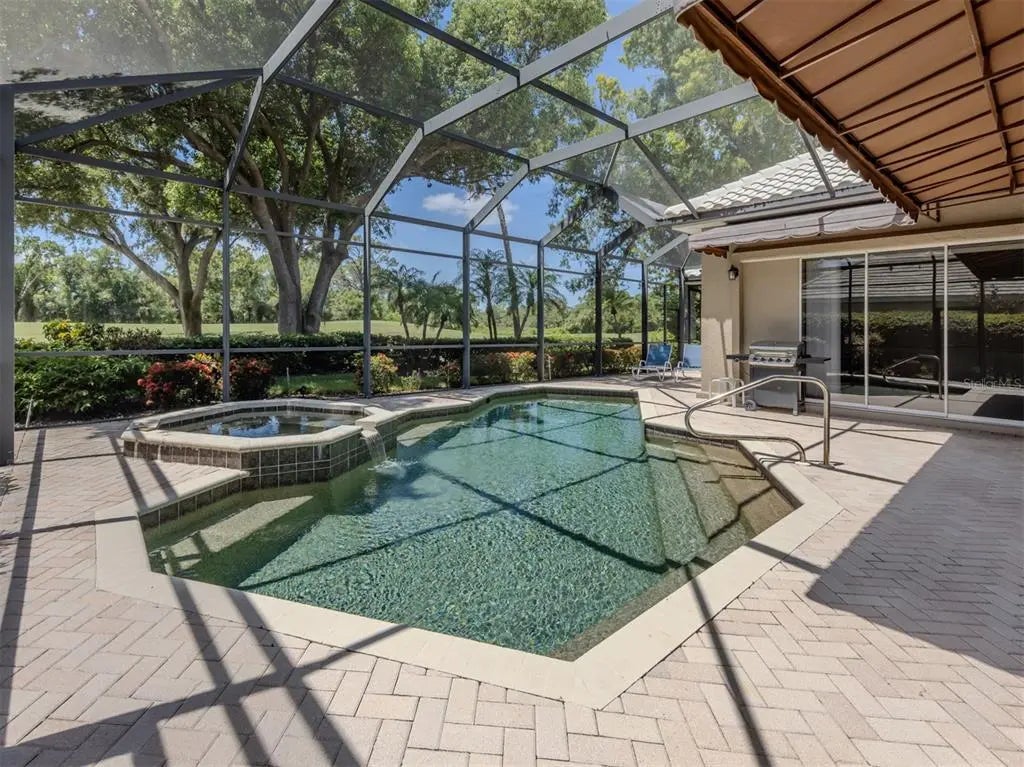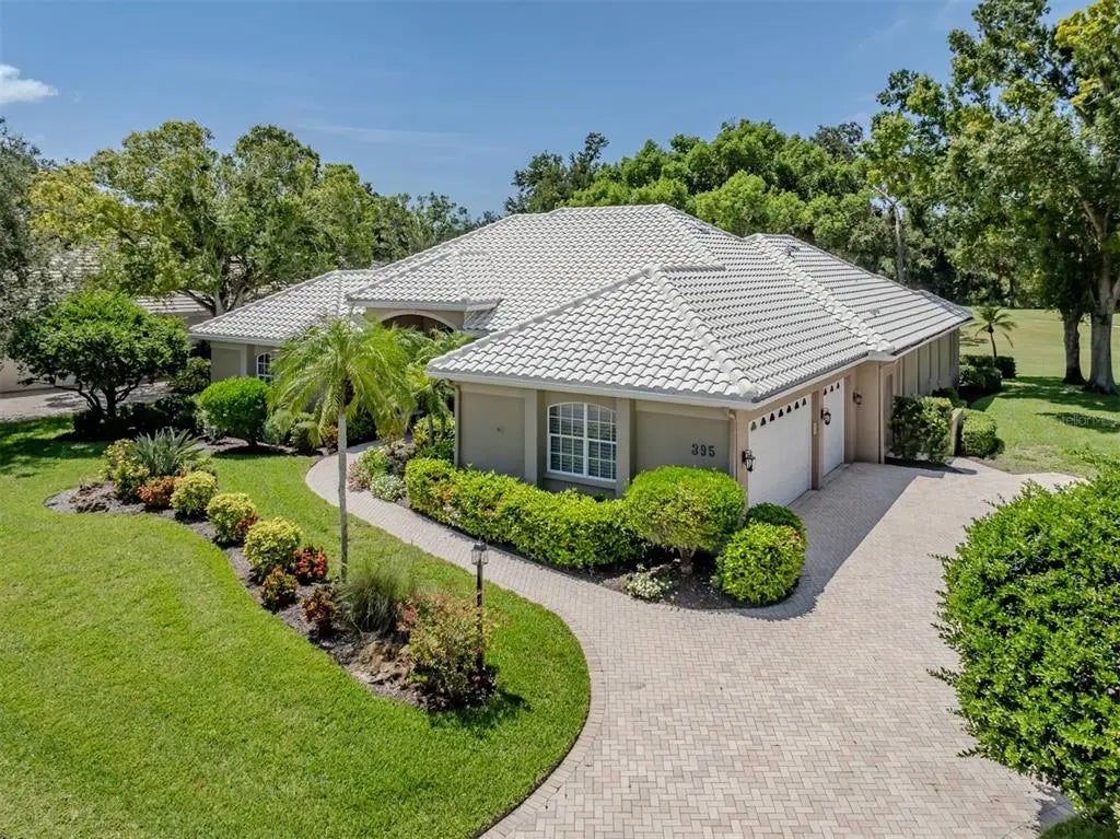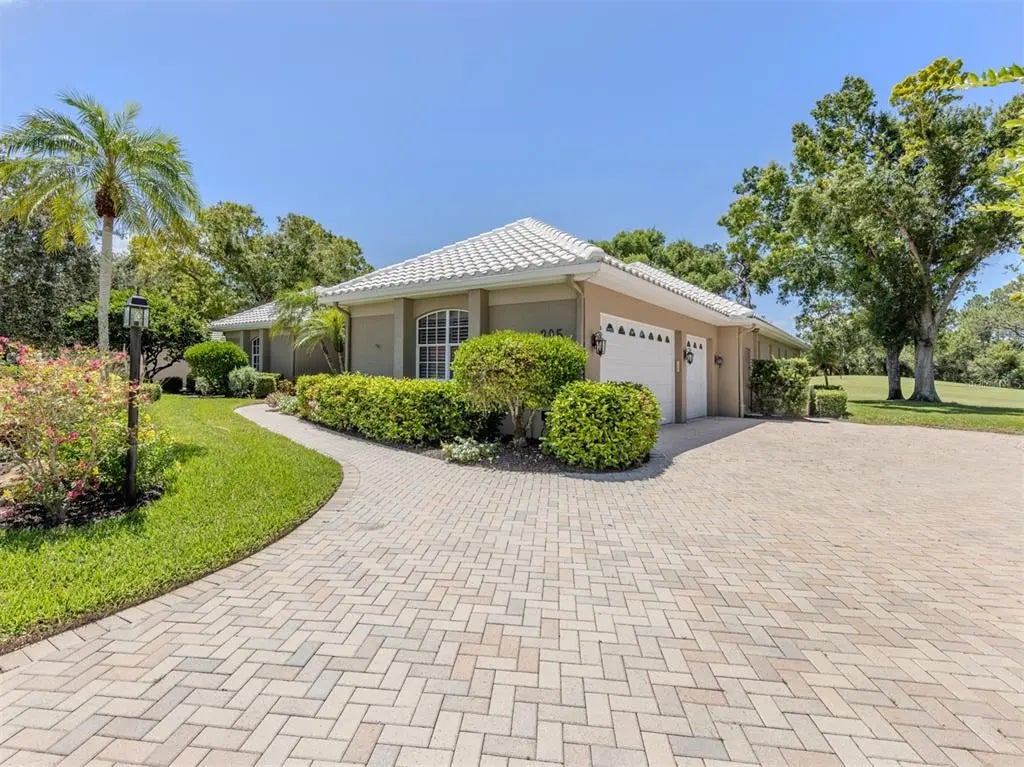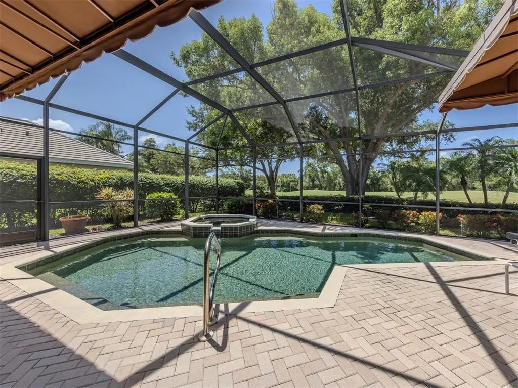 Stunning residence that's filled with natural light and thoughtful design in the prestigious, member-owned, gated community of The Venice Golf and Country Club. Curb appeal is exceptional with meticulously maintained landscaping, a side-entry three-car garage, and a generously sized paver driveway. Step through the refinished elegant leaded beveled glass doors into a bright and expansive open split floor plan. Soaring ceilings and organic bamboo flooring in the living room create a warm and inviting ambiance. At the heart of the home, the screened lanai with its heated pool and spa featuring a new pool and spa pump is positioned to capture serene views of the golf fairway and lush tropical preserve making it an ideal space for relaxing or entertaining. A chef's delight, the updated kitchen features wood cabinetry, a spacious breakfast bar, custom tile backsplash, and sleek satin-finish appliances. The adjacent family room centers around a striking fossil coral rock fireplace with a new propane system framed by tall beautiful, picturesque windows overlooking the fairway and the indigenous tropical preserve, filling the space with soft, natural light. Retreat to the luxurious primary suite that's accessed through double French doors and a decorative art-niche foyer. The en-suite bath features a Roman walk-in shower with custom tile inlay, a slipper soaking tub, dual quartz vanities with pendant lighting, a water closet, and three sizable closets for optimal storage. The second bedroom includes its bath and dual closets, while the third bedroom is suited for use as office or guest suite, complete with a private full bath and direct access to the pool and lanai. New HVAC system, newer roof, irrigation well replaced, interior painting and more. This home offers an exceptional blend of luxury, comfort and privacy. Discover the unparalleled lifestyle of The Venice Golf and Country Club where extraordinary living begins. Recently reimagined, the expanded Clubhouse features a spacious gathering bar, gourmet and commercial kitchens, and a cozy fire pit. The new state-of-the-art Wellness Center offers massage therapy, fitness classes, yoga, physical therapy, and personal training, providing a holistic approach to health and well-being. Beautifully renovated Ted McAnlis-designed 18-hole championship golf course. Residents also enjoy Har-Tru tennis courts, pickleball, bocce ball, and a Junior Olympic-sized pool and spa, balancing active living with relaxation. As a Geo-Certified Audubon Cooperative Sanctuary, VGCC embraces environmental stewardship and sustainability. With an A+ financial rating, the community is as solid as it is serene. Ideally just minutes from airports, shopping, dining, Interstate 75, cultural venues and Wellen Park. It's also a short drive to the charming Venice Island, where 14 miles of pristine beaches meet the sparkling Gulf Coast.