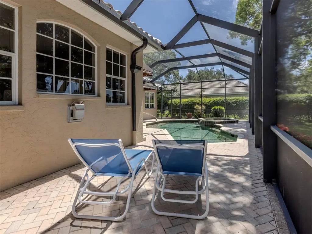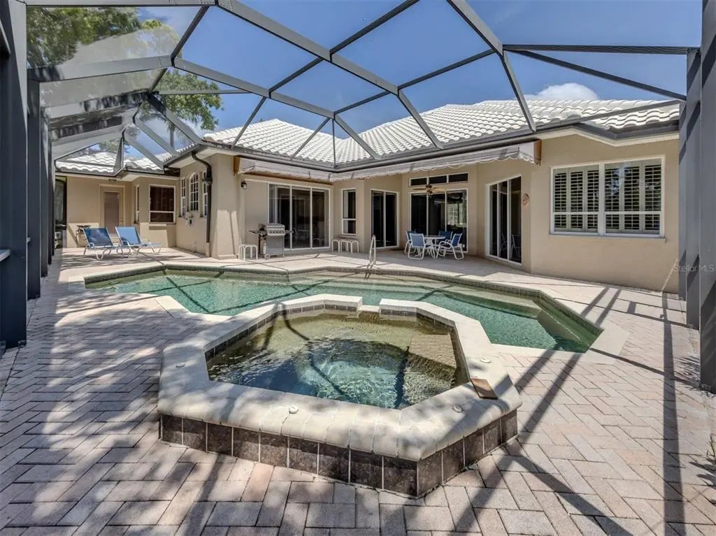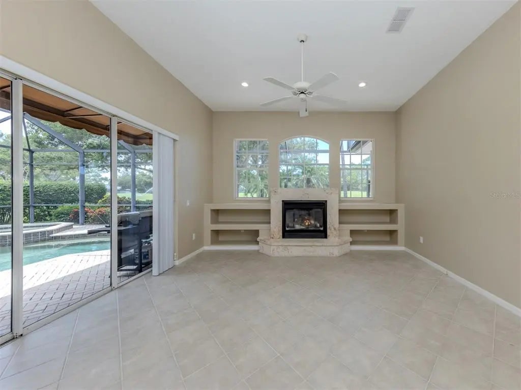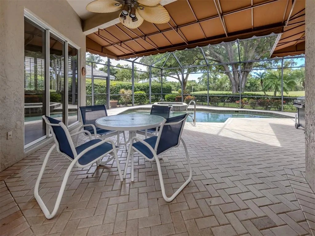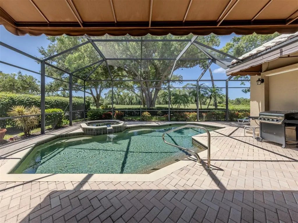 Stunning residence that's filled with natural light and thoughtful design in the prestigious, member-owned, gated community of The Venice Golf and Country Club. Curb appeal is exceptional with meticulously maintained landscaping, a side-entry three-car garage, and a generously sized paver driveway. Step through the refinished elegant leaded beveled glass doors into a bright and expansive open split floor plan. Soaring ceilings and organic bamboo flooring in the living room create a warm and inviting ambiance. At the heart of the home, the screened lanai with its heated pool and spa featuring a new pool and spa pump is positioned to capture serene views of the golf fairway and lush tropical preserve making it an ideal space for relaxing or entertaining. A chef's delight, the updated kitchen features wood cabinetry, a spacious breakfast bar, custom tile backsplash, and sleek satin-finish appliances. The adjacent family room centers around a striking fossil coral rock fireplace with a new propane system framed by tall beautiful, picturesque windows overlooking the fairway and the indigenous tropical preserve, filling the space with soft, natural light. Retreat to the luxurious primary suite that's accessed through double French doors and a decorative art-niche foyer. The en-suite bath features a Roman walk-in shower with custom tile inlay, a slipper soaking tub, dual quartz vanities with pendant lighting, a water closet, and three sizable closets for optimal storage. The second bedroom includes its bath and dual closets, while the third bedroom is suited for use as office or guest suite, complete with a private full bath and direct access to the pool and lanai. New HVAC system, newer roof, irrigation well replaced, interior painting and more. This home offers an exceptional blend of luxury, comfort and privacy. Discover the unparalleled lifestyle of The Venice Golf and Country Club where extraordinary living begins. Recently reimagined, the expanded Clubhouse features a spacious gathering bar, gourmet and commercial kitchens, and a cozy fire pit. The new state-of-the-art Wellness Center offers massage therapy, fitness classes, yoga, physical therapy, and personal training, providing a holistic approach to health and well-being. Beautifully renovated Ted McAnlis-designed 18-hole championship golf course. Residents also enjoy Har-Tru tennis courts, pickleball, bocce ball, and a Junior Olympic-sized pool and spa, balancing active living with relaxation. As a Geo-Certified Audubon Cooperative Sanctuary, VGCC embraces environmental stewardship and sustainability. With an A+ financial rating, the community is as solid as it is serene. Ideally just minutes from airports, shopping, dining, Interstate 75, cultural venues and Wellen Park. It's also a short drive to the charming Venice Island, where 14 miles of pristine beaches meet the sparkling Gulf Coast.