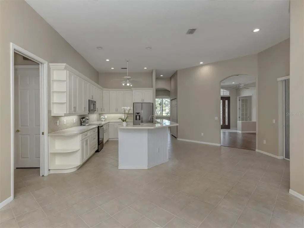 - Interior FeaturesCeiling Fan(s), Crown Molding, Eating Space In Kitchen, Open Floorplan, Solid Wood Cabinets, Split Bedroom, Walk-In Closet(s)
