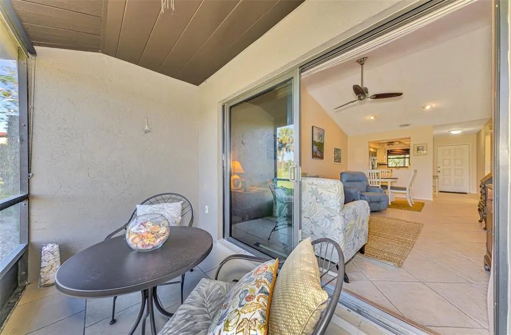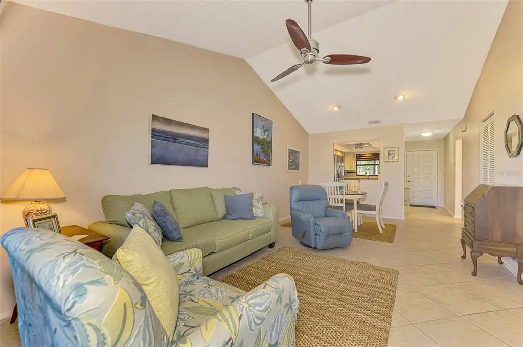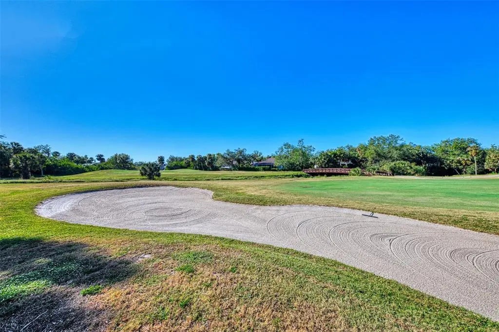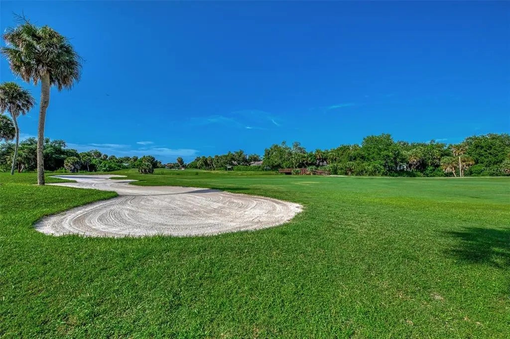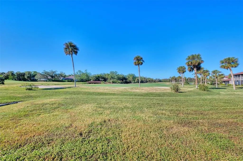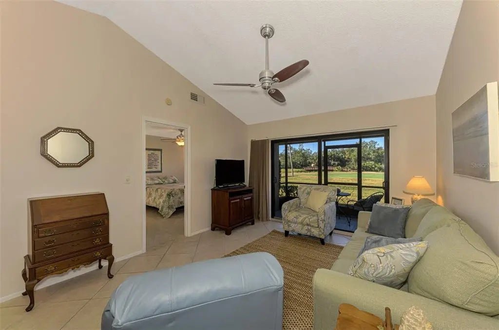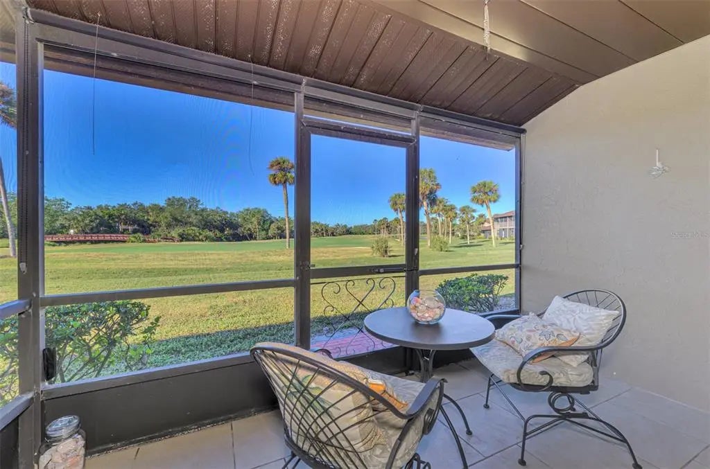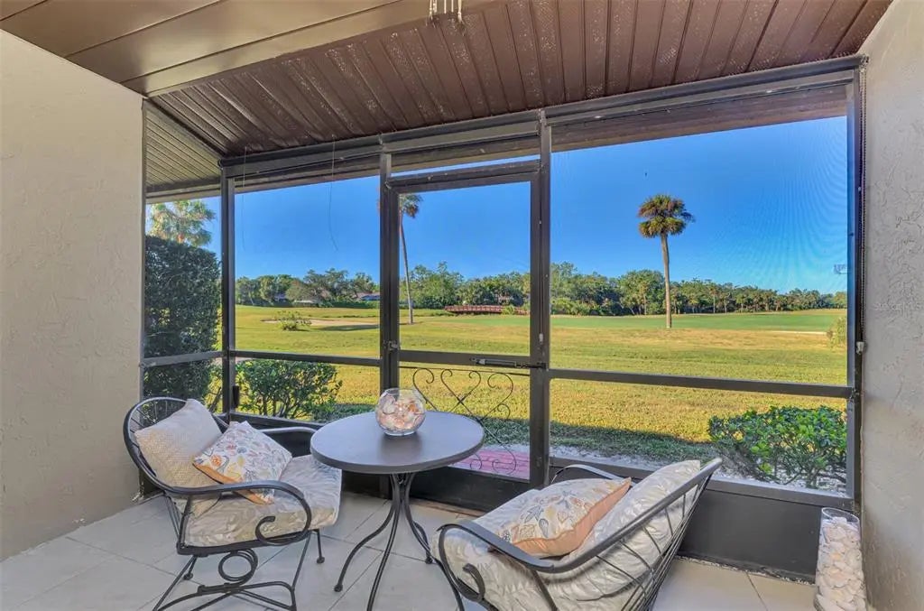 Under contract-accepting backup offers. END UNIT WITH NOONE LIVING ABOVE YOU OR BELOW YOU! Lives like a private home. BEST BUY! Highly sought after Capri Isles leads you to this amazing condo! This wonderful home features sweeping views of the 18th fairway of Capri Isles Golf Course. Walking up to the front door, you will notice the private fenced in courtyard area which adds to the appeal of this residence. Inside you will find an open floor plan, cathedral ceiling and a pleasant neutral decor. Tumbled ceramic tile floors through much of the condo laid on the diagonal and the bedrooms feature new carpets. An appealing kitchen with nice workspace on the granite counters, plenty of cabinet space and comes with appliances. Open living room features cathedral ceilings and flows with the dining room for easy entertaining. A real plus is the condo has PGT hurricane windows and slider! Off the living room, the slider leads out to the wonderful lanai to watch the golfers. The primary bedroom features a walk in closet, bathroom with a new double vanity. The secondary bedroom is also spacious. The second bath also features a new vanity! Washer and dryer inside the condo, good storage space with the private storage area. The reasonable condo fee includes water and cable! Par Four has social events if you wish to participate and a nice clubhouse and heated pool. The location is amazing with easy access to pristine beaches, renowned dining establishments, shopping centers and close to Sarasota Memorial. Whether you are an avid golfer, nature enthusiast or simply seeking a tranquil haven to call home, this condo will appeal to you!