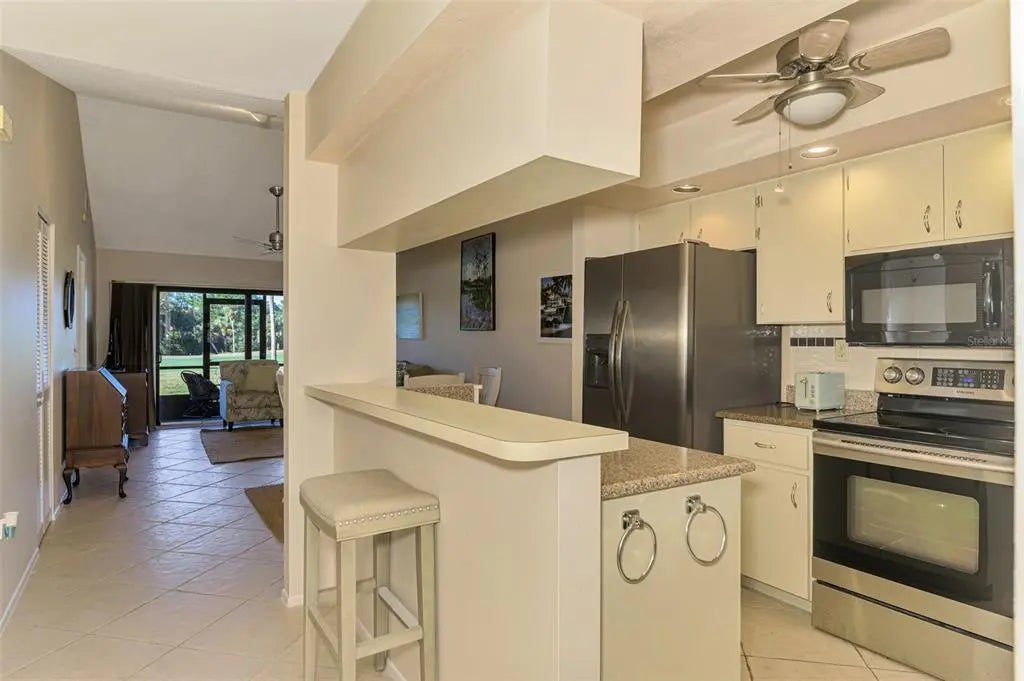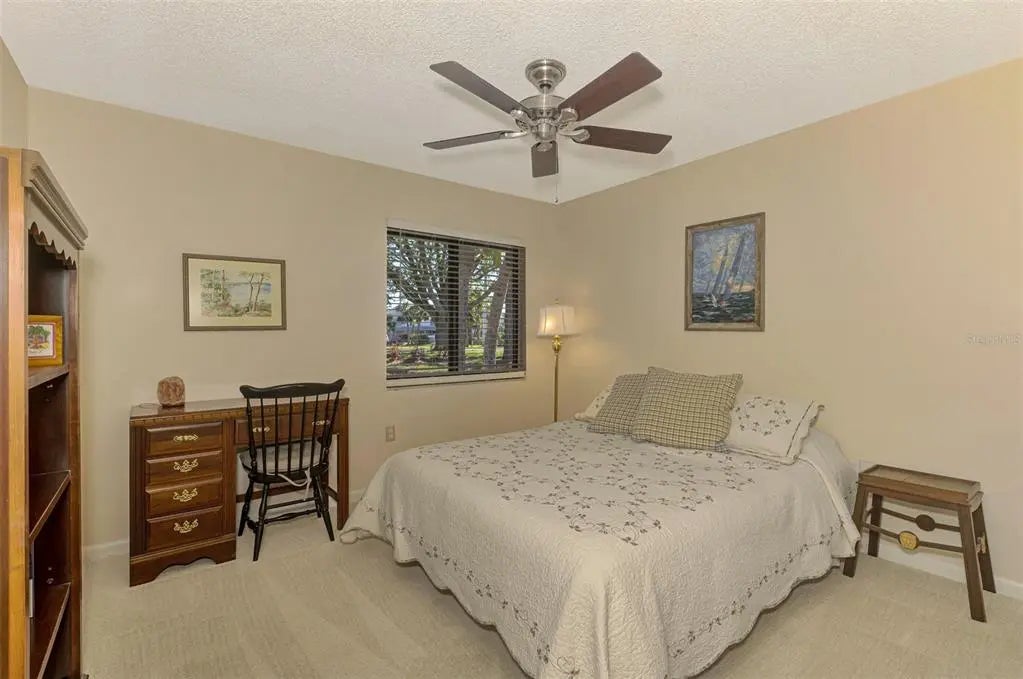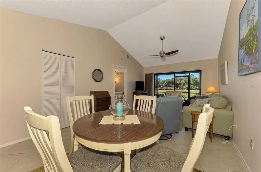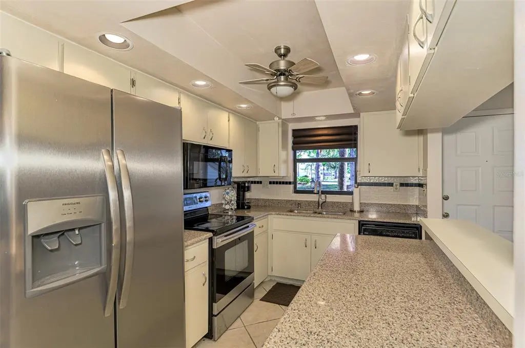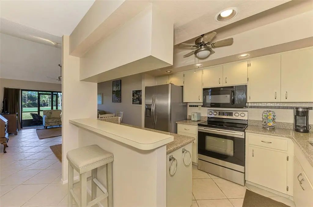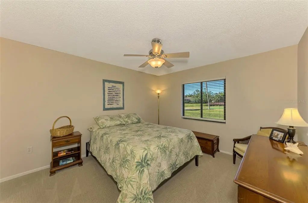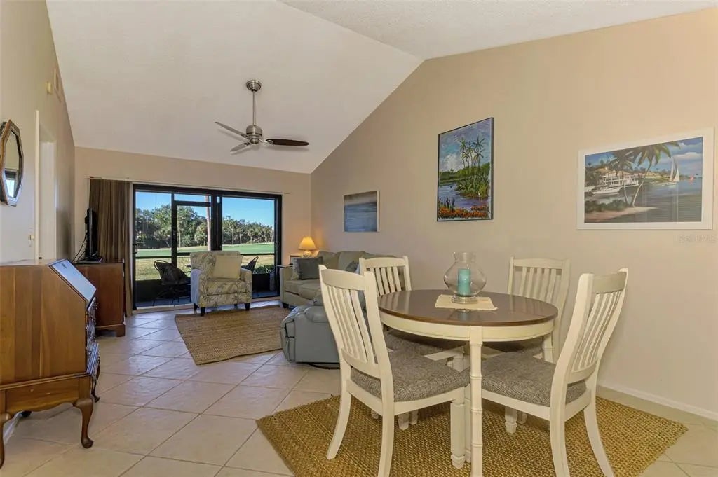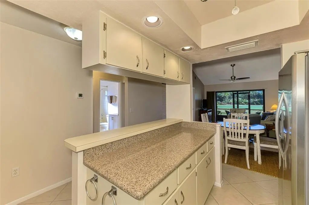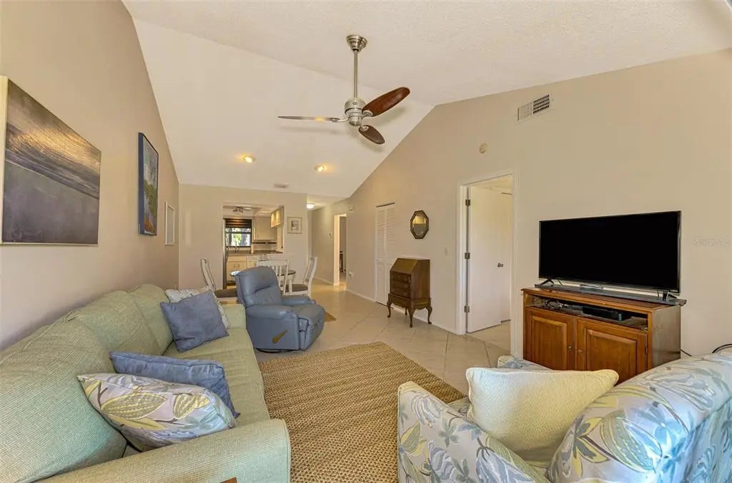 Under contract-accepting backup offers. END UNIT WITH NOONE LIVING ABOVE YOU OR BELOW YOU! Lives like a private home. BEST BUY! Highly sought after Capri Isles leads you to this amazing condo! This wonderful home features sweeping views of the 18th fairway of Capri Isles Golf Course. Walking up to the front door, you will notice the private fenced in courtyard area which adds to the appeal of this residence. Inside you will find an open floor plan, cathedral ceiling and a pleasant neutral decor. Tumbled ceramic tile floors through much of the condo laid on the diagonal and the bedrooms feature new carpets. An appealing kitchen with nice workspace on the granite counters, plenty of cabinet space and comes with appliances. Open living room features cathedral ceilings and flows with the dining room for easy entertaining. A real plus is the condo has PGT hurricane windows and slider! Off the living room, the slider leads out to the wonderful lanai to watch the golfers. The primary bedroom features a walk in closet, bathroom with a new double vanity. The secondary bedroom is also spacious. The second bath also features a new vanity! Washer and dryer inside the condo, good storage space with the private storage area. The reasonable condo fee includes water and cable! Par Four has social events if you wish to participate and a nice clubhouse and heated pool. The location is amazing with easy access to pristine beaches, renowned dining establishments, shopping centers and close to Sarasota Memorial. Whether you are an avid golfer, nature enthusiast or simply seeking a tranquil haven to call home, this condo will appeal to you!