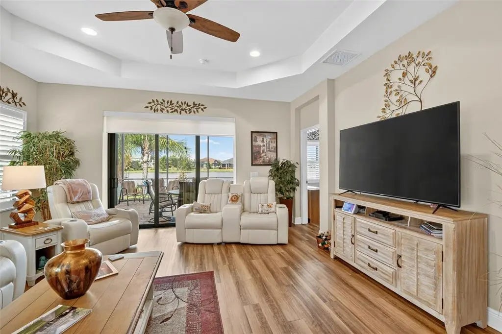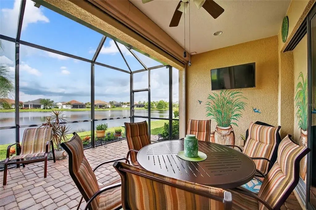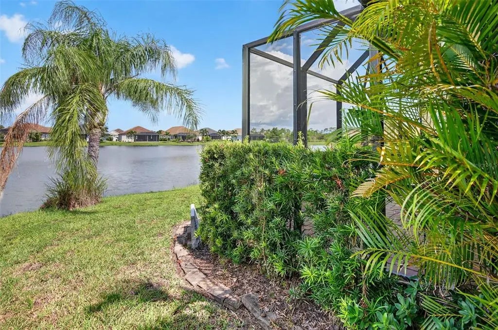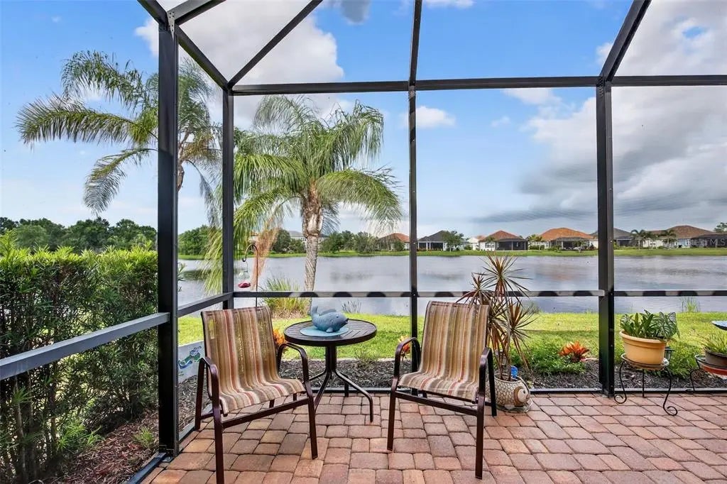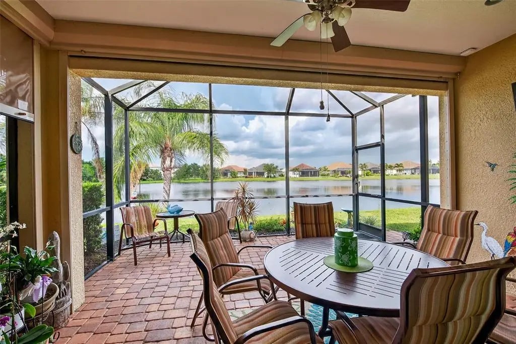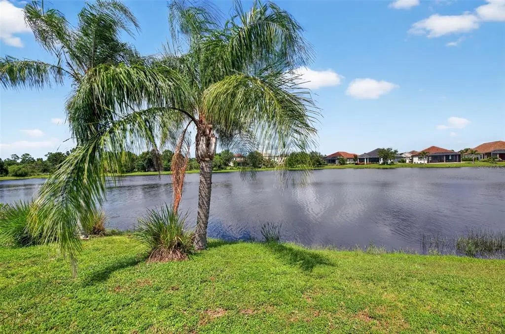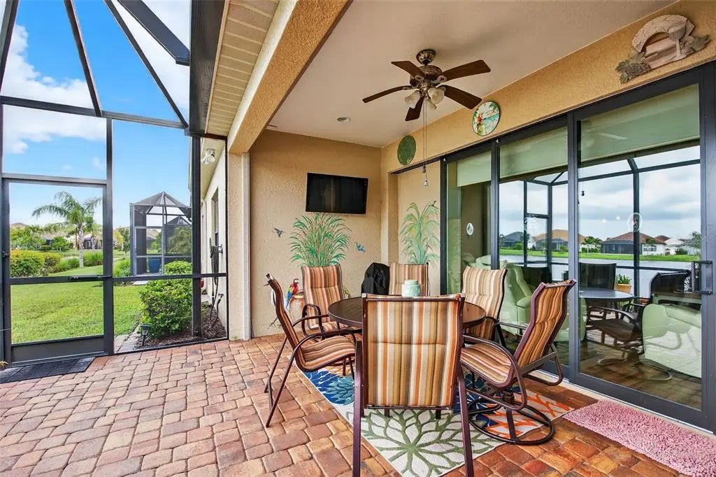 A significant price reduction on this great Villa in the Gated Grand Palm Community, where resort-style living meets nature in a family-friendly setting. This villa has a strikingly beautiful Pond View! This beautifully upgraded Villa offers 3 bedrooms, 2 bathrooms, a den, and a 2-car garage, with a spacious laundry room featuring extra storage. Inside, enjoy an open-concept floor plan with custom upgrades throughout: plantation shutters, tray ceiling, luxury vinyl plank flooring, and fluted wood paneling in the dining area and kitchen island. The kitchen boasts solid wood cabinetry, pull-out drawers, walk-in pantry, a large island with pendant lighting, and stainless-steel appliances. The great room opens to an extended lanai with serene pond views, a transparent screen enclosure, built-in gas grill hookup, remote-controlled shade screen, and dimmer lighting, creating an ideal indoor-outdoor living experience. The split bedroom layout offers privacy for guests. The primary suite features a walk-in closet, dual vanities, and a large walk-in shower. Additional upgrades include impact-rated hurricane windows, a Epoxy garage floor, a motorized storm safe screen in the lanai-porch area to protect the rear of the home. As part of Okaloosa Villas, residents enjoy access to a private pool, spa, bathhouse, and a covered gathering area with gas grill. Grand Palm Community amenities include: Resort-style pool with beach-entry & spa Pickleball, tennis, volleyball & basketball courts Fitness center with lap pool & water slide Playground, dog park, splash park, kayak launch, picnic areas Nature trails, social clubhouse, and full-time activities director Located minutes from Venice beaches, Manasota Key, Wellen Park, CoolToday Park (Atlanta Braves spring training), and downtown Venice dining and shopping.