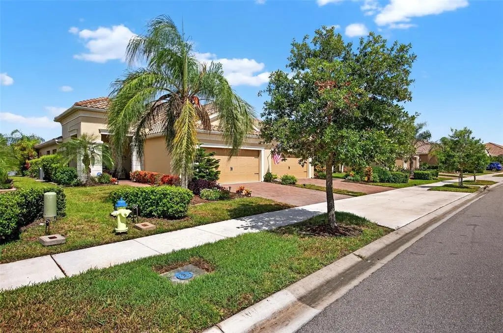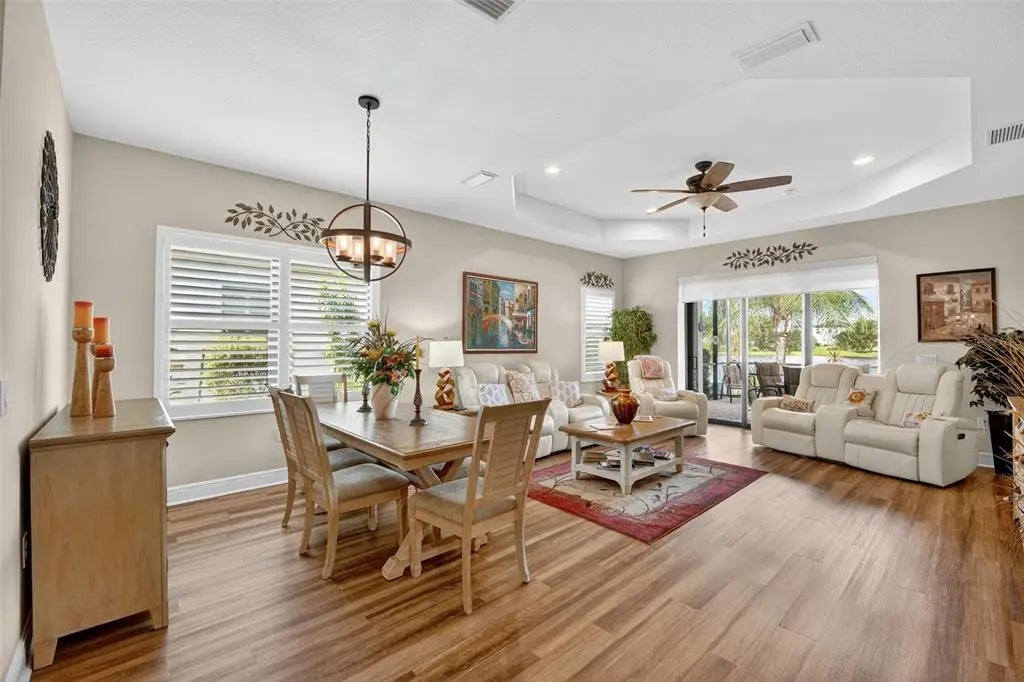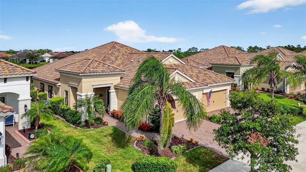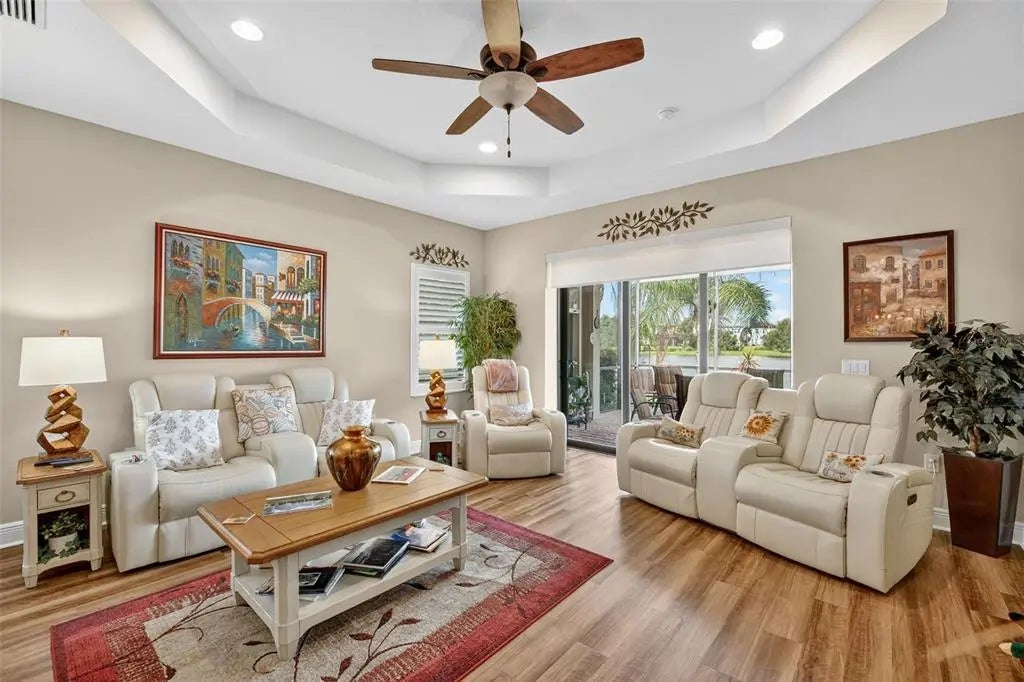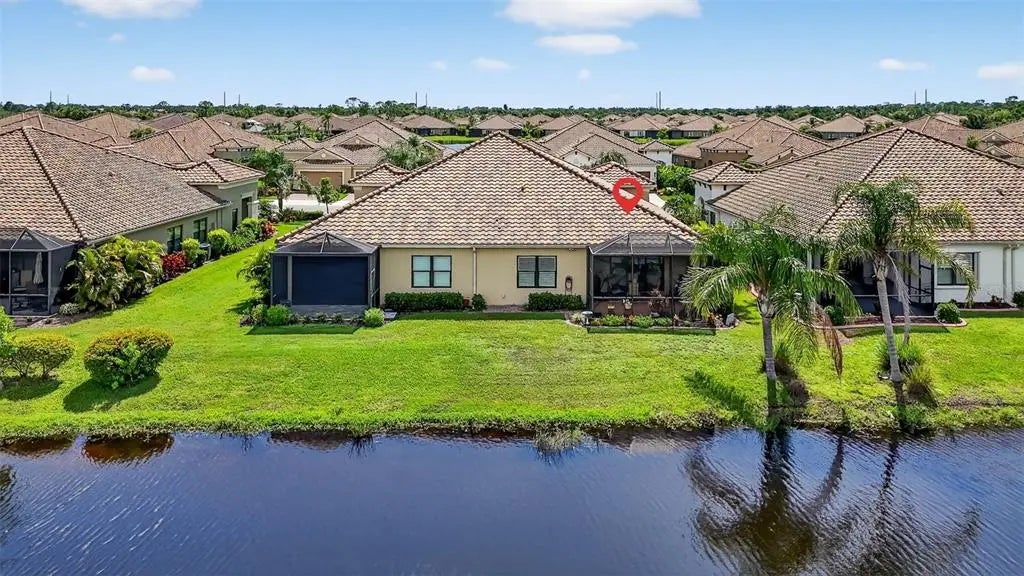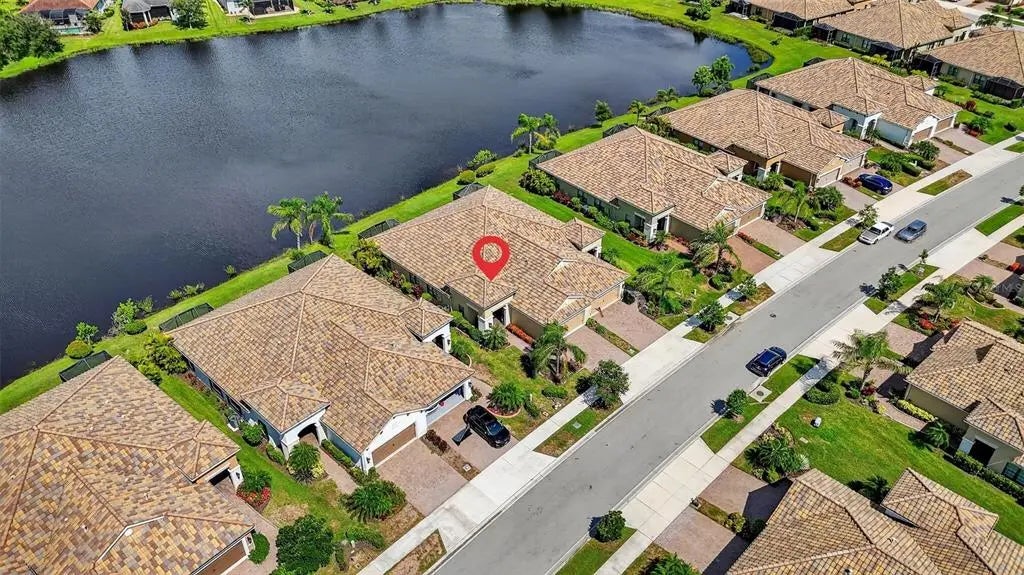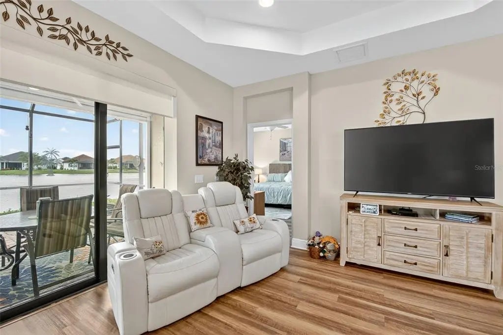 A significant price reduction on this great Villa in the Gated Grand Palm Community, where resort-style living meets nature in a family-friendly setting. This villa has a strikingly beautiful Pond View! This beautifully upgraded Villa offers 3 bedrooms, 2 bathrooms, a den, and a 2-car garage, with a spacious laundry room featuring extra storage. Inside, enjoy an open-concept floor plan with custom upgrades throughout: plantation shutters, tray ceiling, luxury vinyl plank flooring, and fluted wood paneling in the dining area and kitchen island. The kitchen boasts solid wood cabinetry, pull-out drawers, walk-in pantry, a large island with pendant lighting, and stainless-steel appliances. The great room opens to an extended lanai with serene pond views, a transparent screen enclosure, built-in gas grill hookup, remote-controlled shade screen, and dimmer lighting, creating an ideal indoor-outdoor living experience. The split bedroom layout offers privacy for guests. The primary suite features a walk-in closet, dual vanities, and a large walk-in shower. Additional upgrades include impact-rated hurricane windows, a Epoxy garage floor, a motorized storm safe screen in the lanai-porch area to protect the rear of the home. As part of Okaloosa Villas, residents enjoy access to a private pool, spa, bathhouse, and a covered gathering area with gas grill. Grand Palm Community amenities include: Resort-style pool with beach-entry & spa Pickleball, tennis, volleyball & basketball courts Fitness center with lap pool & water slide Playground, dog park, splash park, kayak launch, picnic areas Nature trails, social clubhouse, and full-time activities director Located minutes from Venice beaches, Manasota Key, Wellen Park, CoolToday Park (Atlanta Braves spring training), and downtown Venice dining and shopping.
