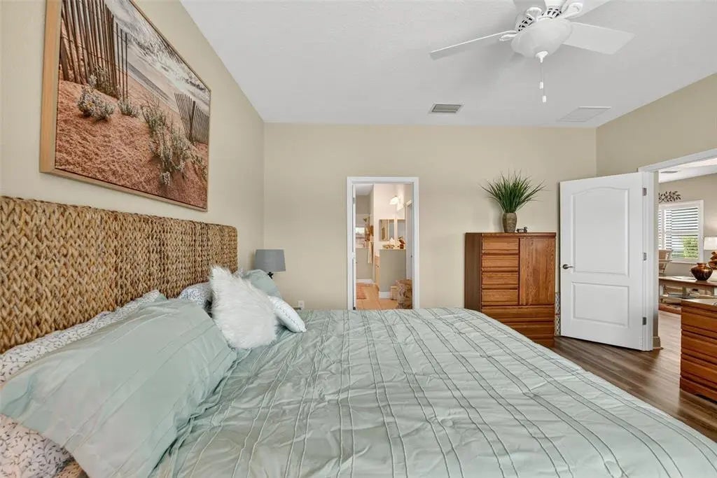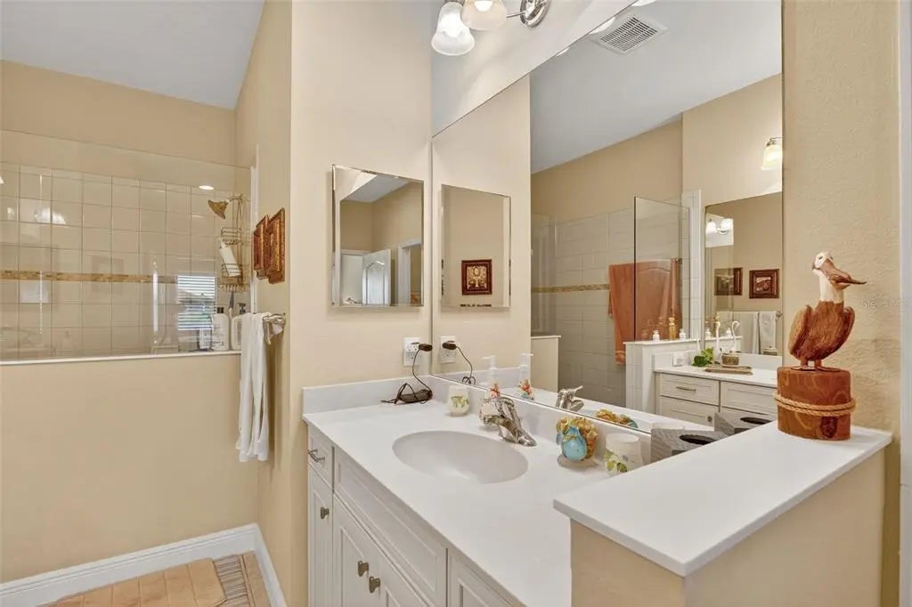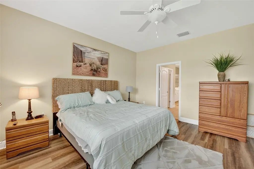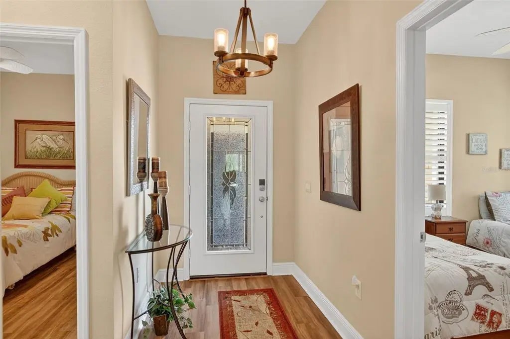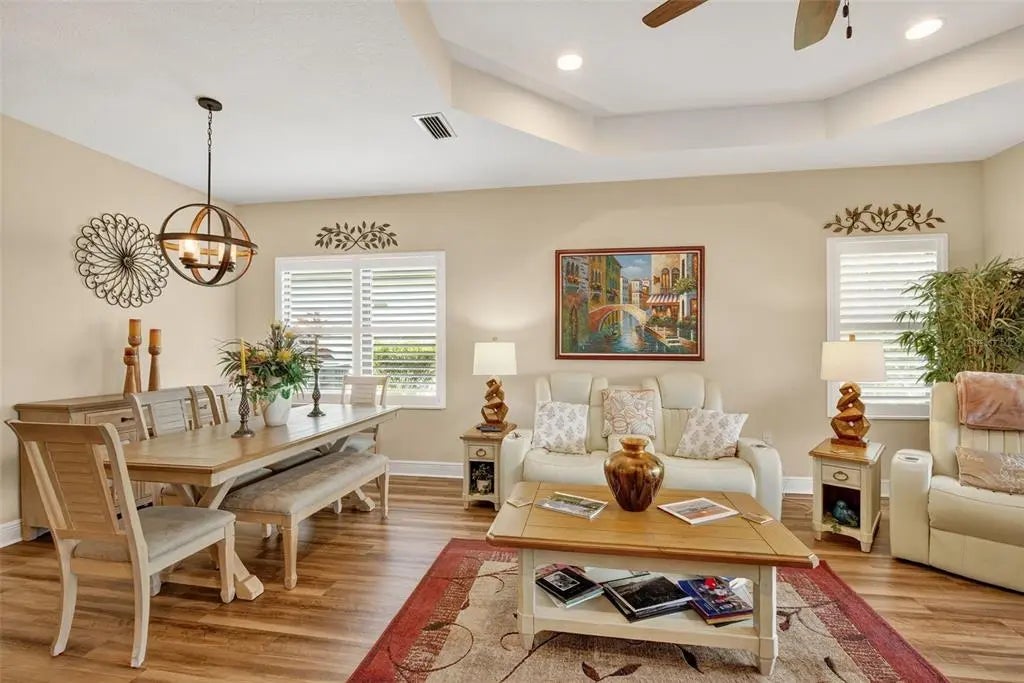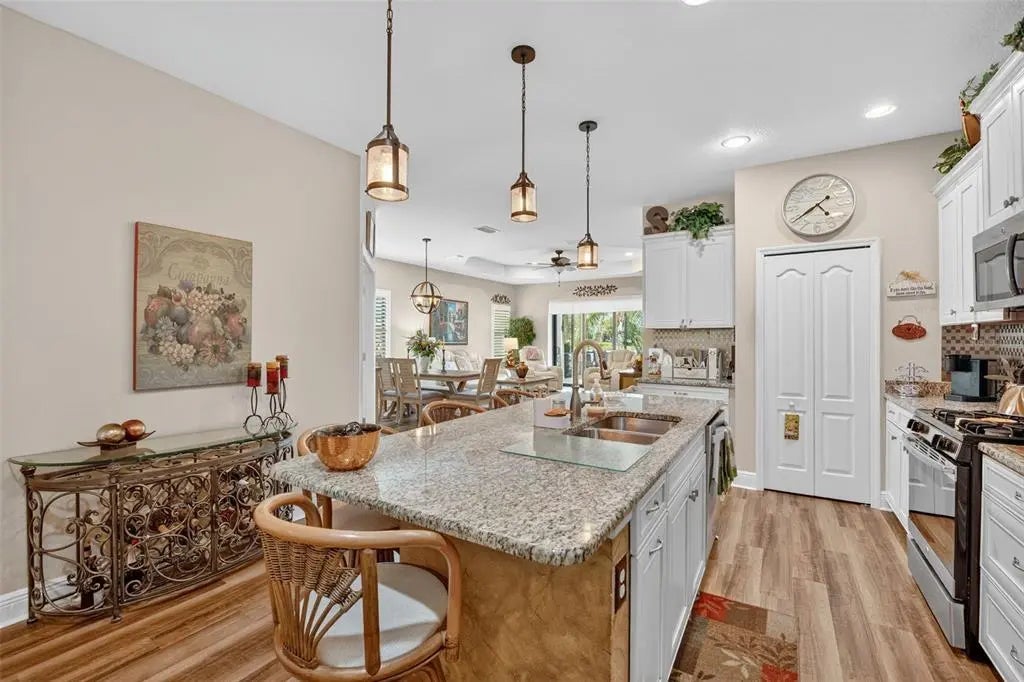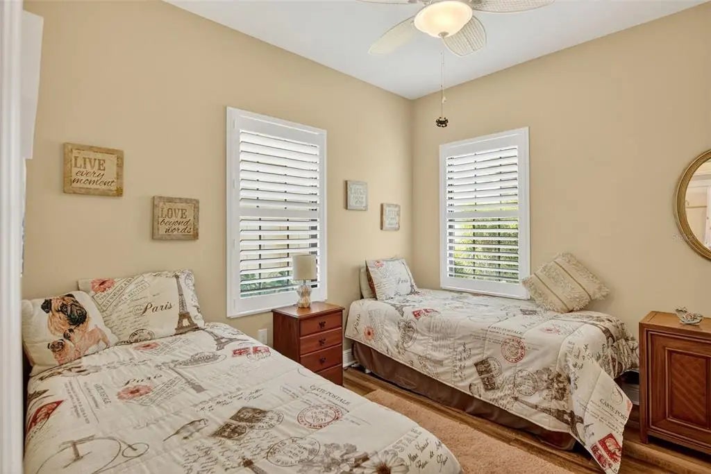 A significant price reduction on this great Villa in the Gated Grand Palm Community, where resort-style living meets nature in a family-friendly setting. This villa has a strikingly beautiful Pond View! This beautifully upgraded Villa offers 3 bedrooms, 2 bathrooms, a den, and a 2-car garage, with a spacious laundry room featuring extra storage. Inside, enjoy an open-concept floor plan with custom upgrades throughout: plantation shutters, tray ceiling, luxury vinyl plank flooring, and fluted wood paneling in the dining area and kitchen island. The kitchen boasts solid wood cabinetry, pull-out drawers, walk-in pantry, a large island with pendant lighting, and stainless-steel appliances. The great room opens to an extended lanai with serene pond views, a transparent screen enclosure, built-in gas grill hookup, remote-controlled shade screen, and dimmer lighting, creating an ideal indoor-outdoor living experience. The split bedroom layout offers privacy for guests. The primary suite features a walk-in closet, dual vanities, and a large walk-in shower. Additional upgrades include impact-rated hurricane windows, a Epoxy garage floor, a motorized storm safe screen in the lanai-porch area to protect the rear of the home. As part of Okaloosa Villas, residents enjoy access to a private pool, spa, bathhouse, and a covered gathering area with gas grill. Grand Palm Community amenities include: Resort-style pool with beach-entry & spa Pickleball, tennis, volleyball & basketball courts Fitness center with lap pool & water slide Playground, dog park, splash park, kayak launch, picnic areas Nature trails, social clubhouse, and full-time activities director Located minutes from Venice beaches, Manasota Key, Wellen Park, CoolToday Park (Atlanta Braves spring training), and downtown Venice dining and shopping.