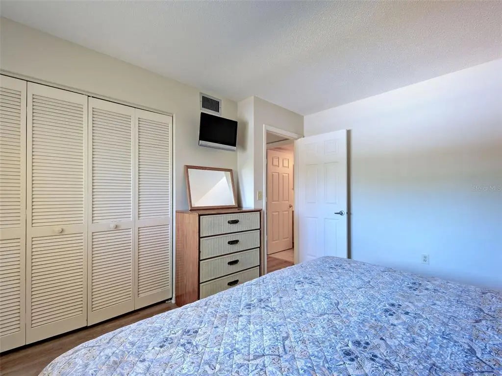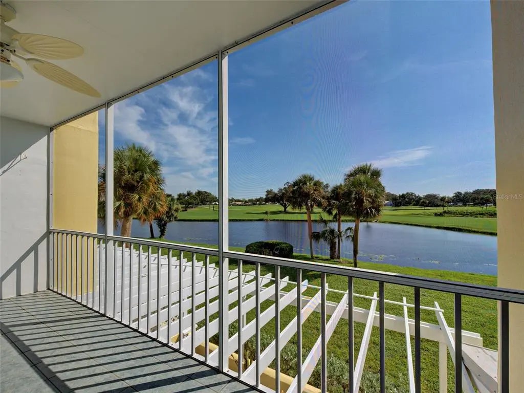 Beautifully RENOVATED and FRESHLY PAINTED condo with GOLF AND WATER VIEWS in Westchester Gardens at Plantation. It features a newer HVAC (2023), LUXURY VINYL FLOORING (2024) throughout and a spacious COVERED AND SCREENED LANAI with TILE FLOORING, offering serene GOLF COURSE VIEWS with no rear neighbors for added privacy. The kitchen offers WHITE CABINETRY, Frigidaire appliances, and a scenic outlook you'll appreciate while cooking. It blends seamlessly with the bright dining and living areas, from where you can also enjoy the views from the SLIDING GLASS DOORS that flood the space with natural light and lead directly to the inviting LARGE LANAI, perfect for relaxing or entertaining while enjoying the peaceful golf course and water views! The primary bedroom offers DIRECT LANAI ACCESS, stunning views, and an en suite bathroom with tile flooring, a walk-in shower, and a generous walk-in closet. The second bedroom is light-filled and conveniently located next to the guest bathroom, which features a TILED TUB SURROUND and a GRAB BAR for added safety. For added convenience, the laundry closet is tucked away in the primary bedroom and it features newer Frigidaire washer and dyer. This second-floor condo comes with a NEWLY ROOFED CARPORT offering covered parking for one vehicle. There is also a storage space, ideal to keep your belongings. The building exterior was recently painted and the ROOF REPLACED, enhancing both appearance and value. Enjoy effortless access via the community elevator. Whether you're looking for a full-time residence or seasonal retreat, the FLEXIBLE RENTAL POLICY, minimum 30-day lease, offers great versatility. Monthly fees conveniently cover cable TV, high-speed internet, water, sewer, and pest control. There are several different levels of memberships available to join through Plantation Golf & Country Club, to have access to multiple amenities and the Plantation 18-hole golf course. Westchester Garden at Plantation in Venice offers a prime location for enjoying the best of coastal and city living. Just 15 minutes away, residents can relax on the white sands of Venice Beach or look for shark teeth at Caspersen Beach. A short 10-minute drive brings you to Historic Downtown Venice, where charming boutiques, dining, and cultural events create a vibrant atmosphere. For everyday convenience and retail, shopping centers are all within a 10–15 minute radius, offering a mix of local favorites. This community blends tranquility with easy access to beaches, shopping, and the heart of Venice.