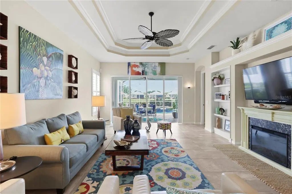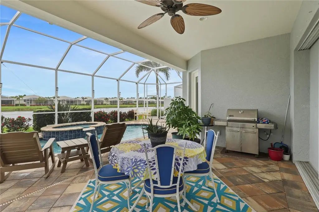 Private Pool, Lake View, and Maintenance-Free. Relax, Unwind, and Let the Community Handle the Rest - Fees Include full roof reserves, exterior insurance (drywall out), wind coverage, lawn care, pest & termite prevention, exterior painting, two community pools, clubhouse with resident-run activities, and full community management. Everything you need for a truly maintenance-free lifestyle. Inside, the home is bright and open with soaring ceilings, elegant double tray accents, custom built-ins, plantation shutters, and refined finishes throughout. The gourmet kitchen is a standout with a large center island, walk-in pantry, granite countertops, stainless steel appliances, and double wall ovens. The kitchen also features a cozy breakfast nook tucked into a bay window allowing you to enjoy your morning coffee bathed in natural sunlight. The sparkling pool has southern exposure and the jetted hot tub is the perfect spot to soak in stunning Florida sunsets. The screened lanai includes covered space and has been plumbed for an outdoor kitchen. The primary suite is a private retreat featuring direct access to the pool, two walk-in closets, dual vanities, a walk-in shower, and a jetted soaking tub for the ultimate in relaxation. The home's split floor plan is ideal for guests, featuring a guest suite with private bath and walk-in closet, plus a third bedroom (currently used as a den) with convenient access to a half bath. This villa is equipped with impact-glass hurricane windows and clear Lexan panel shutters for the sliding glass doors, ensuring you're well-prepared for storm season. Optional membership at The Plantation Golf & Country Club opens the door to two championship golf courses, 13 Har-Tru tennis courts, six pickleball courts, bocce ball, fitness center, Jr. Olympic pool, and fantastic dining and social activities. NO CDD FEES. Located just minutes from Venice’s Gulf beaches, Wellen Park Downtown, the Atlanta Braves Spring Training Stadium, shopping, dining, and easy access to I-75, this lakefront villa located on a quiet cut-de-sac offers it all.This is Florida living—simplified, elevated, and ready for you.