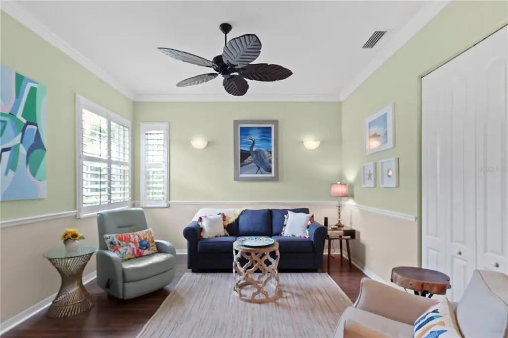 - Interior FeaturesBuilt-in Features, Ceiling Fan(s), Crown Molding, Eating Space In Kitchen, High Ceilings, Living Room/Dining Room Combo, Open Floorplan, Primary Bedroom Main Floor, Solid Surface Counters, Split Bedroom, Tray Ceiling(s), Walk-In Closet(s), Window Treatments