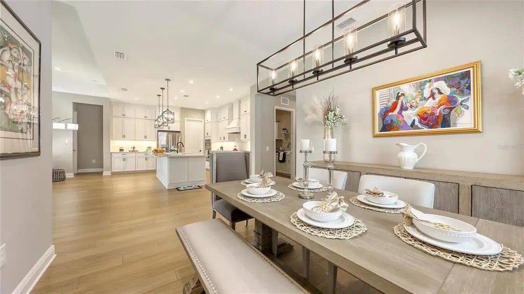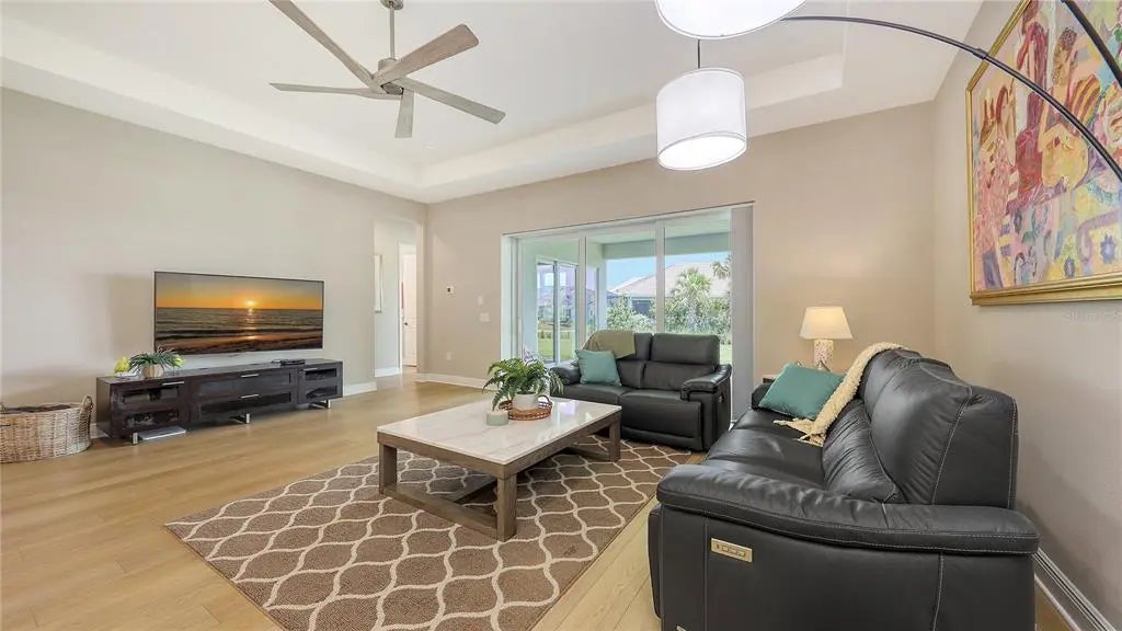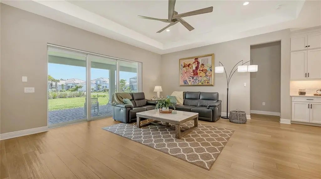 Priced to sell—don’t miss this rare opportunity in Wellen Park’s most intimate enclave. Exceptional value for a new, highly upgraded home in exclusive Avelina. This meticulously enhanced three-bedroom, three-bathroom residence—with a versatile den easily convertible into a fourth bedroom—boasts 2,520 square feet of living space in the sought-after Avelina community of Wellen Park. With up to $92,000 in builder design and structural upgrades, plus premium owner-selected finishes, this home seamlessly blends luxury, practicality, and intentional design. The open-concept layout welcomes you with vinyl plank flooring, custom window treatments, and an abundance of natural light. The chef’s kitchen is a true centerpiece, featuring quartz countertops, high-end appliances, undermount lighting, and ceiling-height luxury cabinetry that offers exceptional storage and style, all soft-close drawers. Adjacent to the kitchen is a great room with soaring tray ceilings, seamlessly flowing into a massive, covered patio—perfect for entertaining. The patio is pre-plumbed for an outdoor kitchen and sink, and includes a pool pre-wire package, making it easy to create your dream outdoor retreat. The primary suite is a sanctuary, highlighted by a huge walk-in closet with custom high-end shelving—a favorite feature of the current owner. Each bathroom is thoughtfully designed, and the laundry room adds convenience with built-in cabinetry, a laundry tub, and Corian countertops. Additional features include hurricane impact windows, pocket sliders, and elegant lighting fixtures throughout. Located in a maintenance-free, close-knit community, this home offers the perfect blend of comfort, sophistication, and Florida lifestyle. This stunning home is located in the heart of Wellen Park, where wellness and community come together in one of the most desirable neighborhoods. Enjoy access to miles of walking and biking trails, serene lakeside views, and wellness-focused amenities like yoga lawns, fitness centers, and outdoor gathering spaces. Just steps from Downtown Wellen and CoolToday Park, this home offers the perfect balance of relaxation, recreation, and vibrant living.